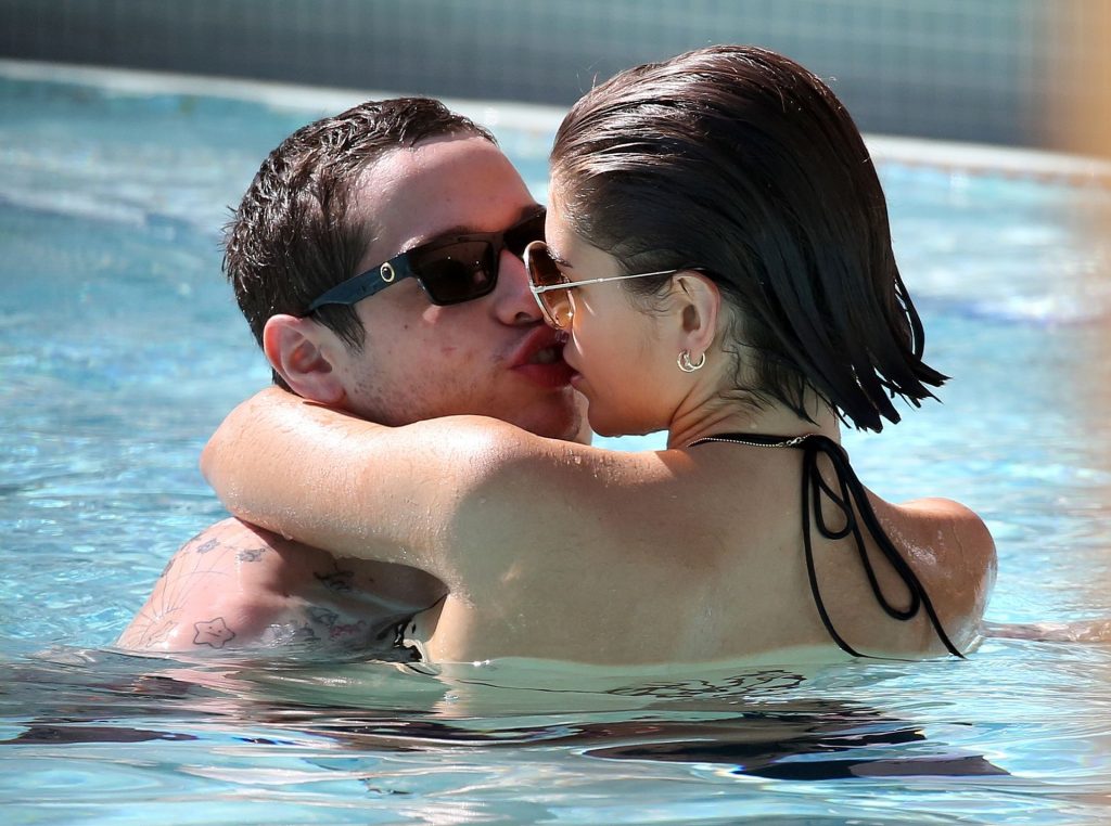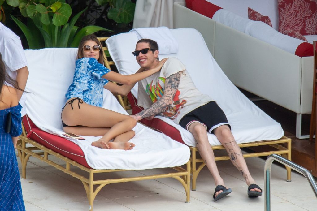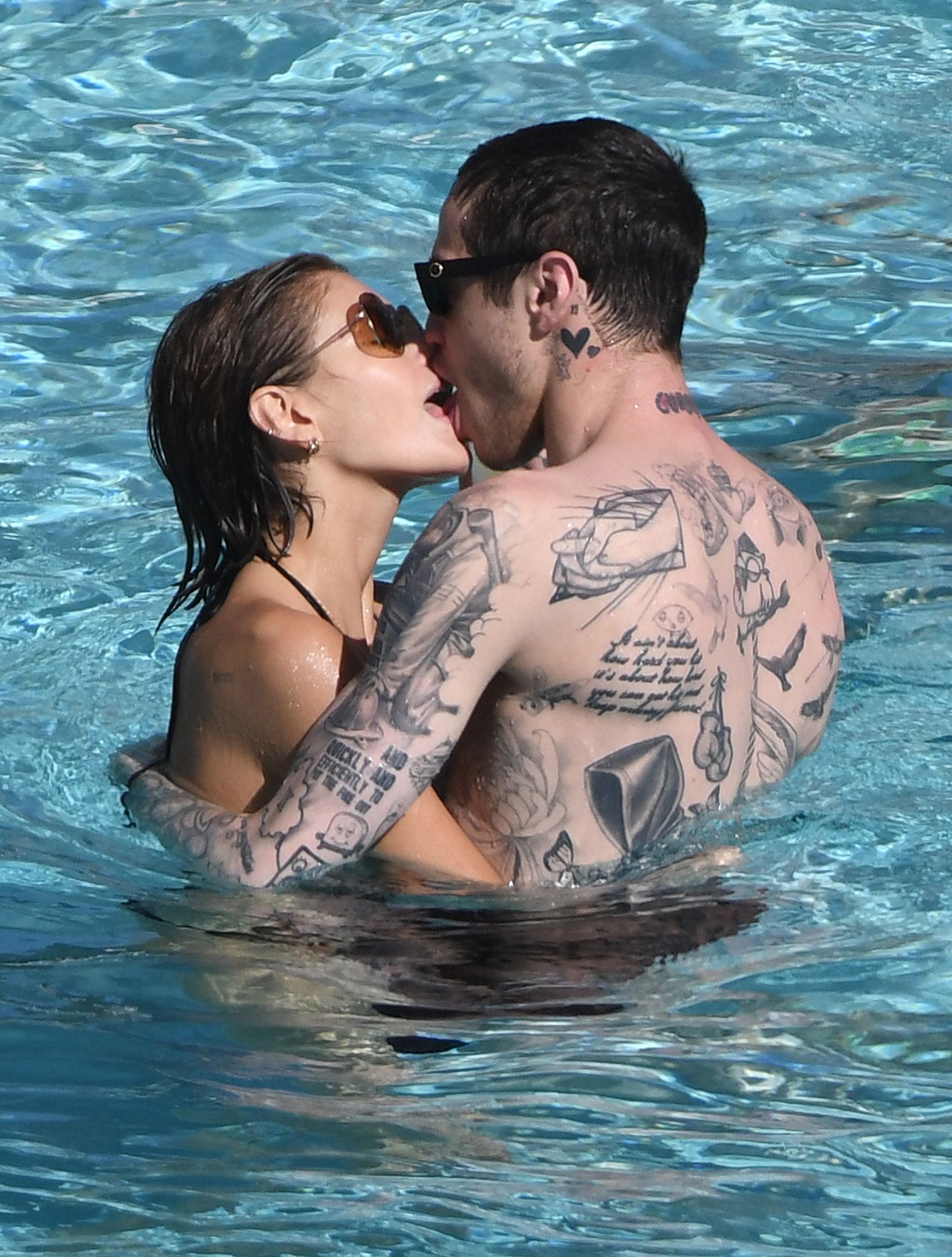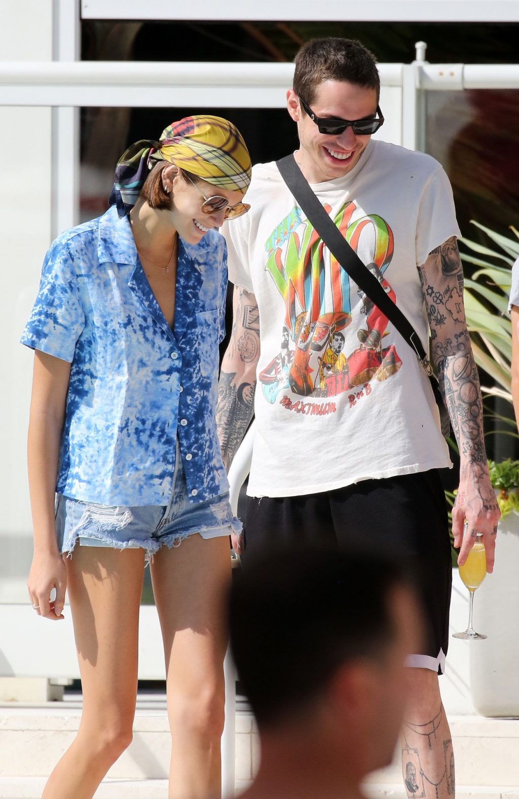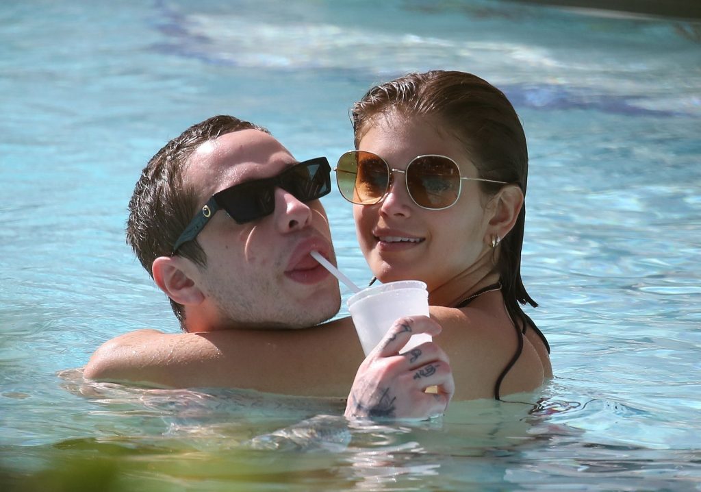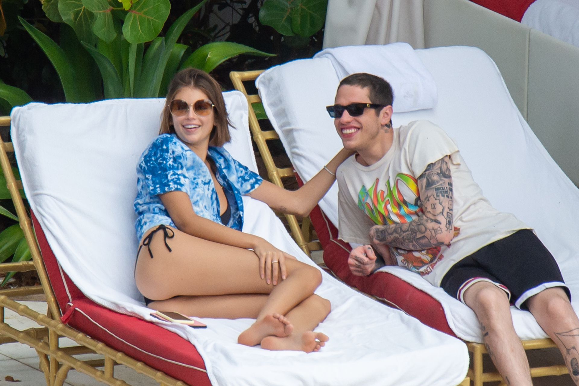 La figlia di Cindy Crawford, la modella Kaia Gerber, indossa un bikini nero mentre bacia il fidanzato Pete Davidson a bordo piscina a Miami, 23/11/2019.
