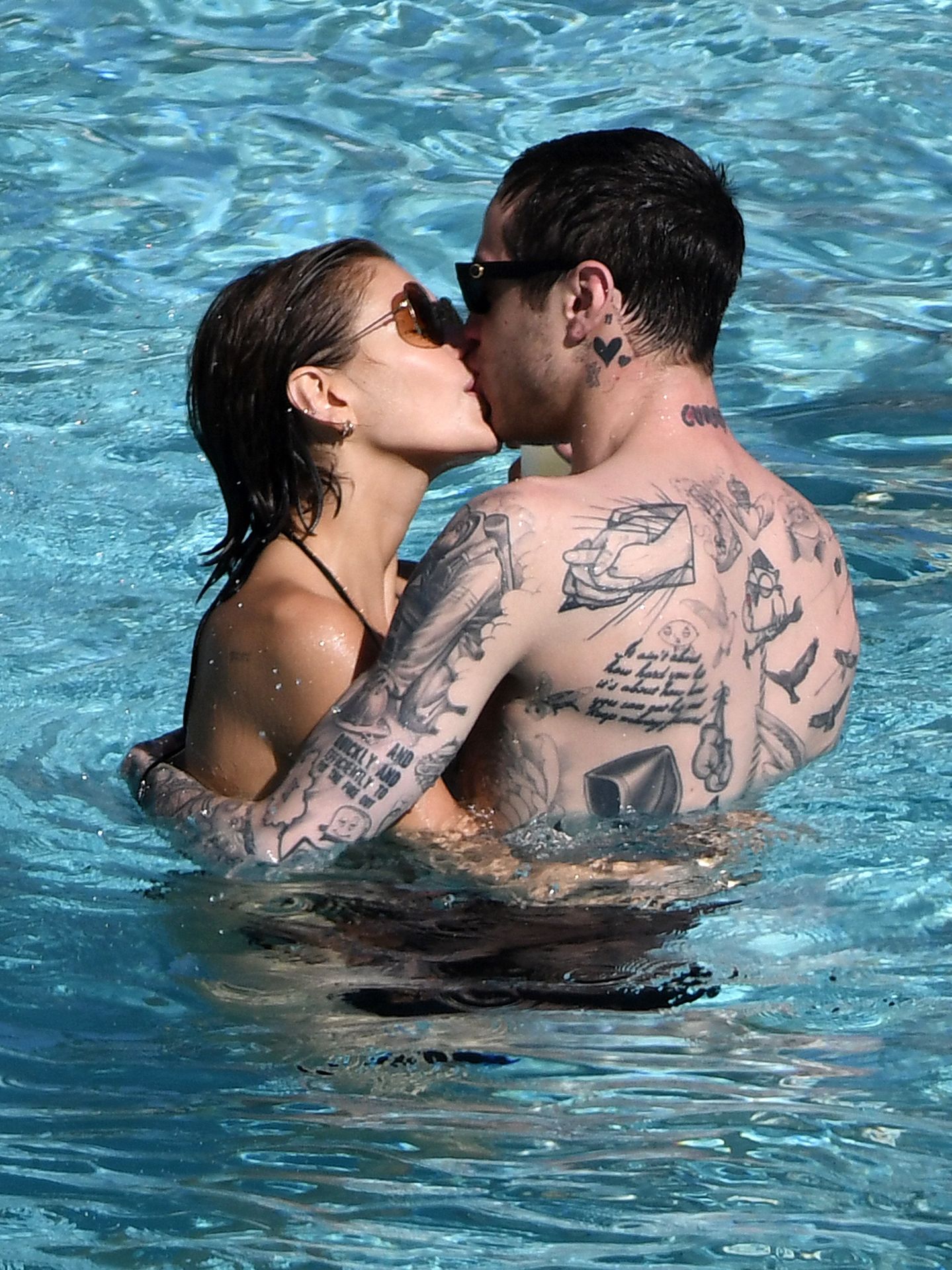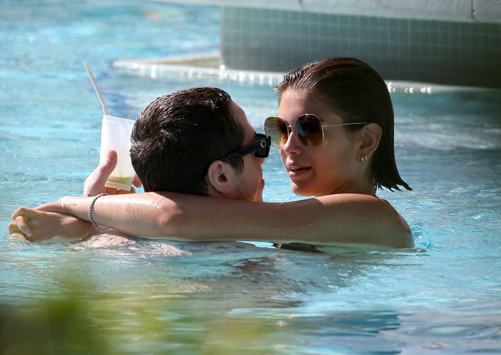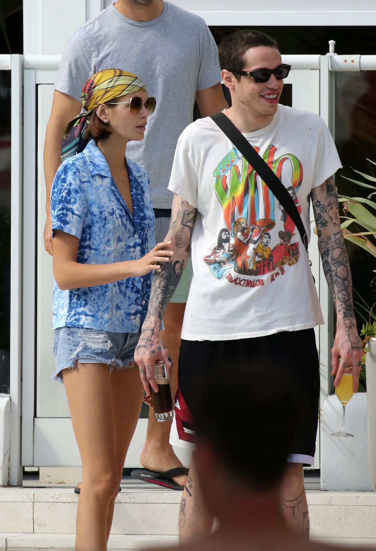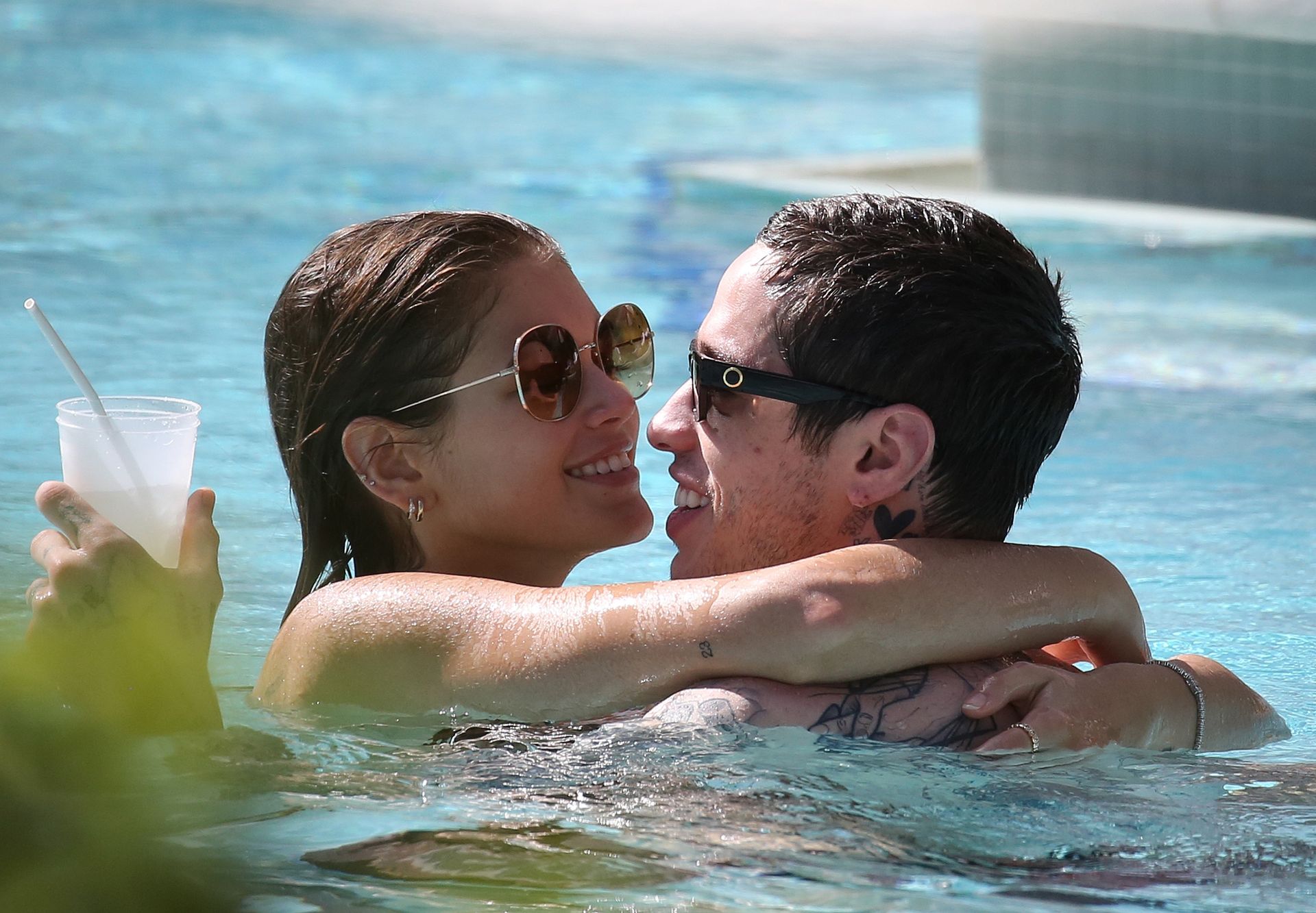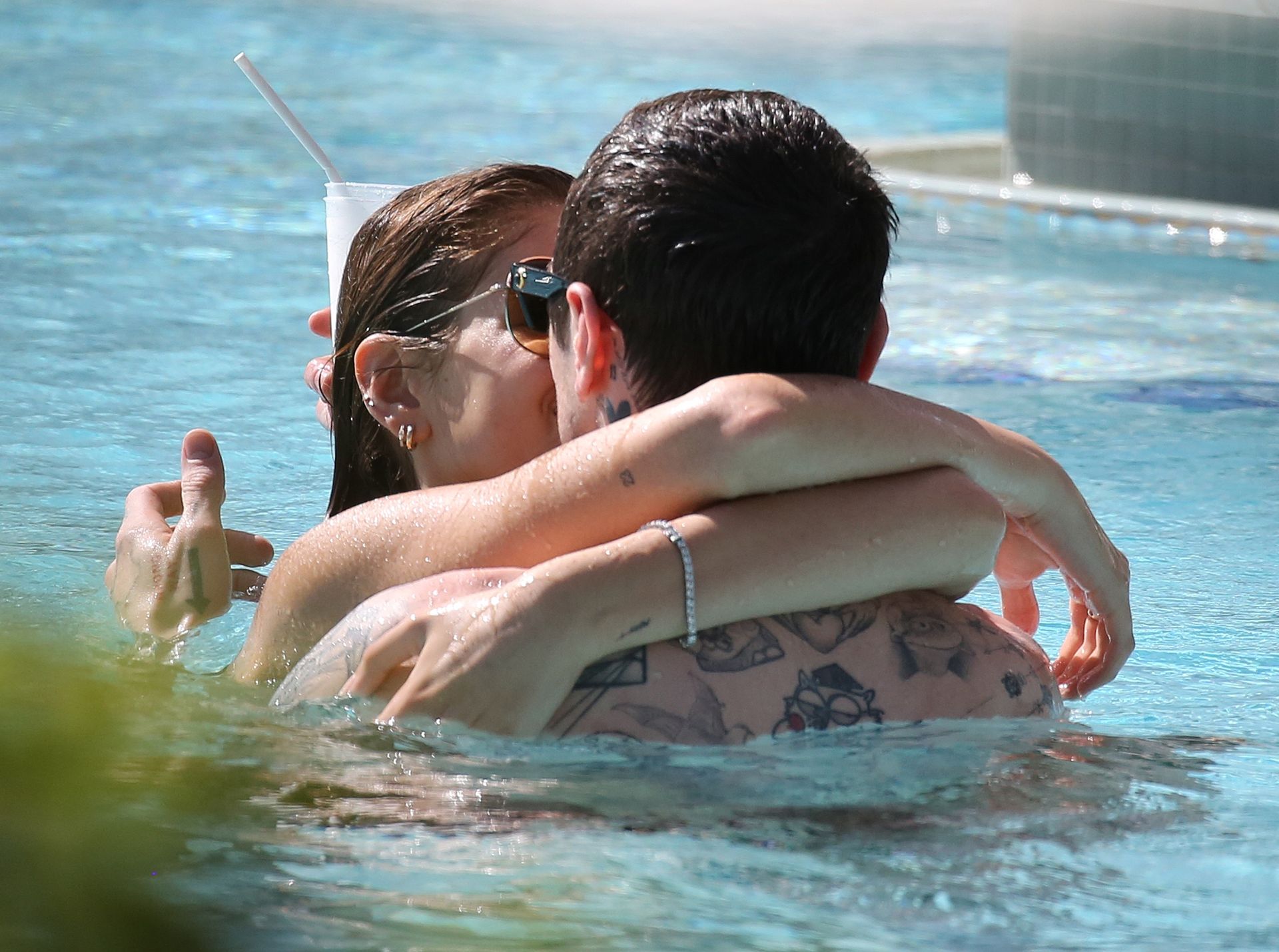 La figlia di Cindy Crawford, la modella Kaia Gerber, indossa un bikini nero mentre bacia il fidanzato Pete Davidson a bordo piscina a Miami, 23/11/2019.