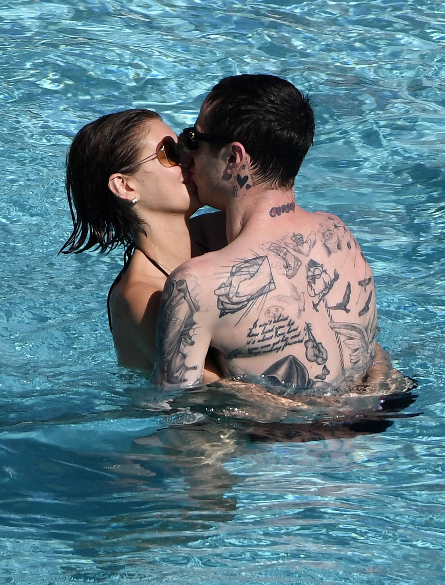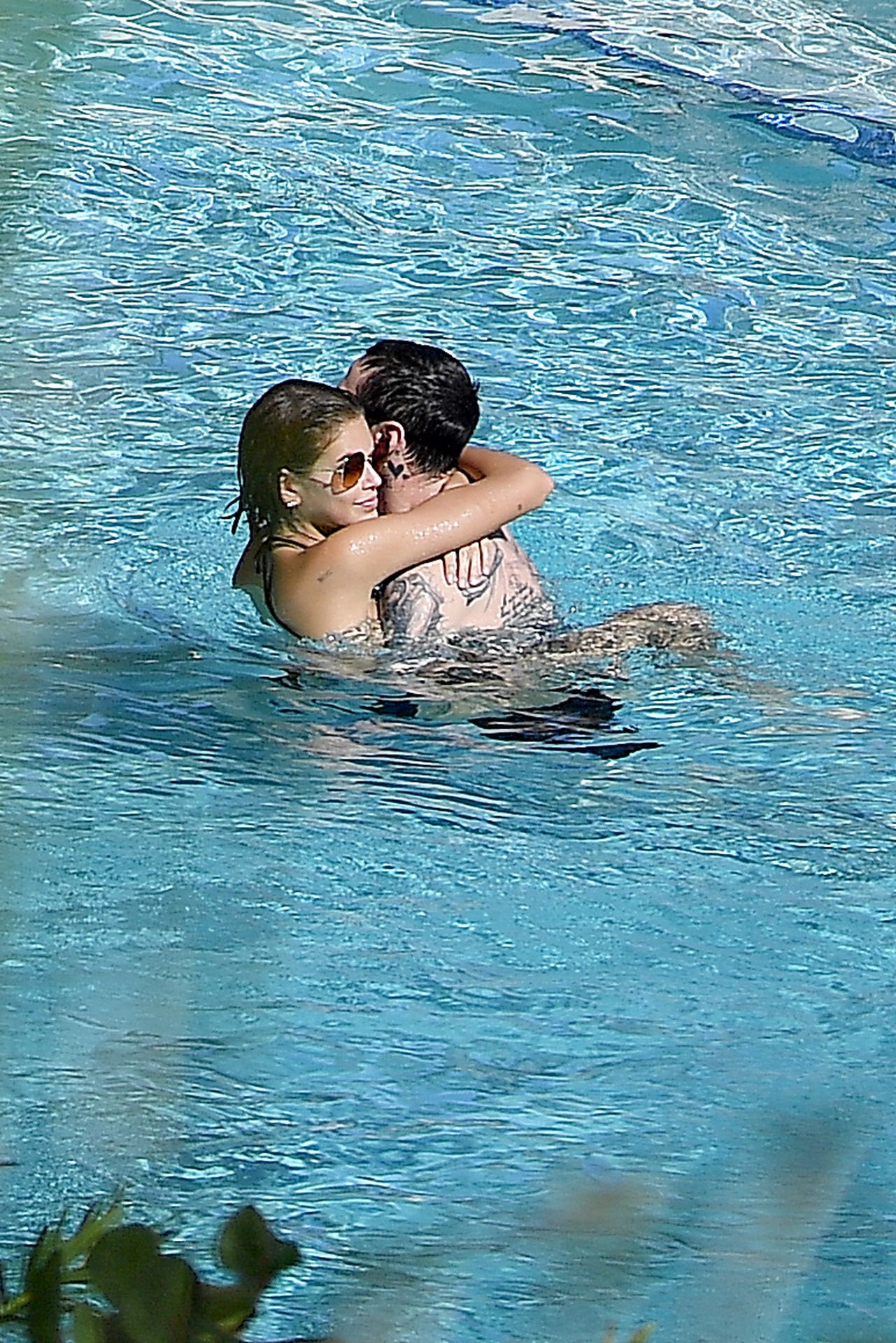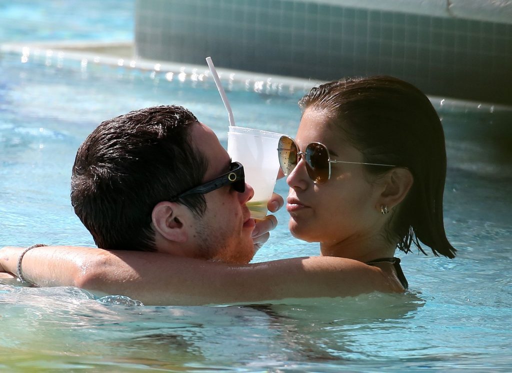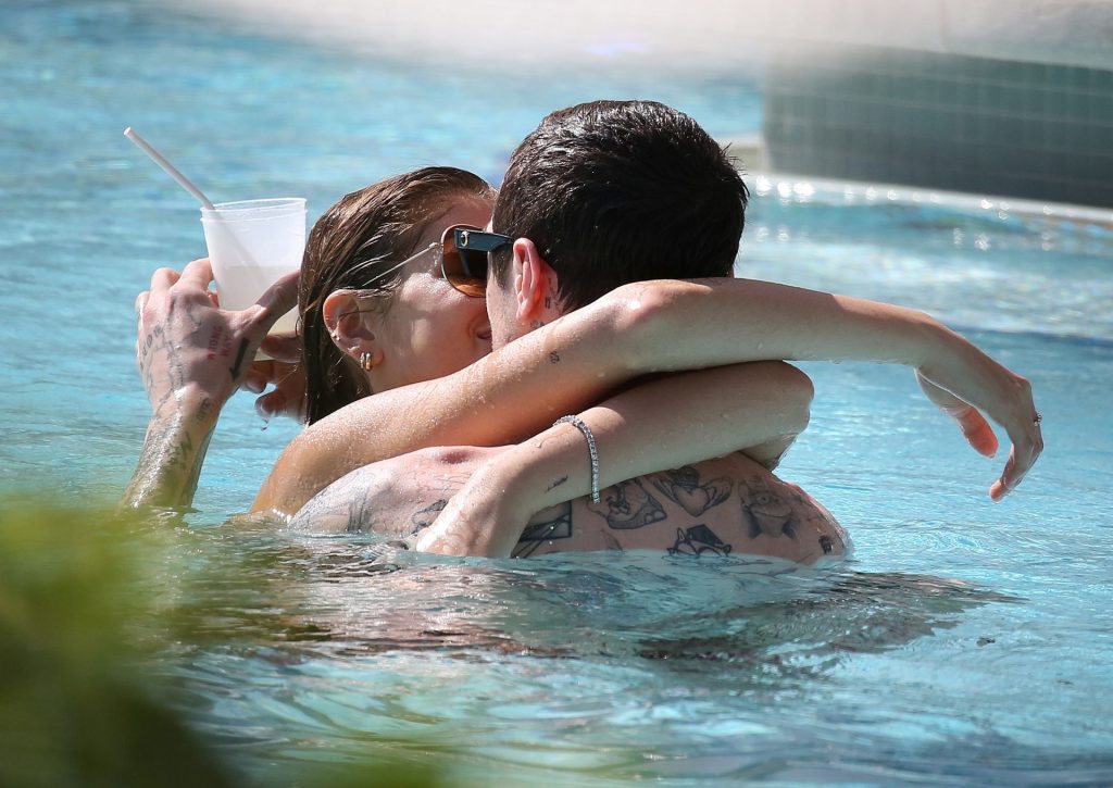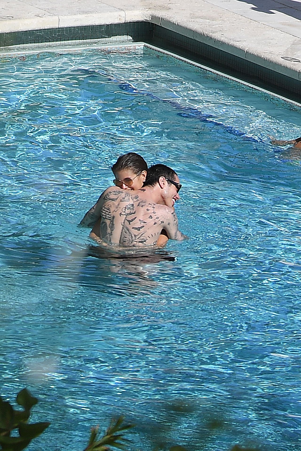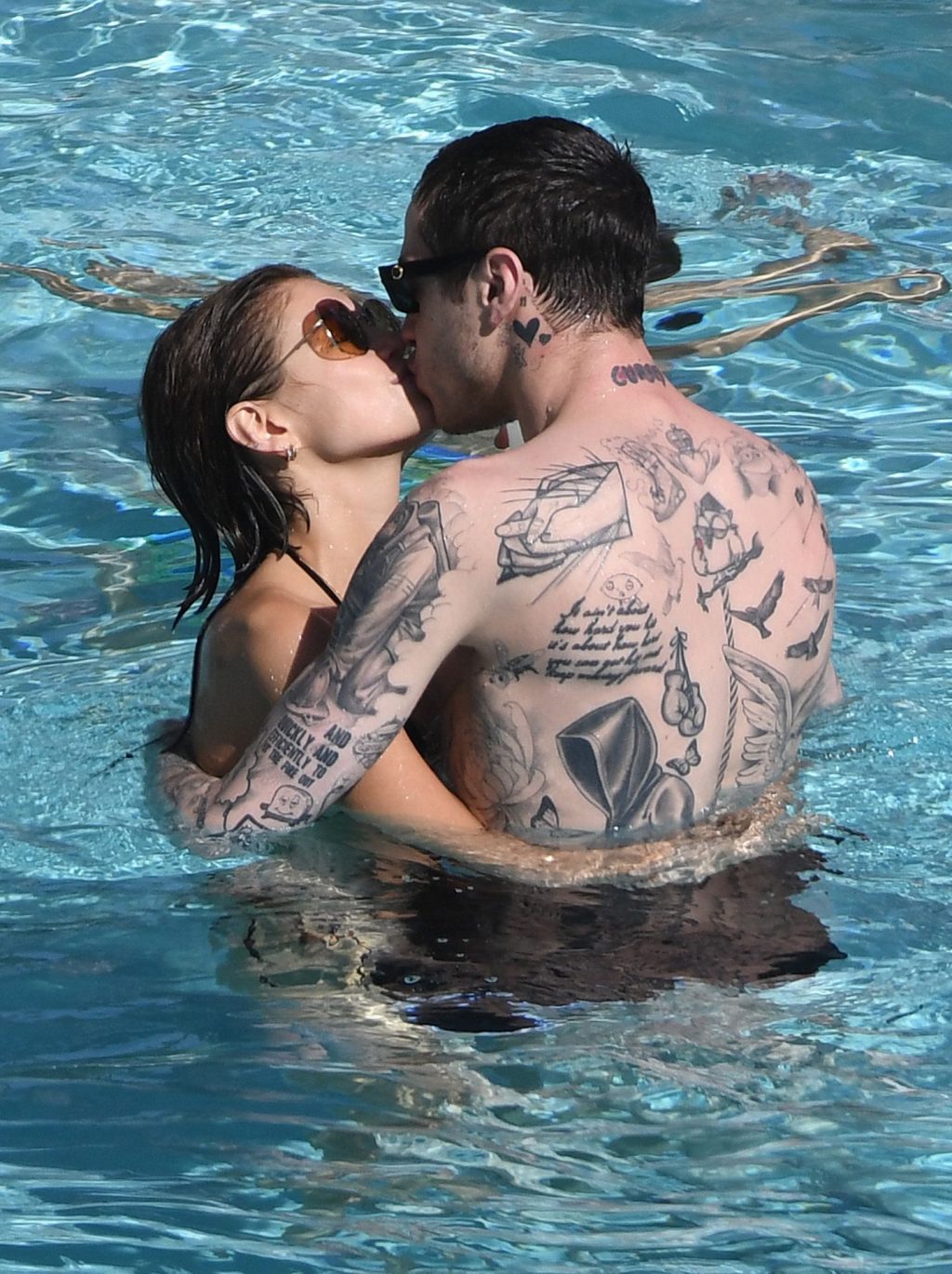 La figlia di Cindy Crawford, la modella Kaia Gerber, indossa un bikini nero mentre bacia il fidanzato Pete Davidson a bordo piscina a Miami, 23/11/2019.