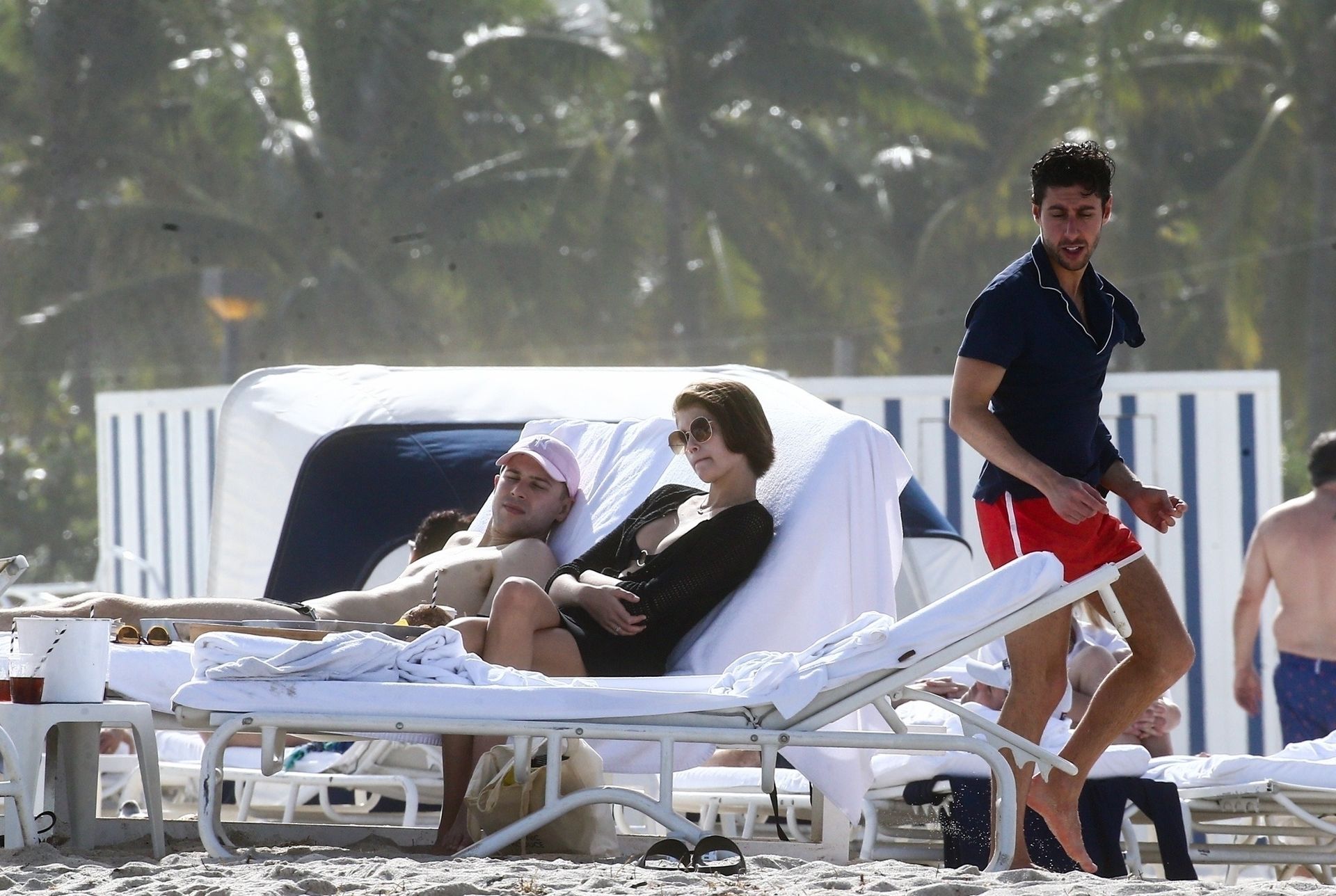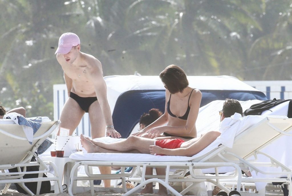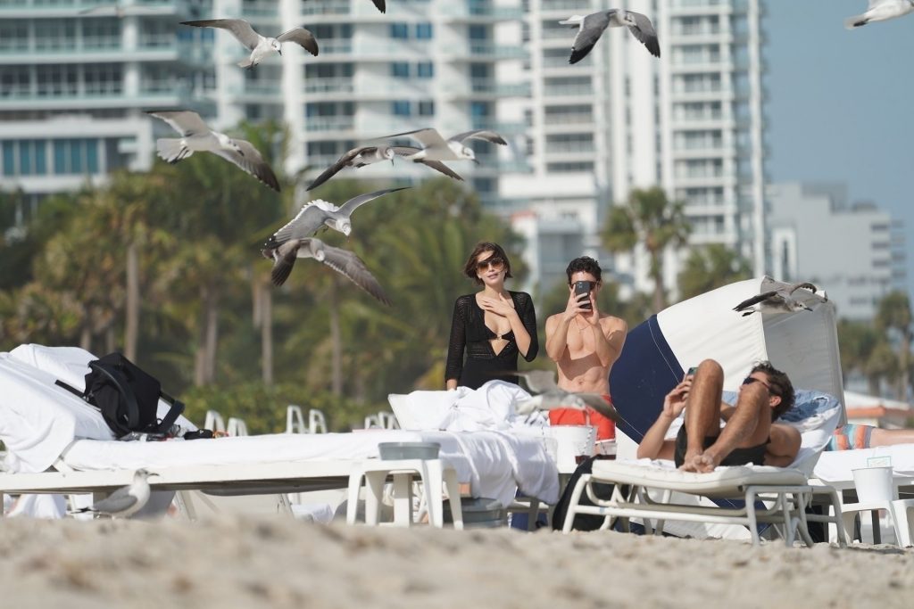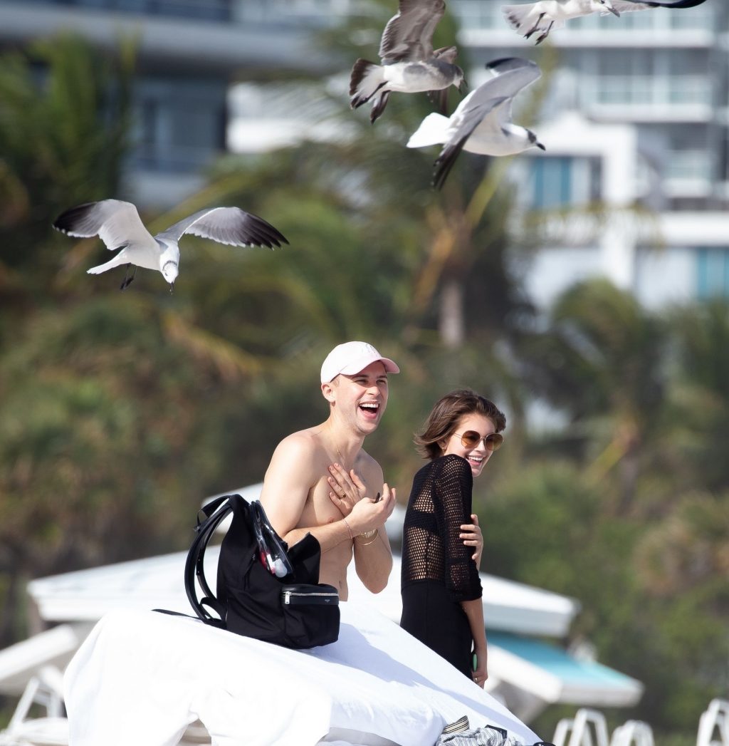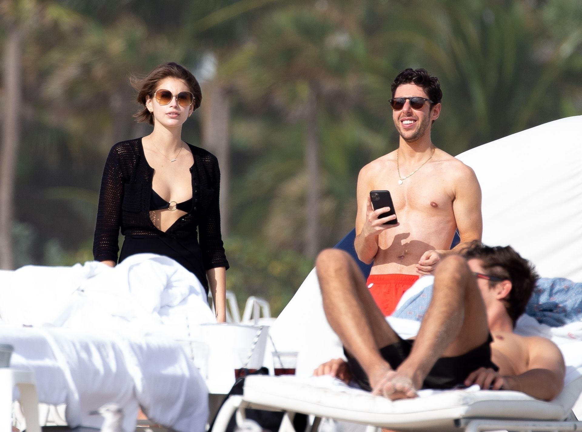 Kaia Gerber mostra i suoi piccoli seni, il dolce sedere e le gambe sexy, mentre si gode una giornata in spiaggia a Miami Beach, 11/01/2020. Kaia appare splendida nell’ensemble nero mentre trascorre la giornata con gli amici. I ragazzi vogliono vedere un threesome nudo.