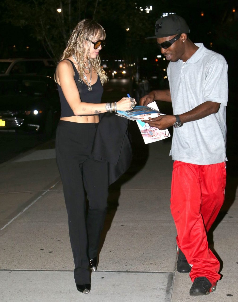 Bisessuale Miley Cyrus e la sua fidanzata Kaitlynn Carter vanno alla Gay Night al Acme Bar di NYC e poi tornano insieme al loro hotel in centro, 10/09/2019.