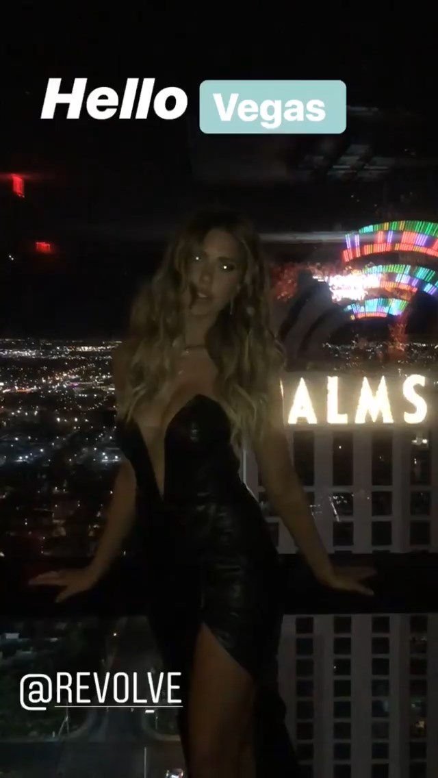 Modella prosperosa Kara Del Toro ha mostrato il suo décolleté indossando un vestito in pelle nera ai Secondi Annuali #REVOLVEawards di Revolve a Las Vegas, 09/11/2018.