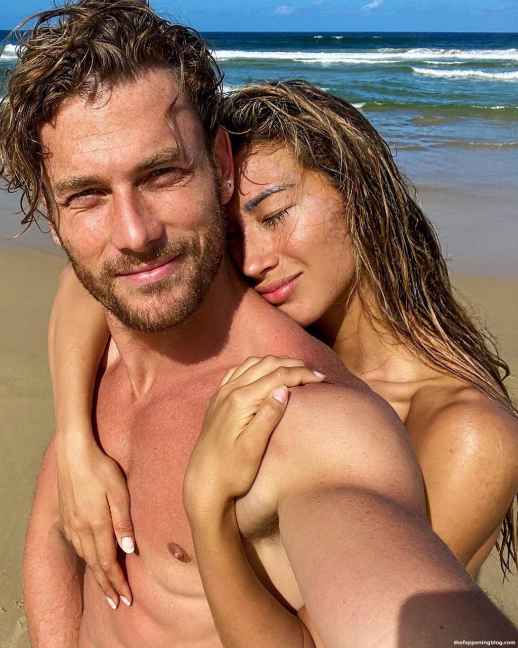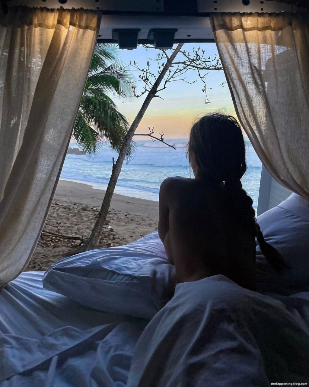 American fitness model Karina Elle sfoggia il suo corpo tonico, posando nuda e promuovendo lingerie in pizzo del brand Lounge (2021).