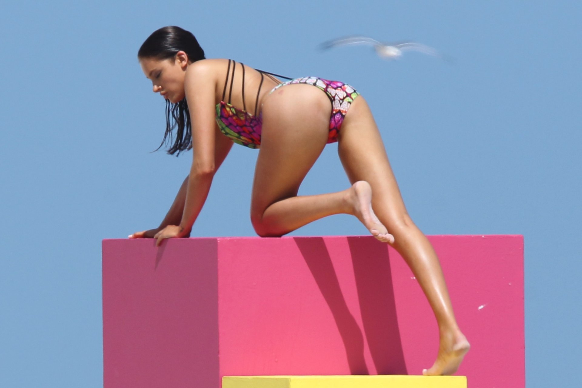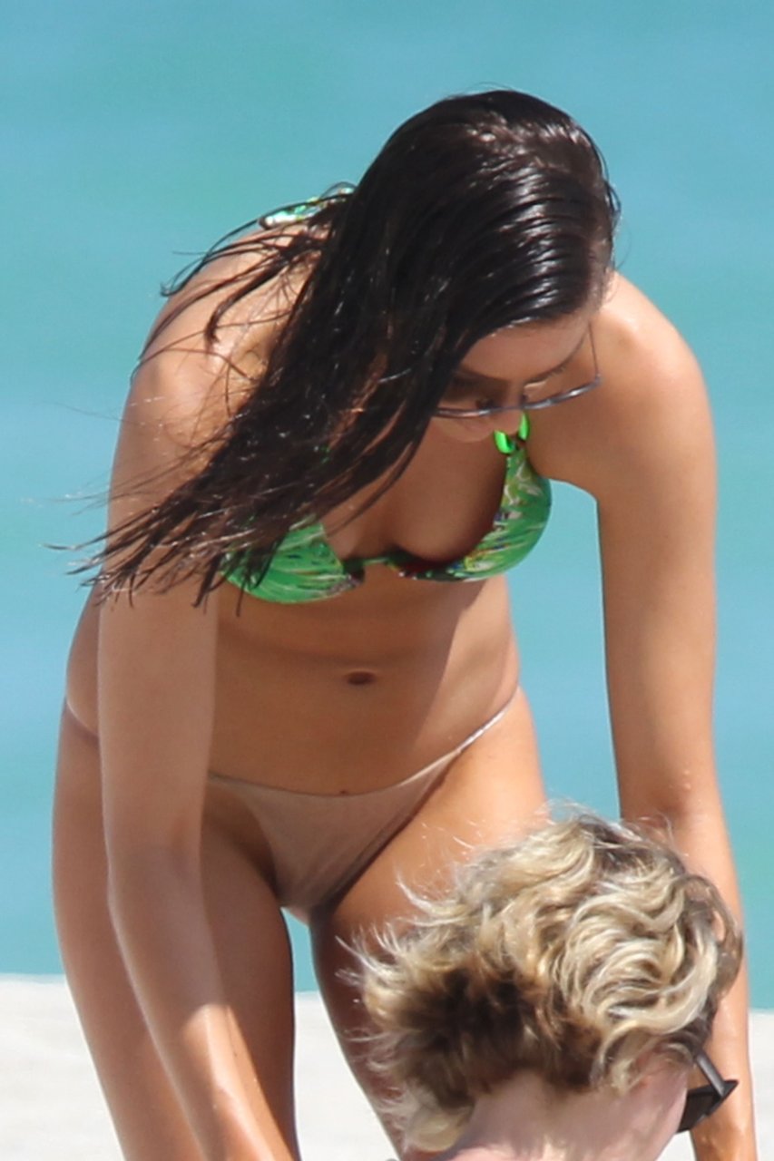 Karina Jelinek ha un malfunzionamento del guardaroba durante un servizio fotografico a Miami Beach, 13/03/2016. Olga Karina Jelinek Yamaguchi è una modella, attrice e personaggio televisivo argentina. Età: 34 (22 marzo 1981).