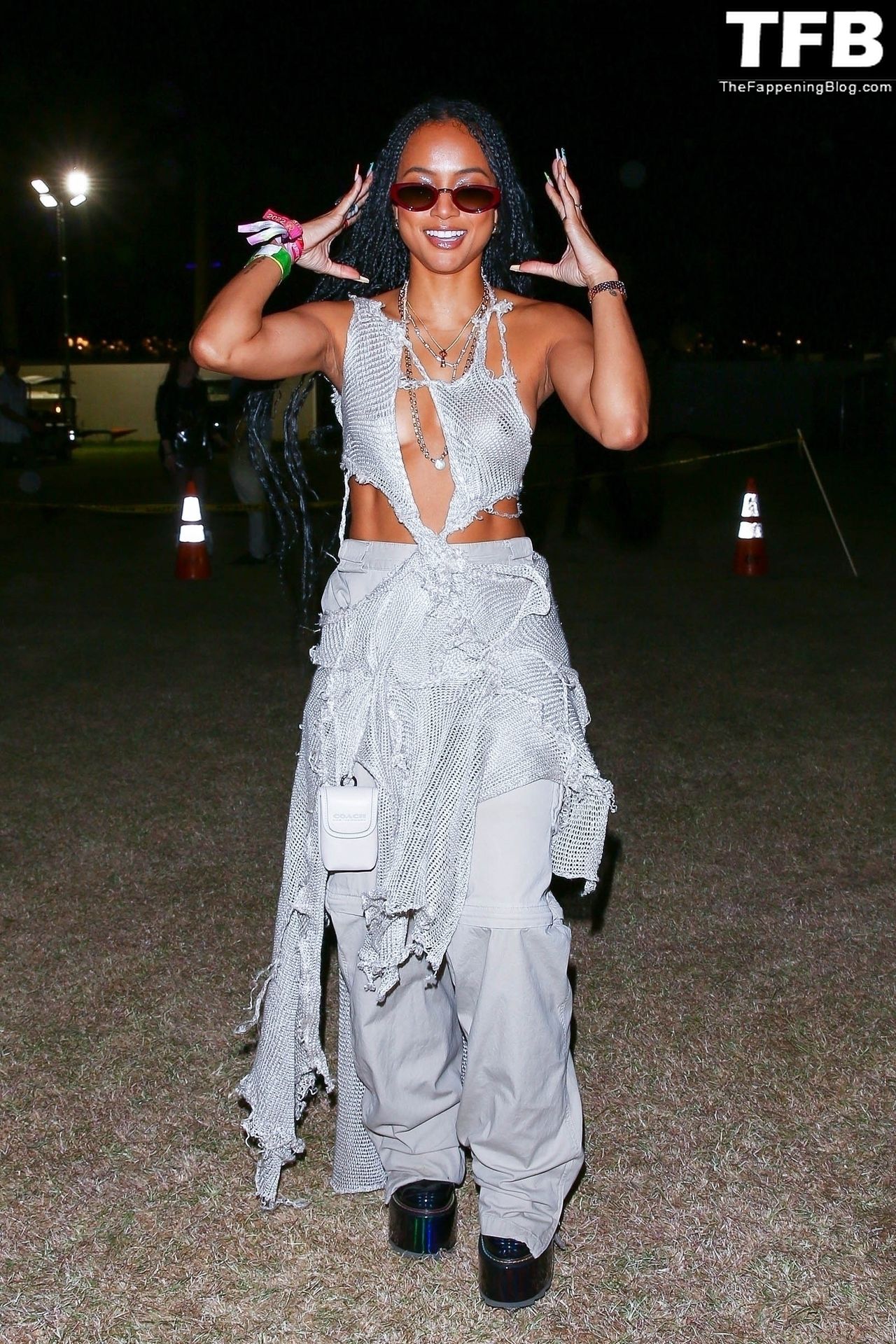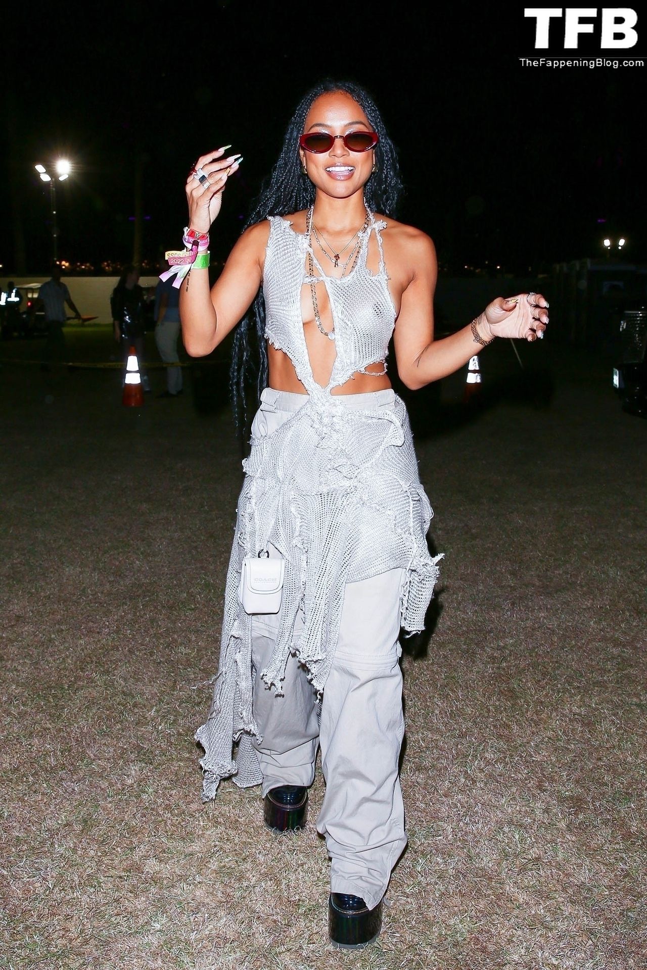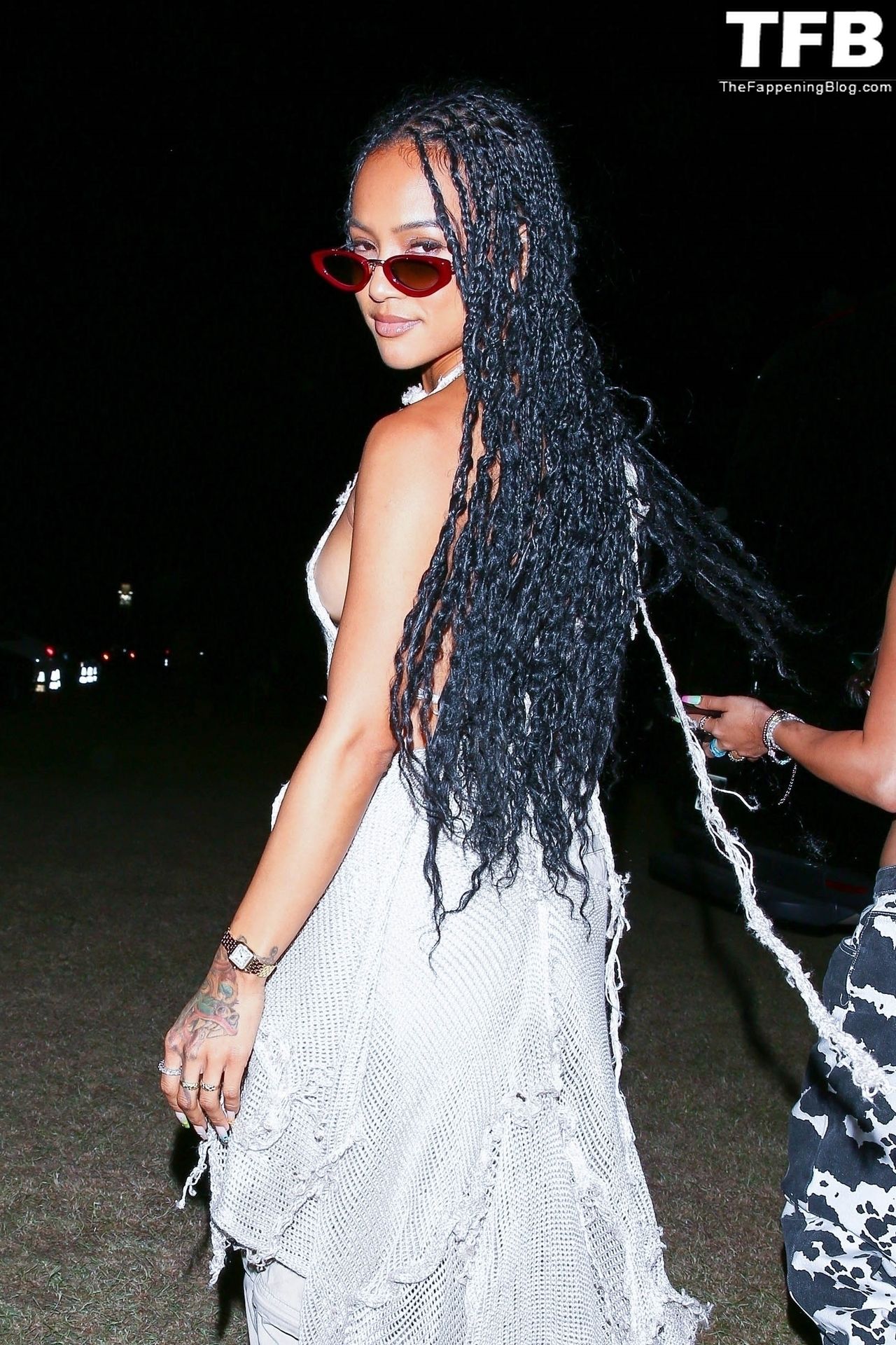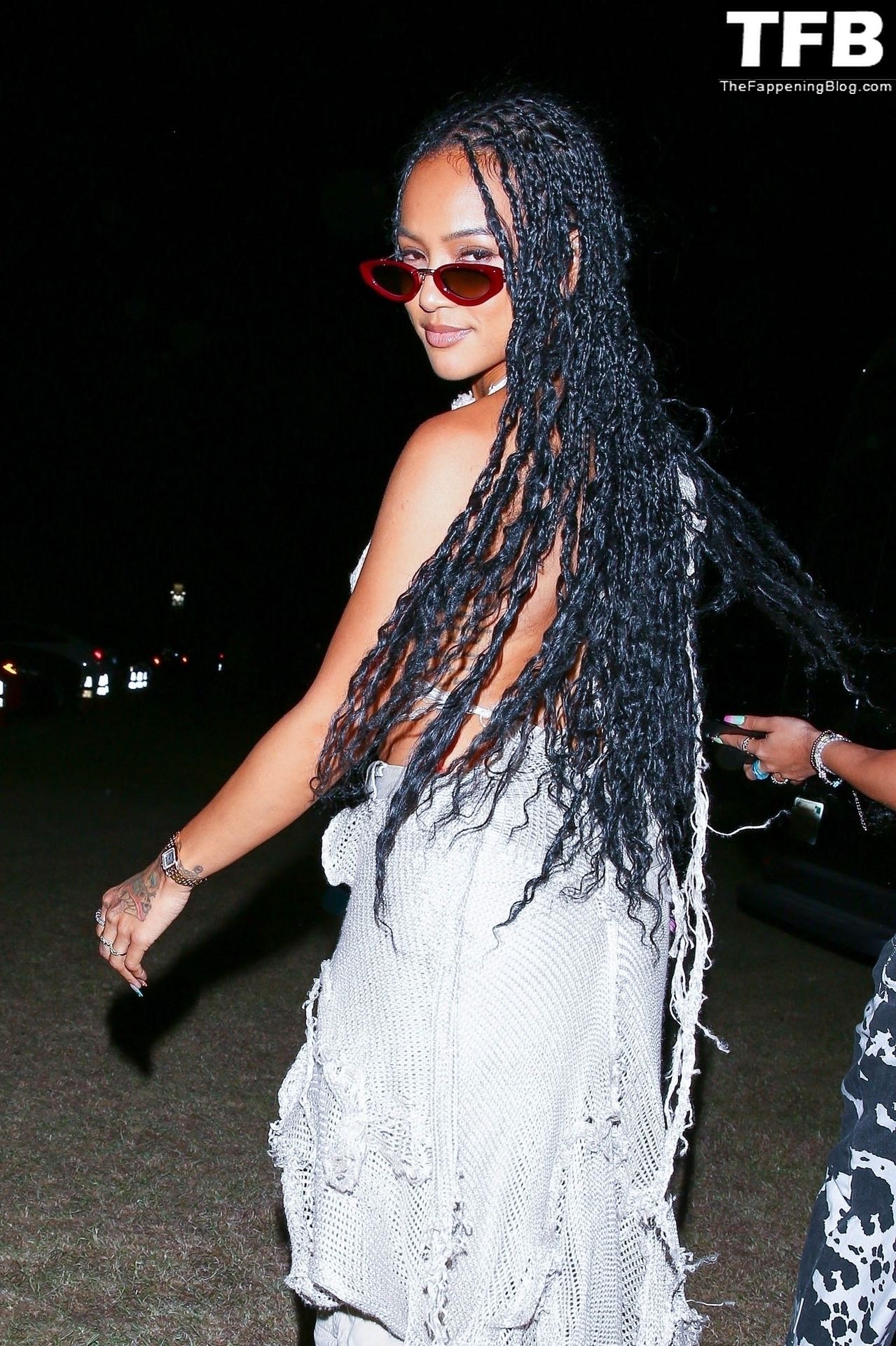 Karrueche Tran senza reggiseno esce dal primo giorno del Coachella Valley Music and Arts Festival a Indio, 16/04/2022.
