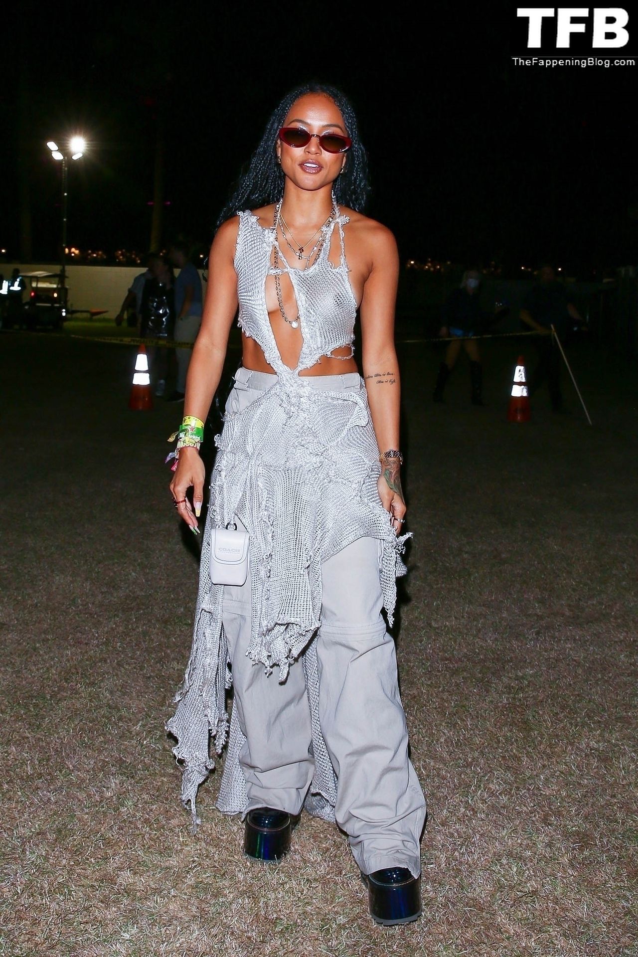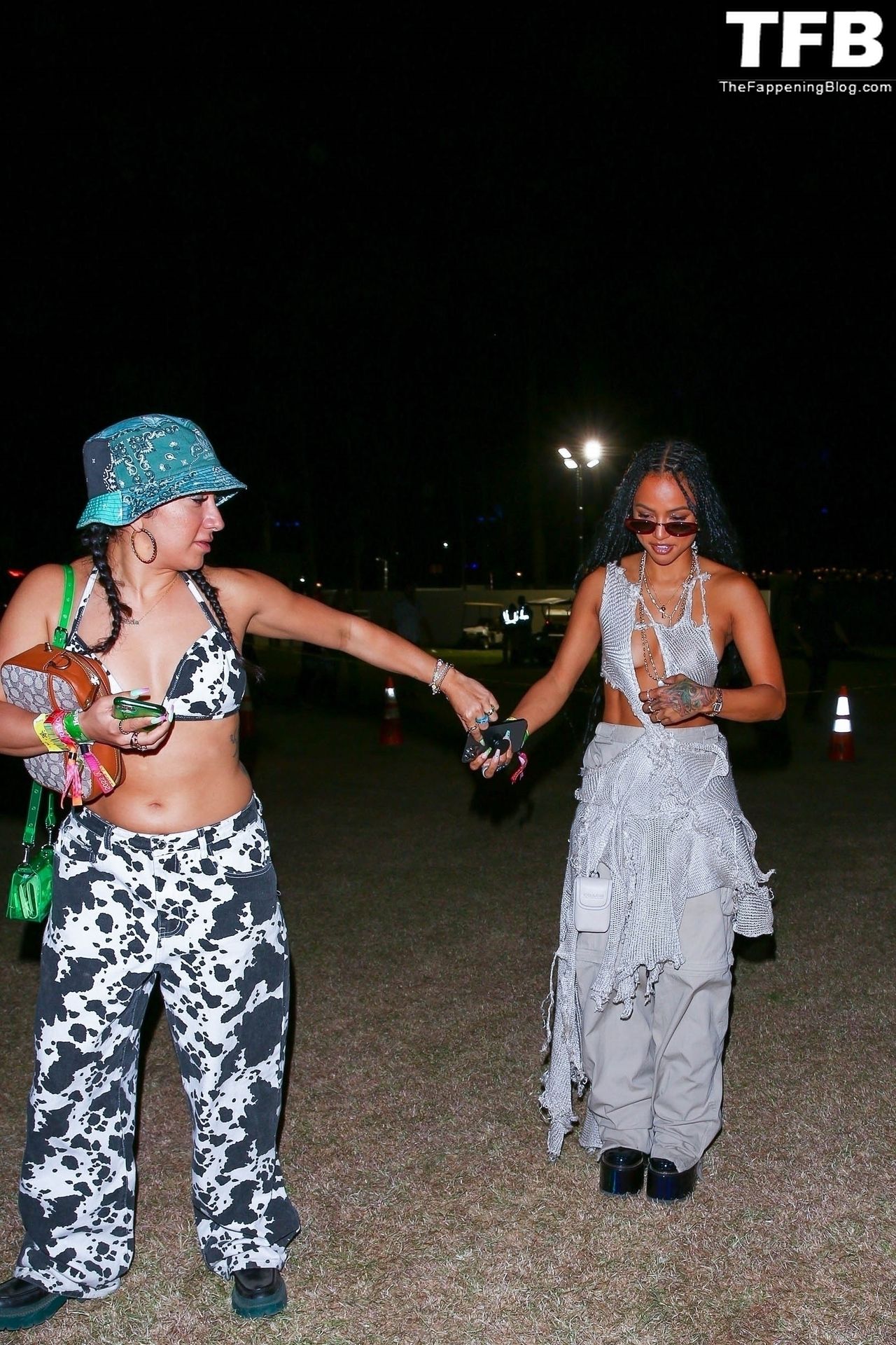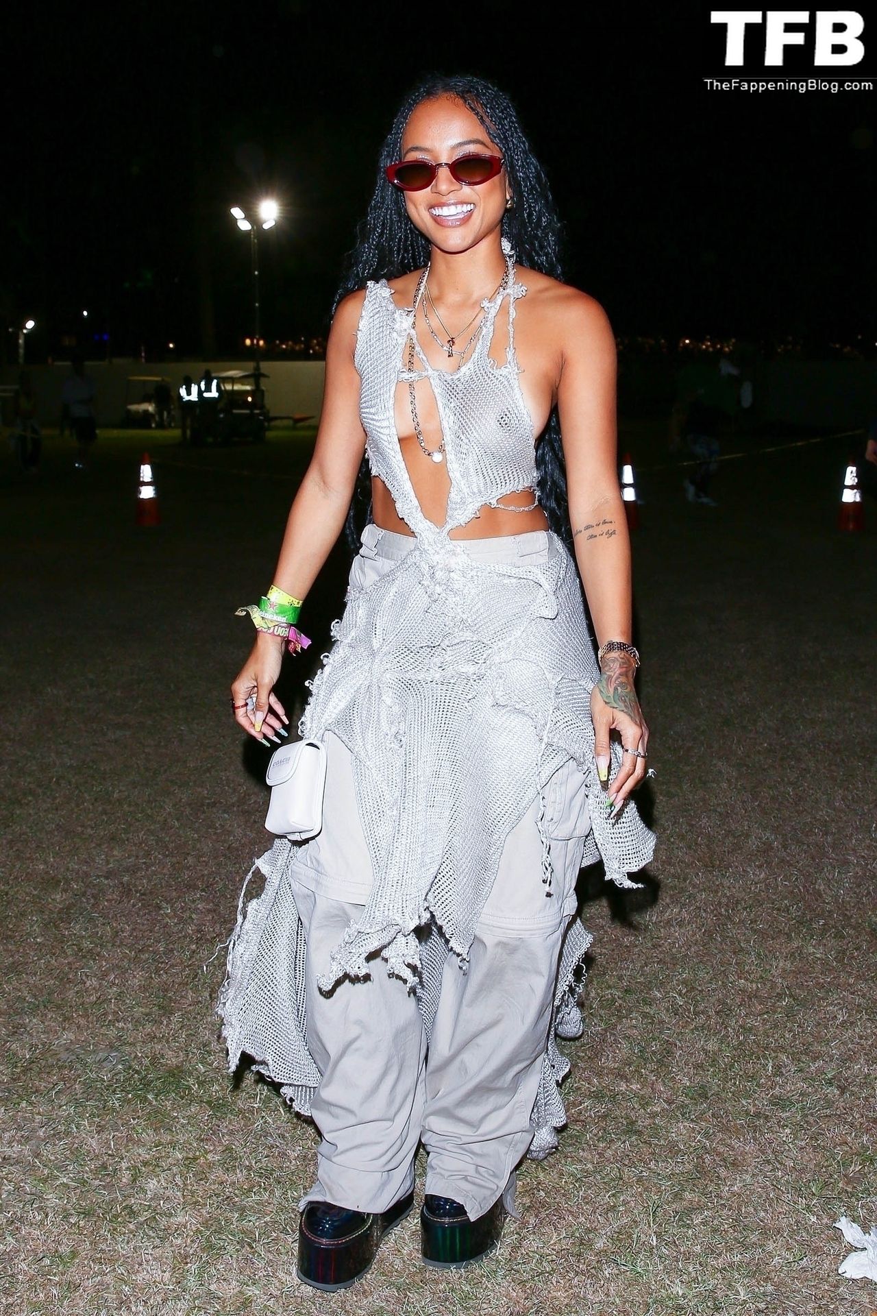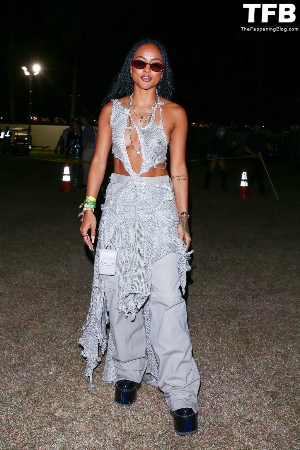 Karrueche Tran senza reggiseno esce dal primo giorno del Coachella Valley Music and Arts Festival a Indio, 16/04/2022.
