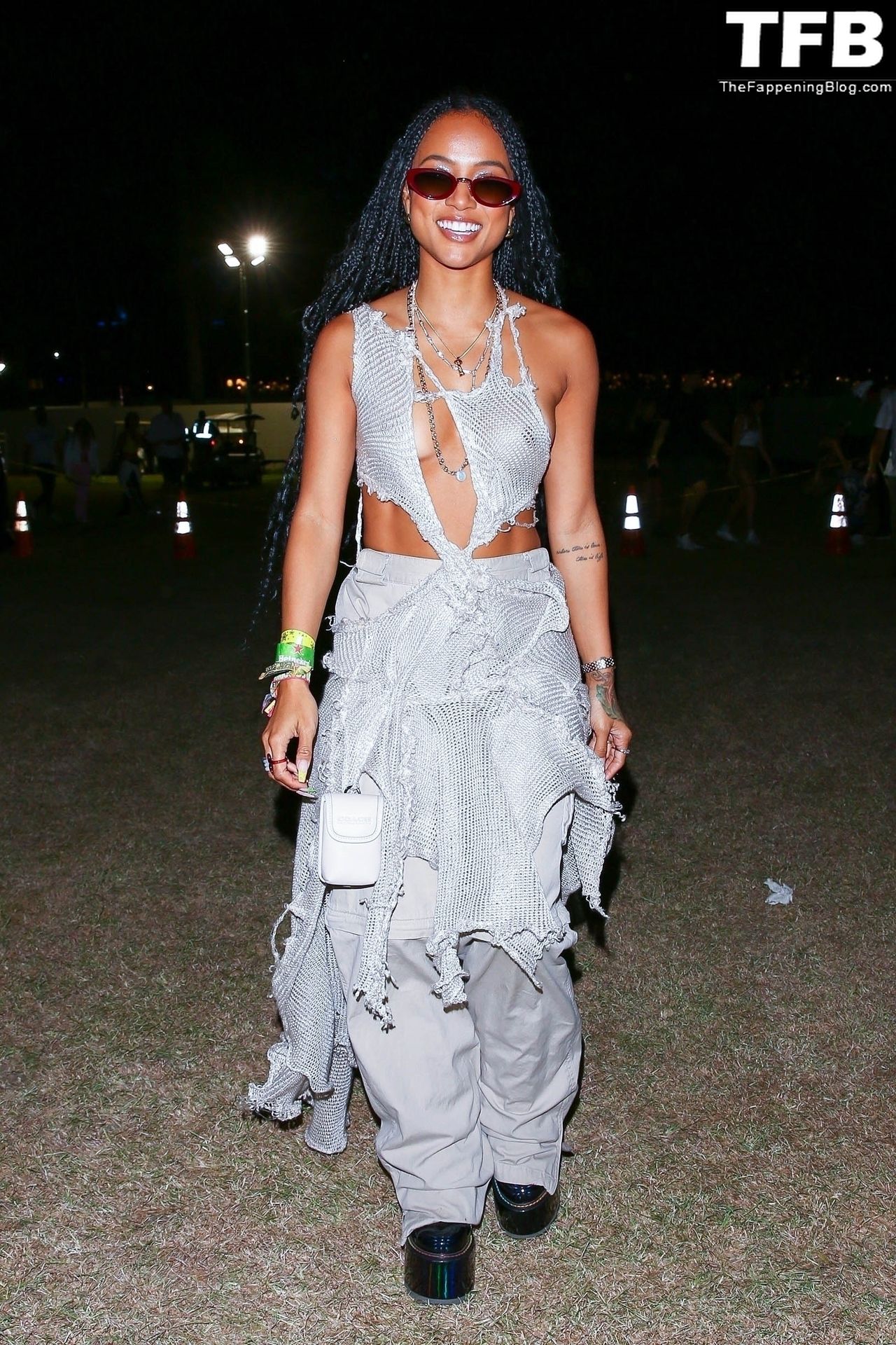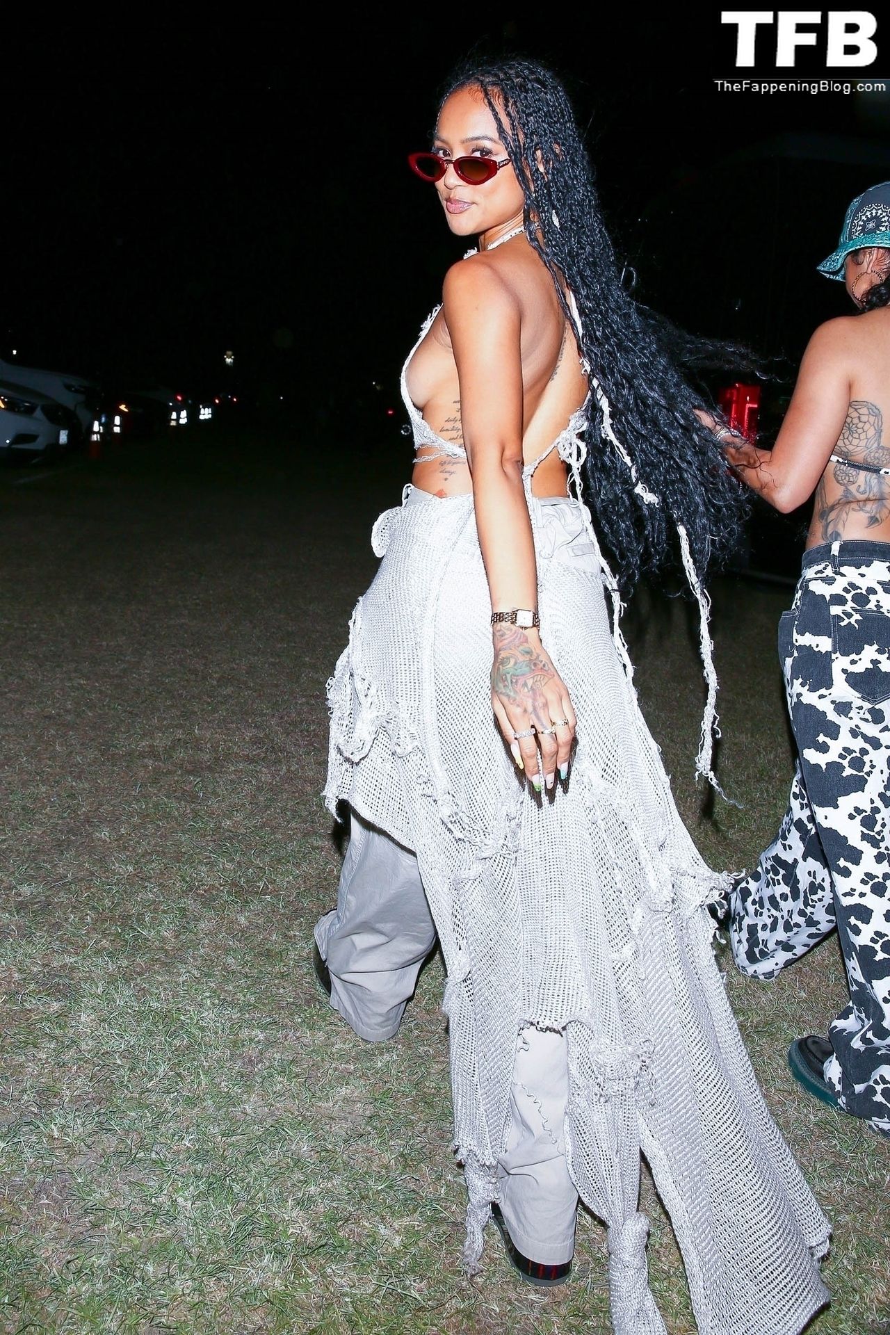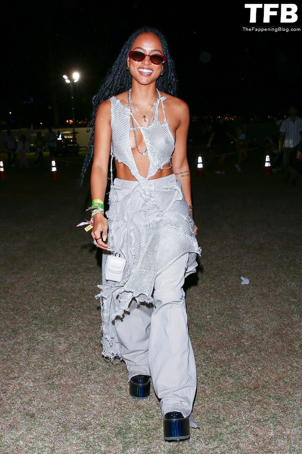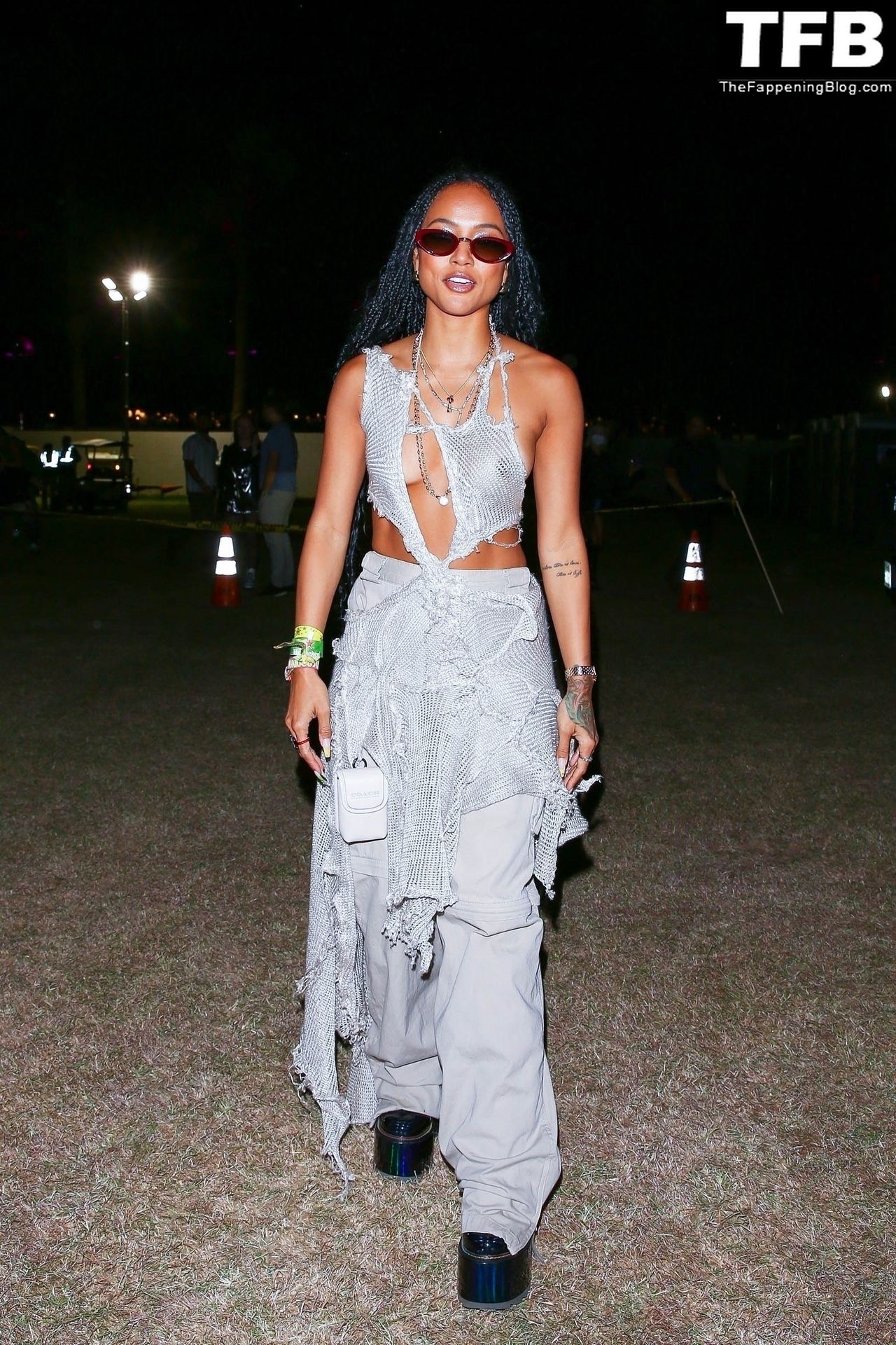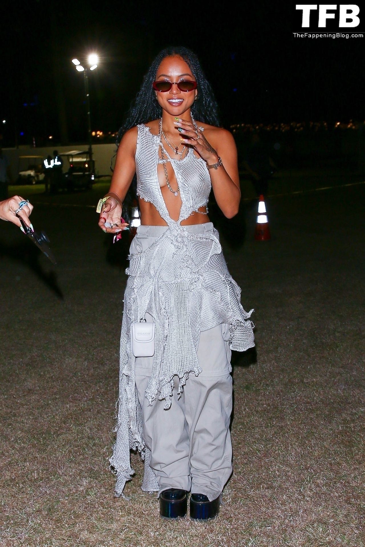 Karrueche Tran senza reggiseno esce dal primo giorno del Coachella Valley Music and Arts Festival a Indio, 16/04/2022.