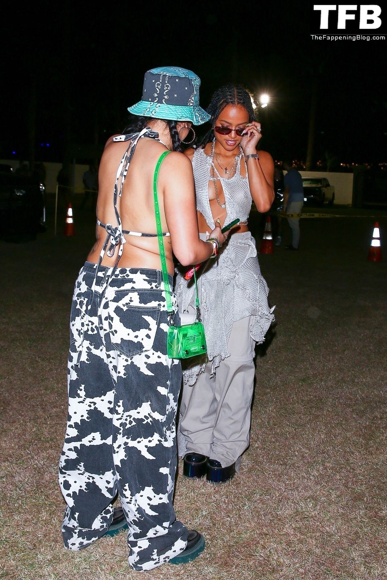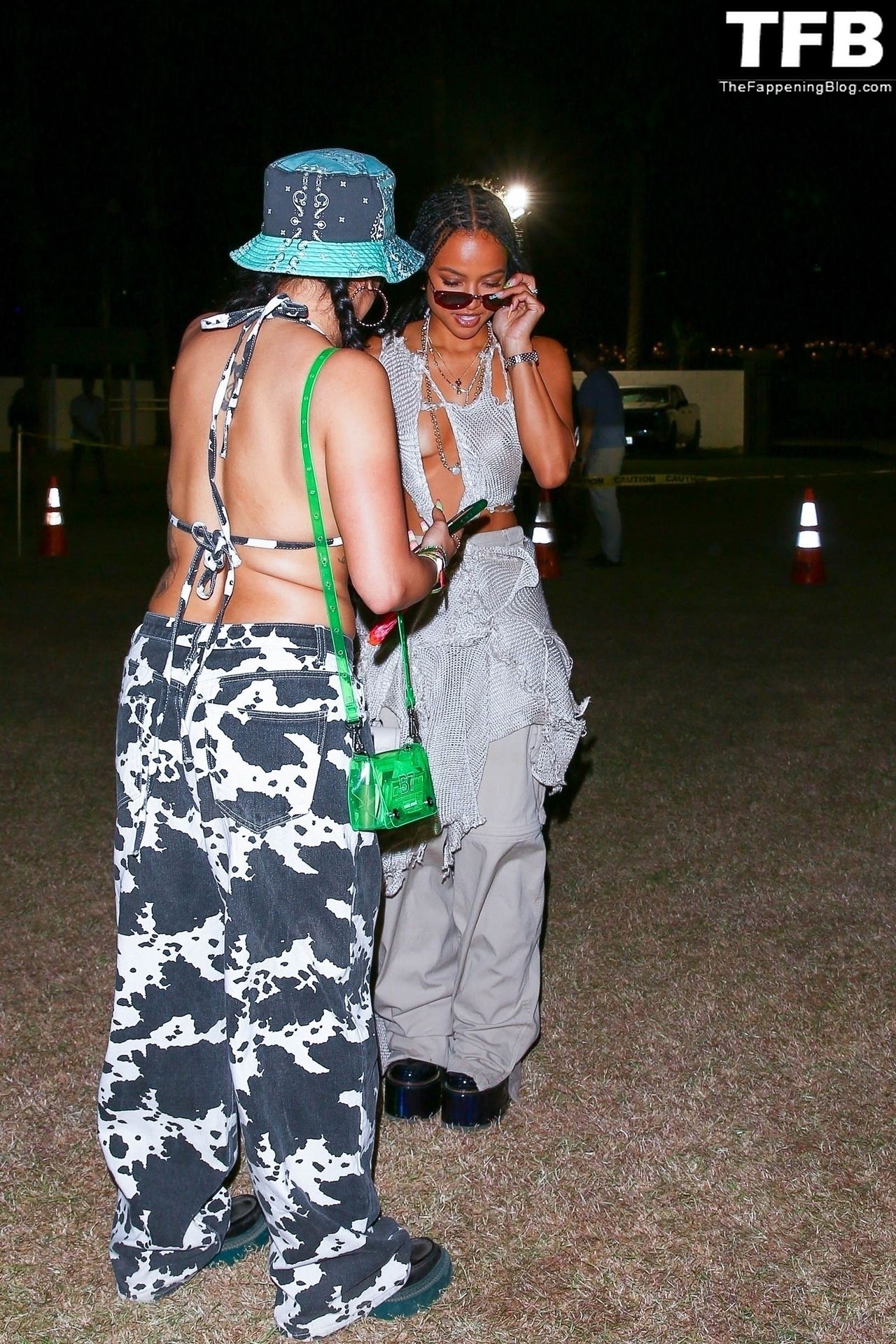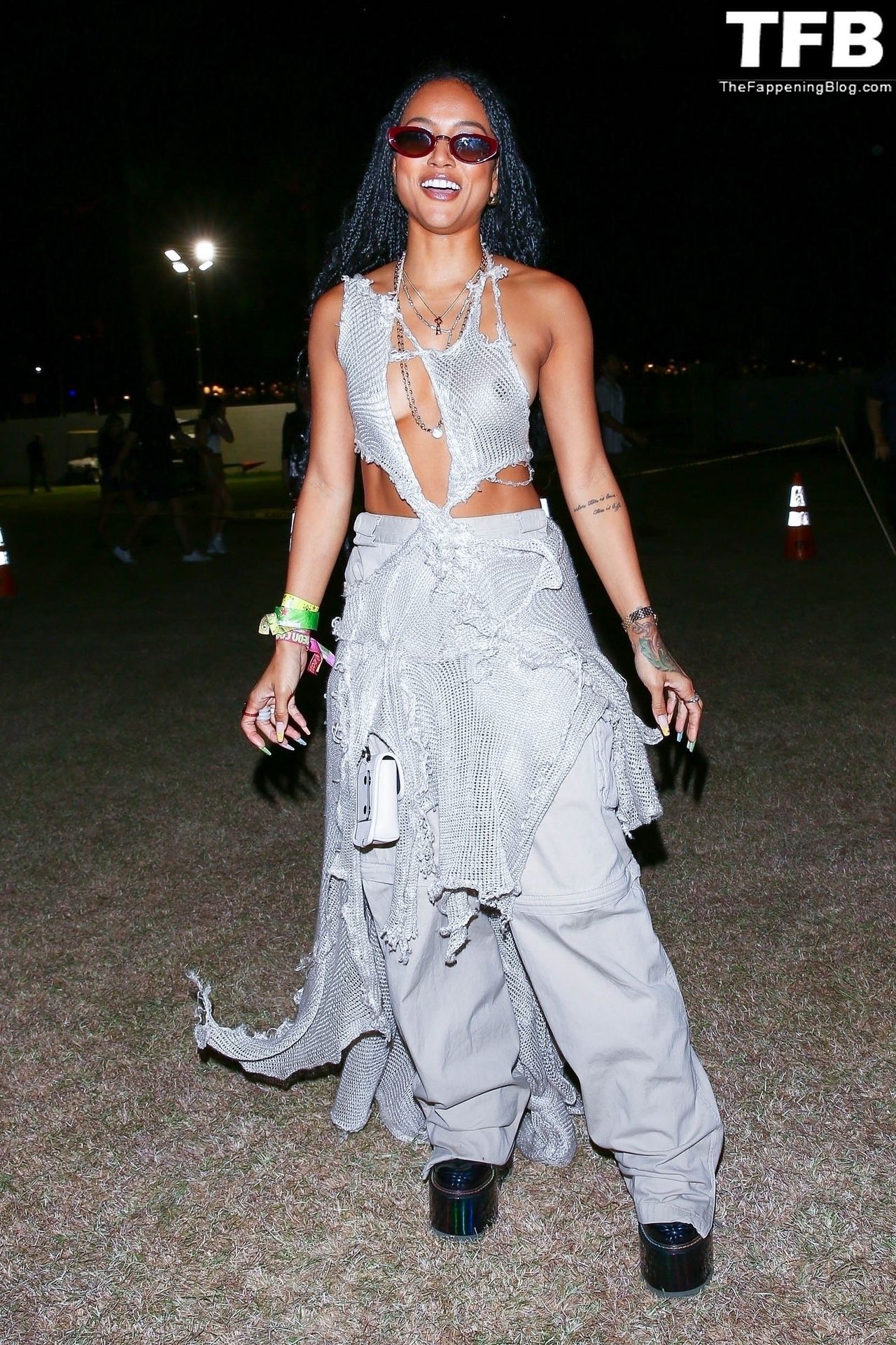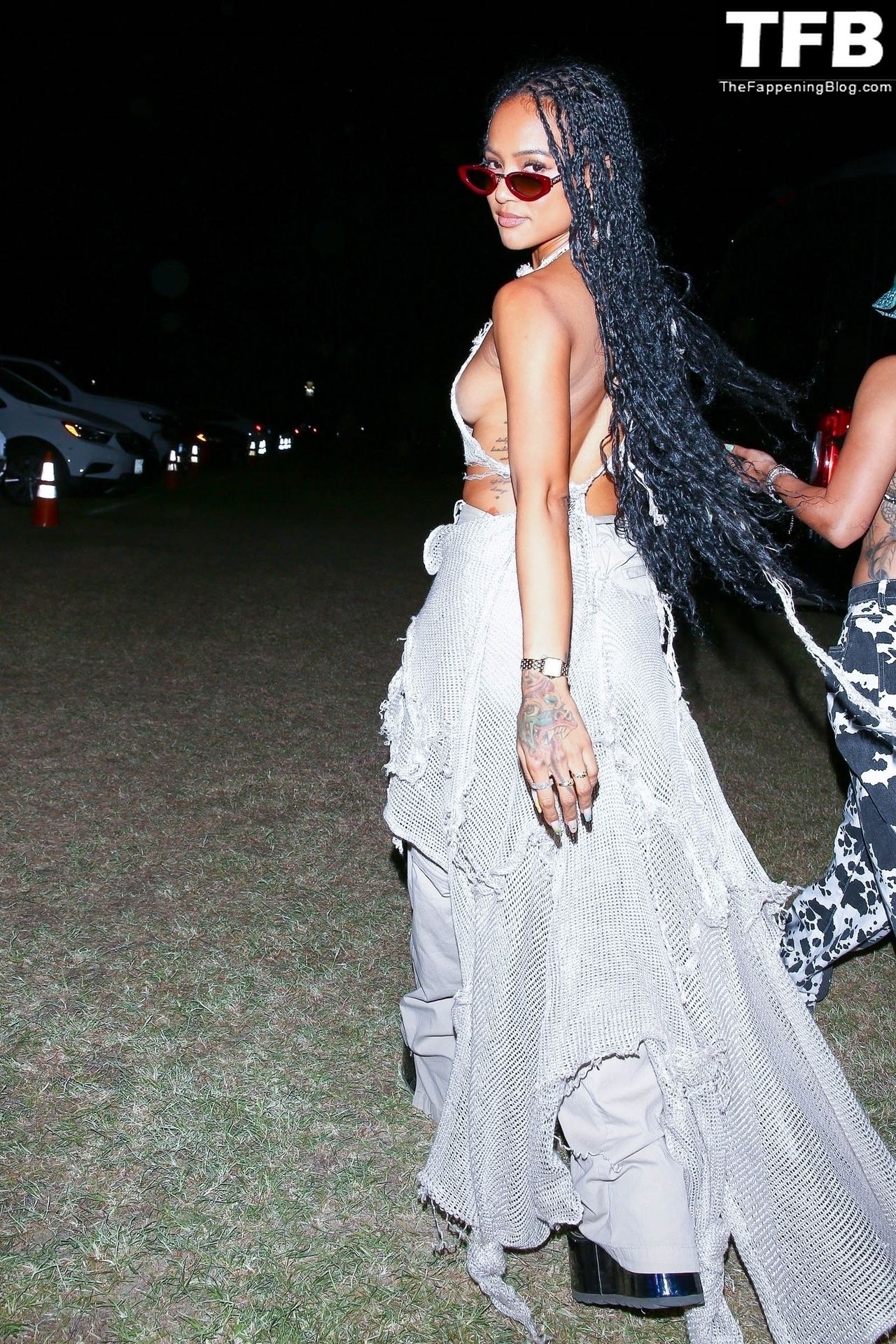 Karrueche Tran senza reggiseno esce dal primo giorno del Coachella Valley Music and Arts Festival a Indio, 16/04/2022.