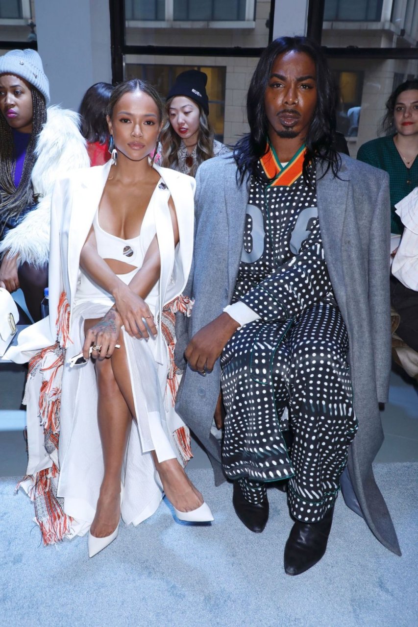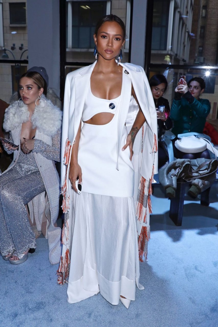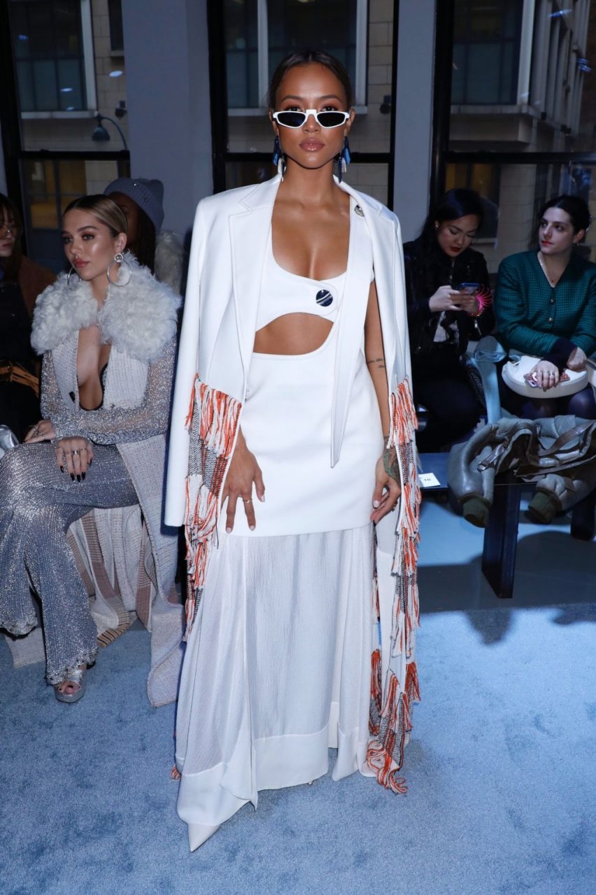 Karrueche Tran ha mostrato il suo décolleté indossando un look bianco alla sfilata 3.1 Phillip Lim Autunno/Inverno 2019 durante la New York Fashion Week, 11/02/2019.