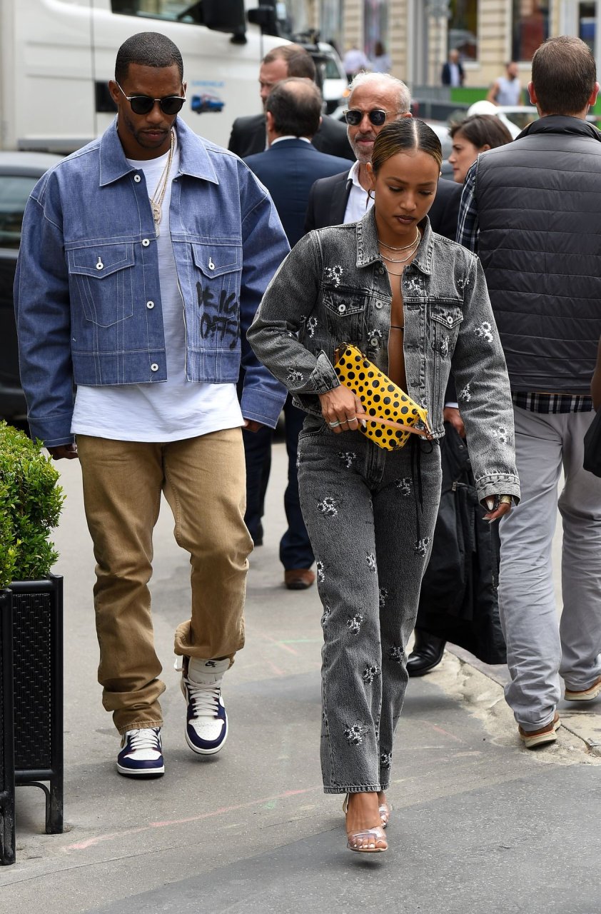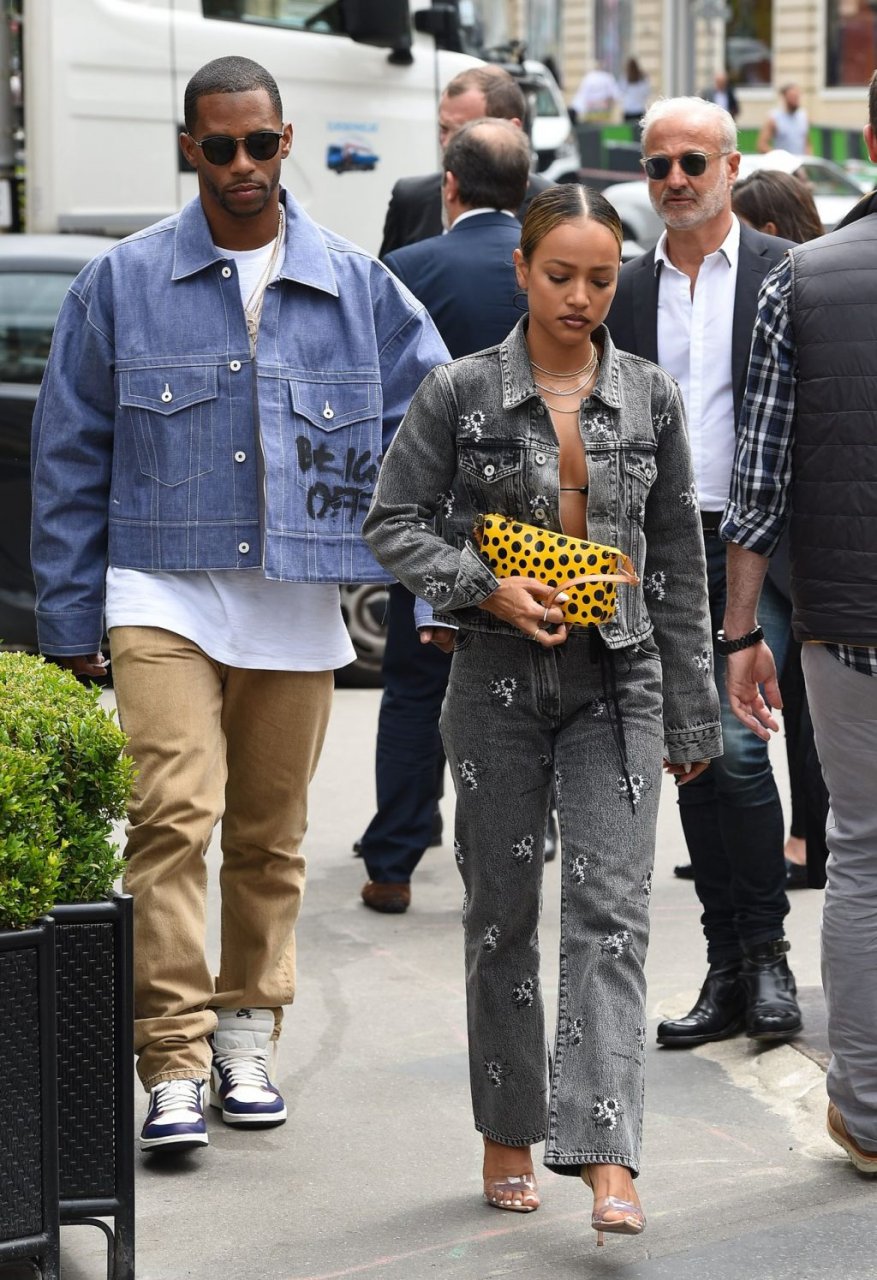 Karrueche Tran e Victor Cruz sono stati visti mentre cenavano al ristorante L’Avenue a Parigi con Rudy Gay, 19/06/2019. Karrueche indossava un top bikini minuscolo e una giacca di jeans.