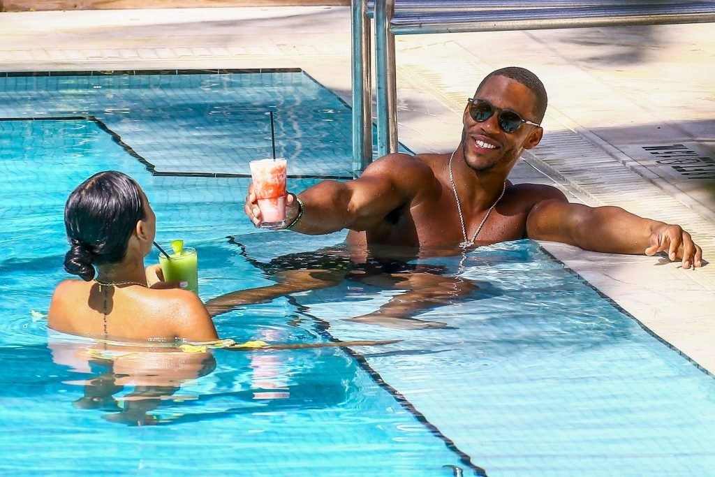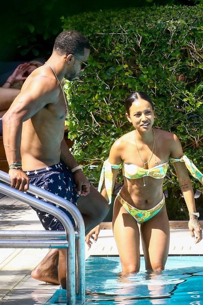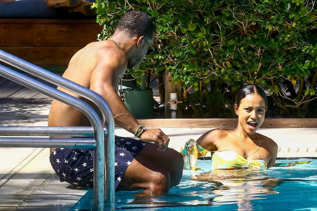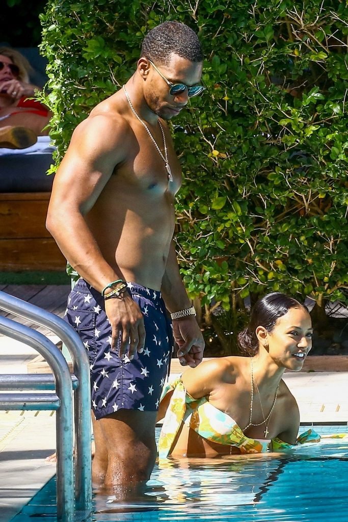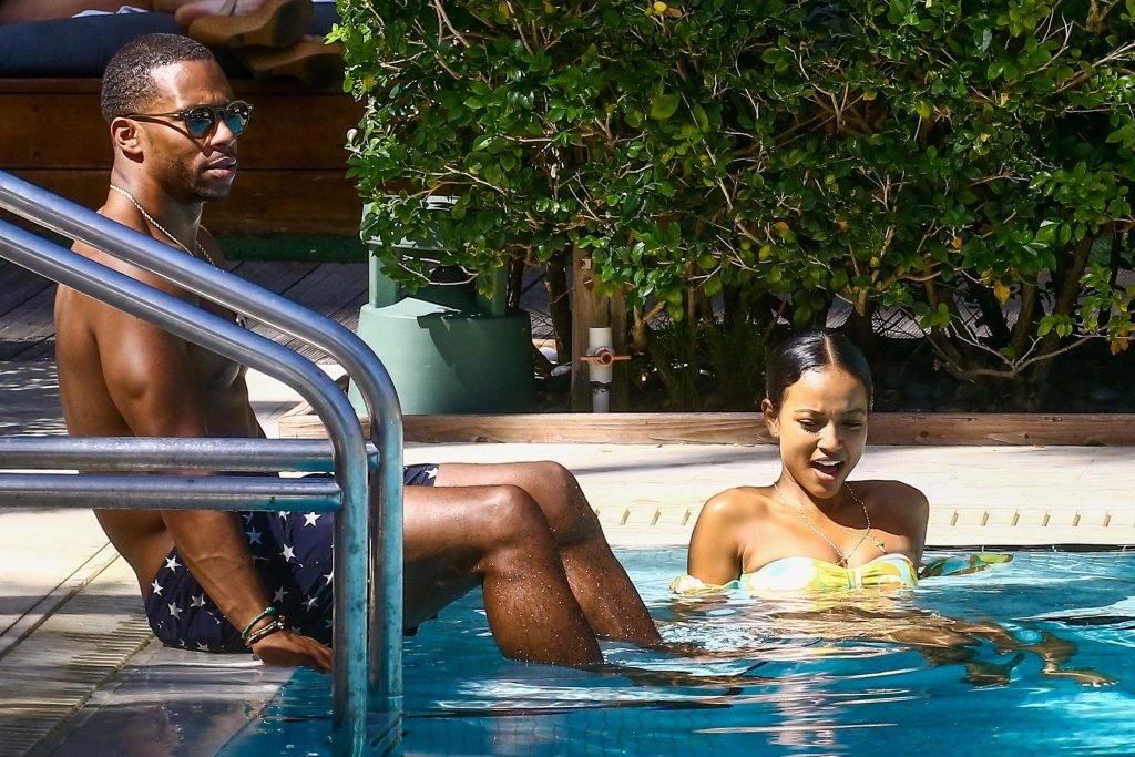 Karrueche Tran e il giocatore di football americano Victor Cruz si godono una giornata insieme in piscina a Miami, 13/04/2018. La calda bruna ha sfoggiato il suo lato B all’hotel. Karrueche Tran è una modella, stilista, attrice televisiva e cinematografica (Claws (2017), Only for One Night (2016)). Età – 29 anni.