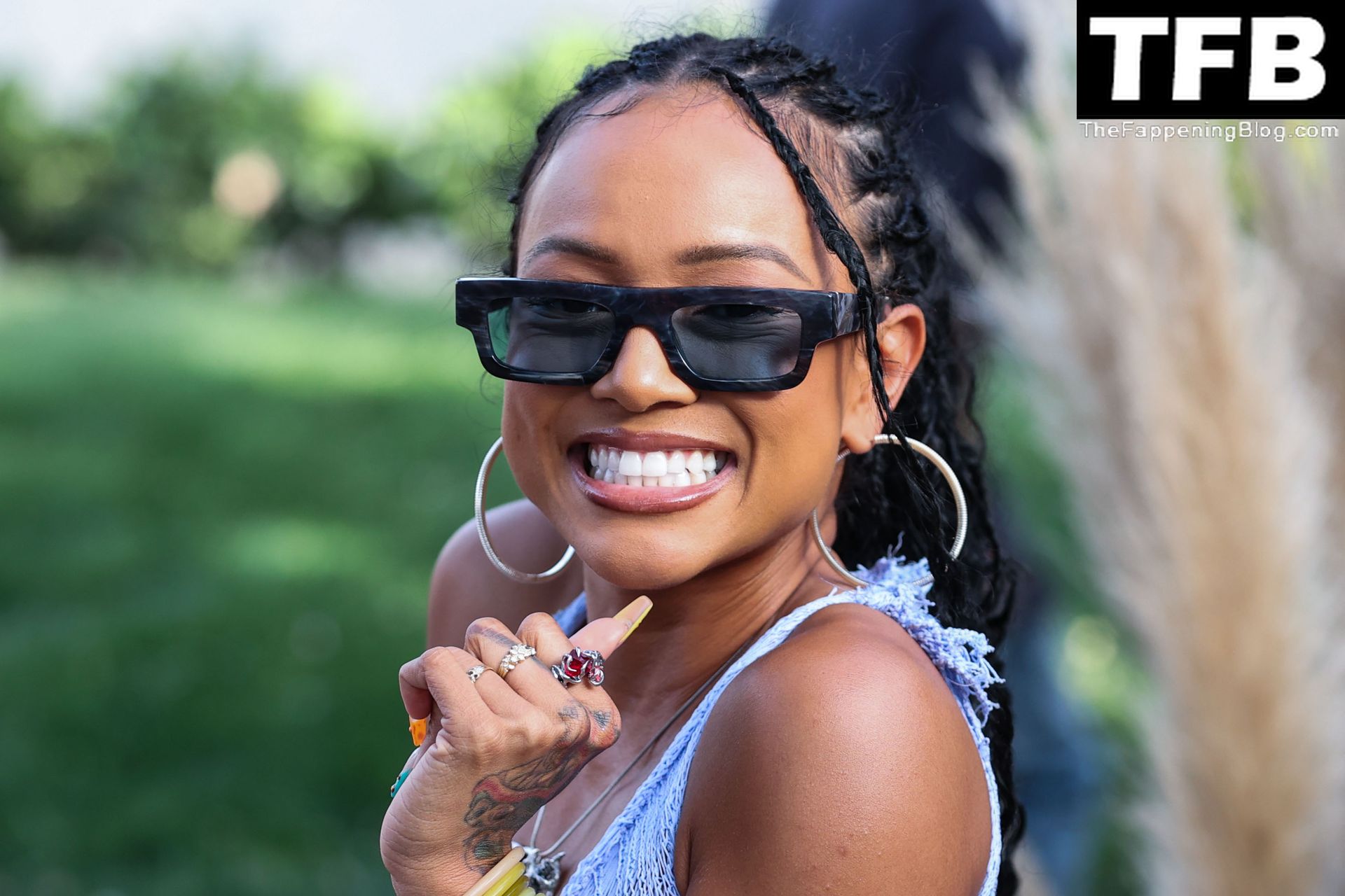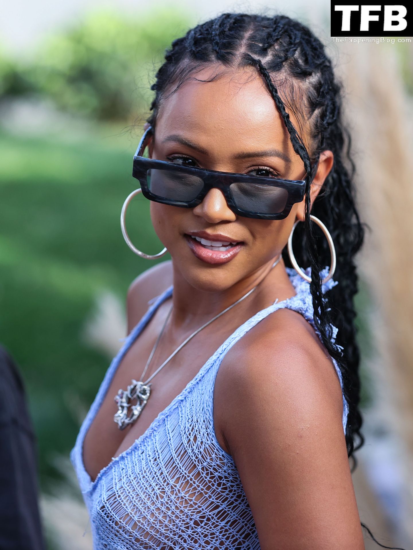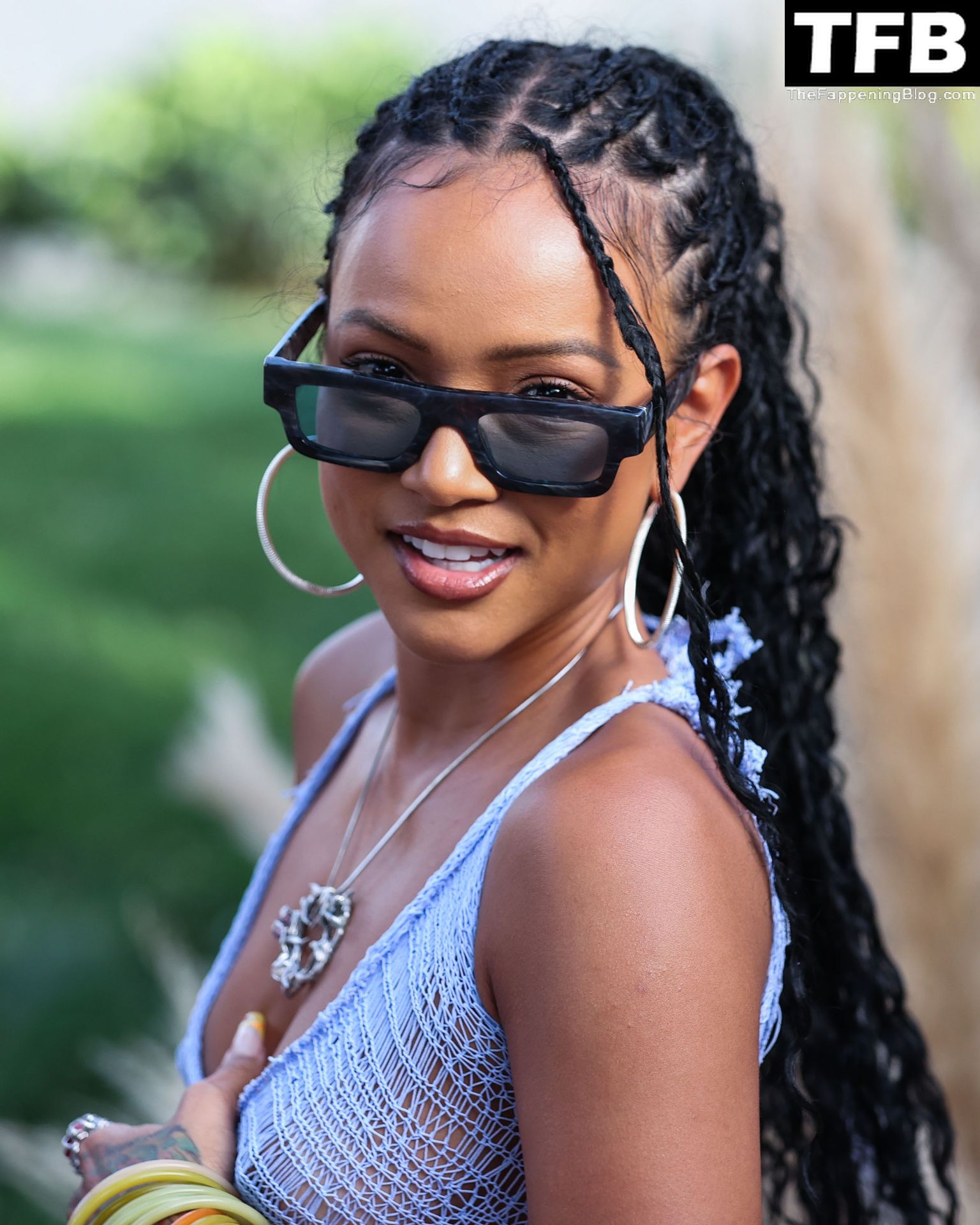 L’attrice e modella americana Karrueche Tran esce con stile al Revolve Fest nel secondo giorno del Coachella 2022 Music Festival a Indio, 16/04/2022.