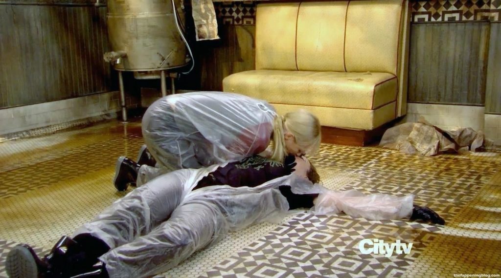 This next scene is somewhat lesbian. Beth Behrs bends down and presses her lips to Kat’s, blowing a couple of times. It would be friendly if the girls started kissing for a bit, wouldn’t it?