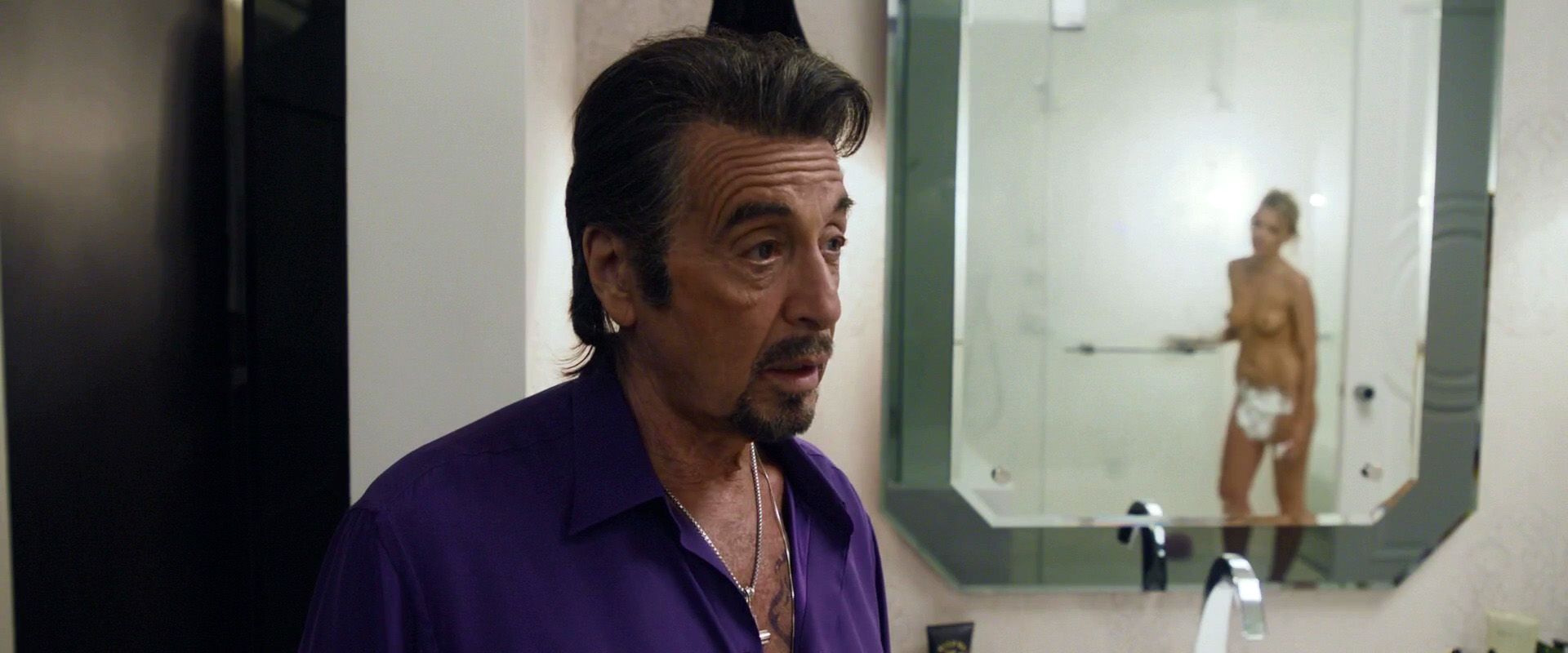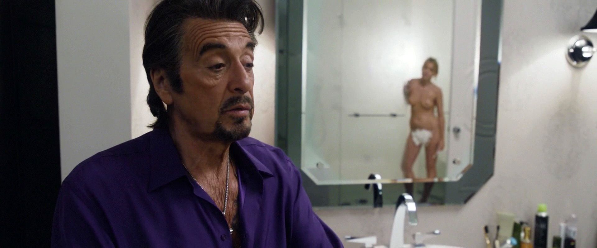 Sophie (Katarina Cas) sta cercando di radersi la vagina sotto la doccia ed è tutta insaponata, mostrando i suoi seni e il sedere mentre chiacchiera con Danny (Al Pacino)!