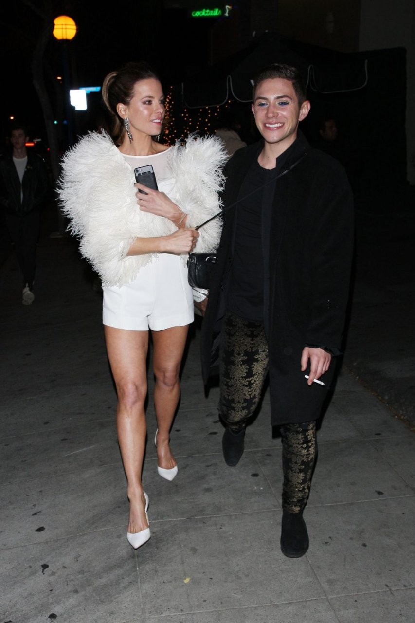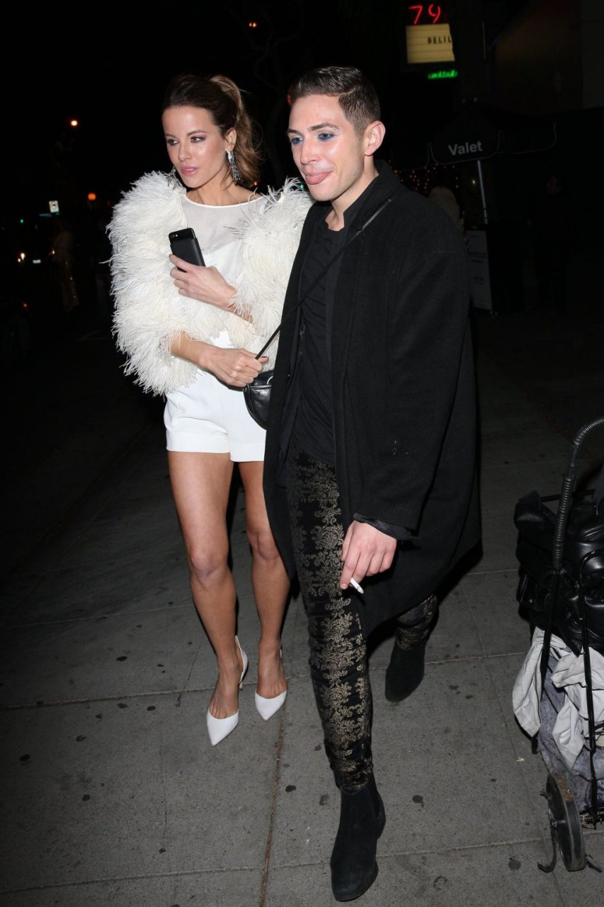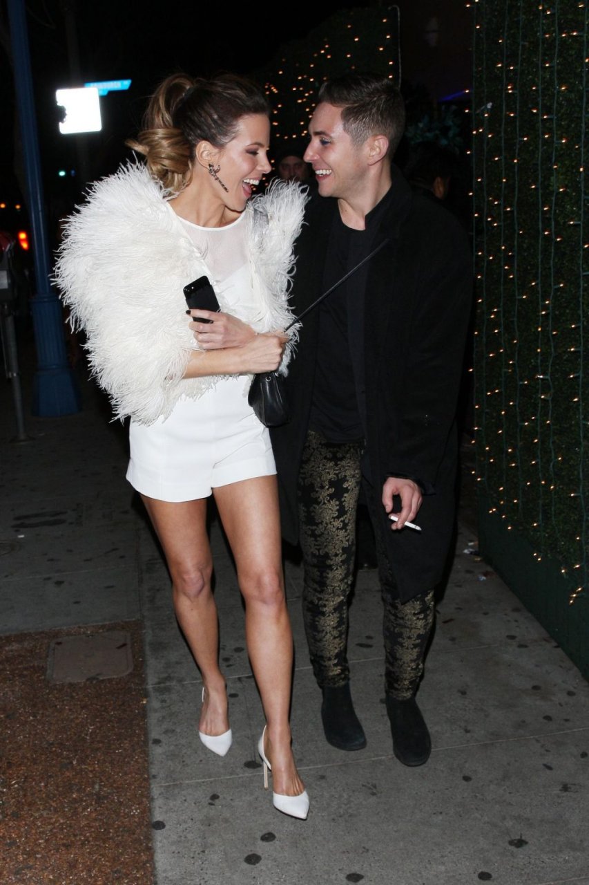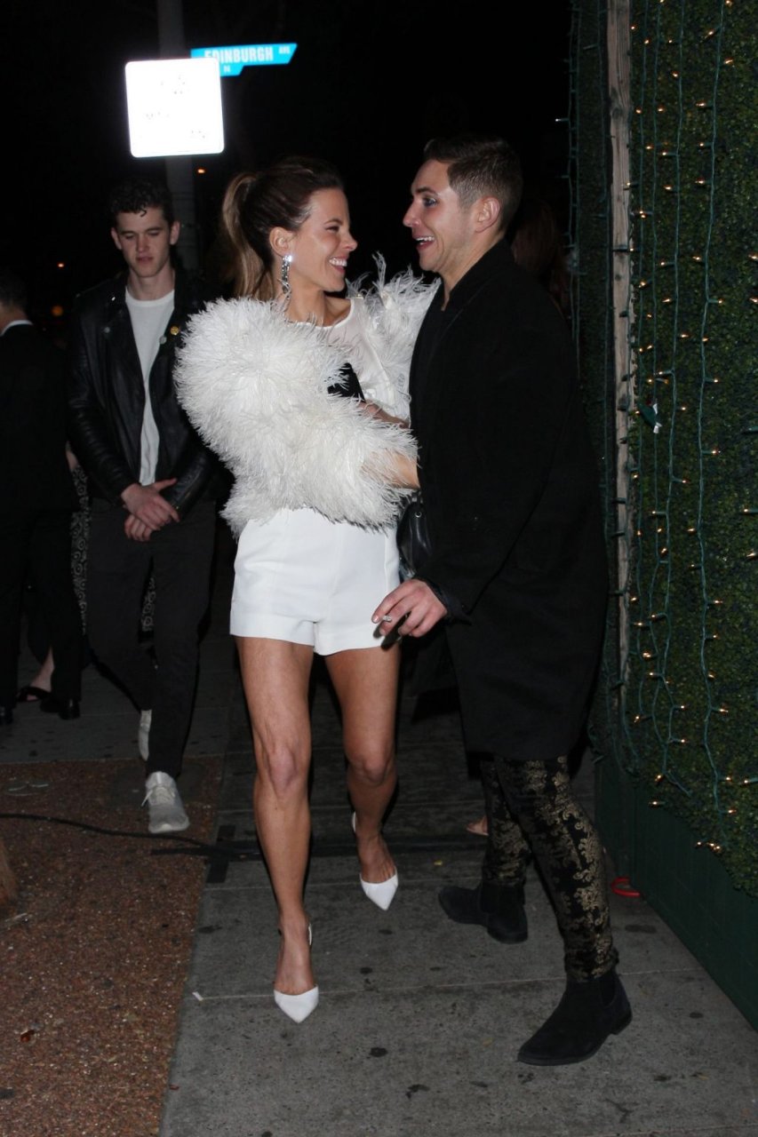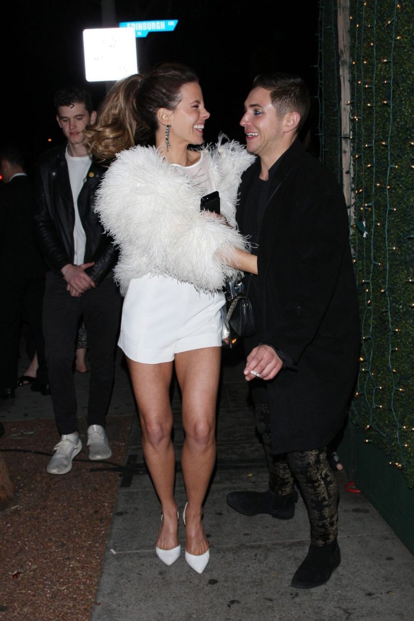 L’attrice dalle gambe lunghe Kate Beckinsale (45) sorride mentre lascia una festa di Capodanno tenutasi al ristorante Delilah con Stephen Simbari a West Hollywood, 01/01/2019.