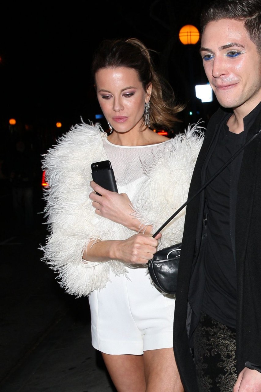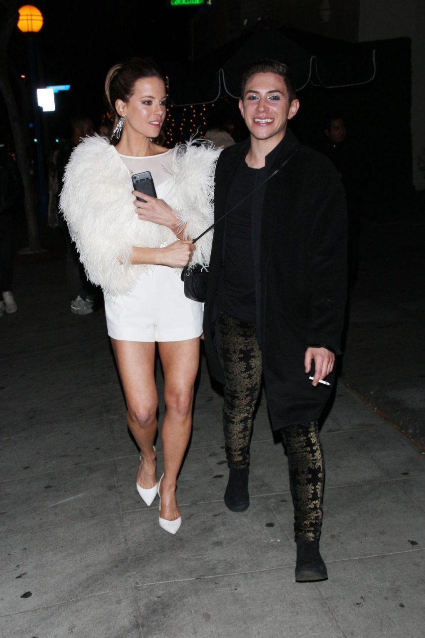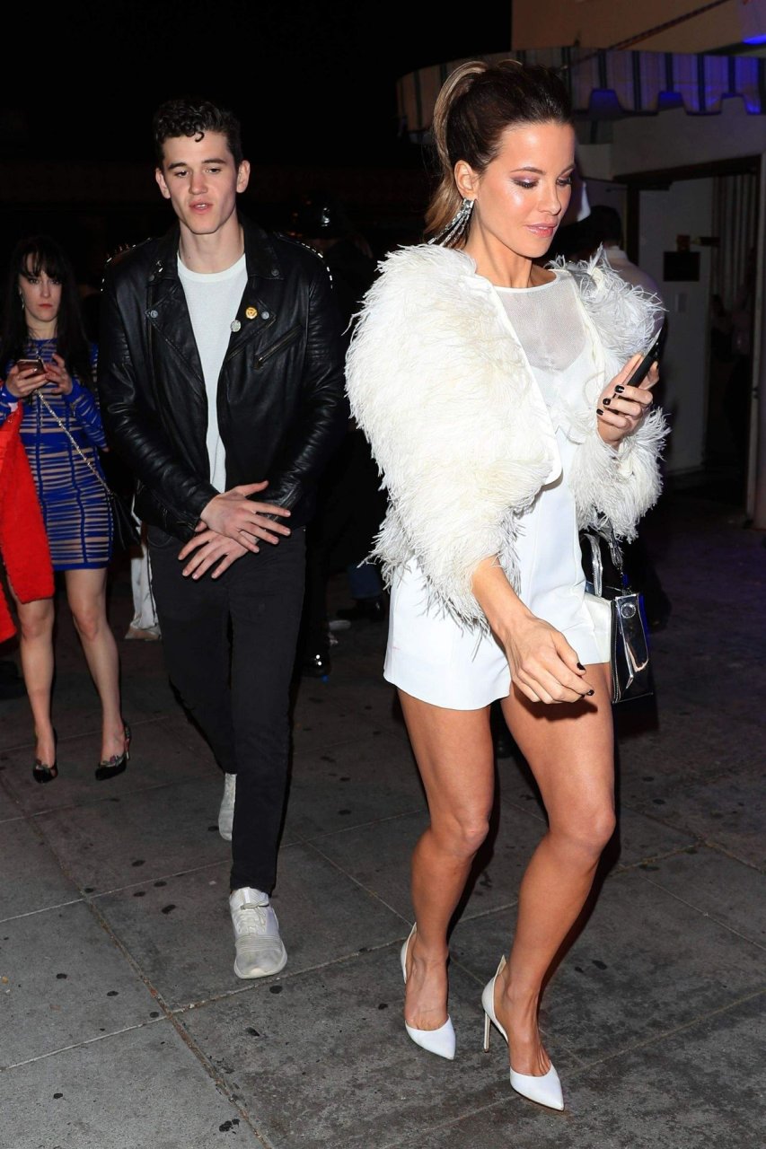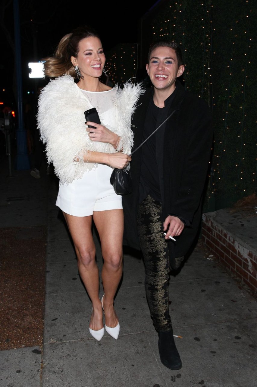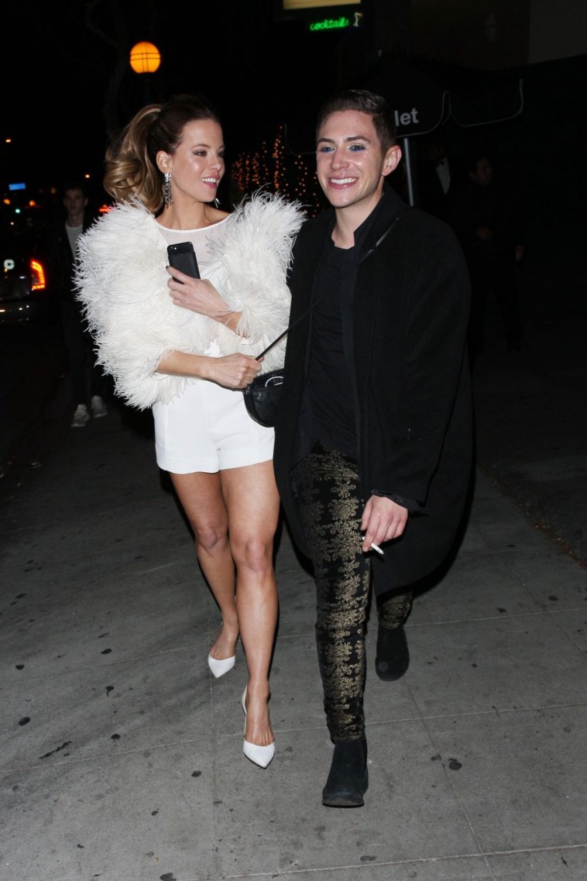 L’attrice dalle gambe lunghe Kate Beckinsale (45) sorride mentre lascia una festa di Capodanno tenutasi al ristorante Delilah con Stephen Simbari a West Hollywood, 01/01/2019.