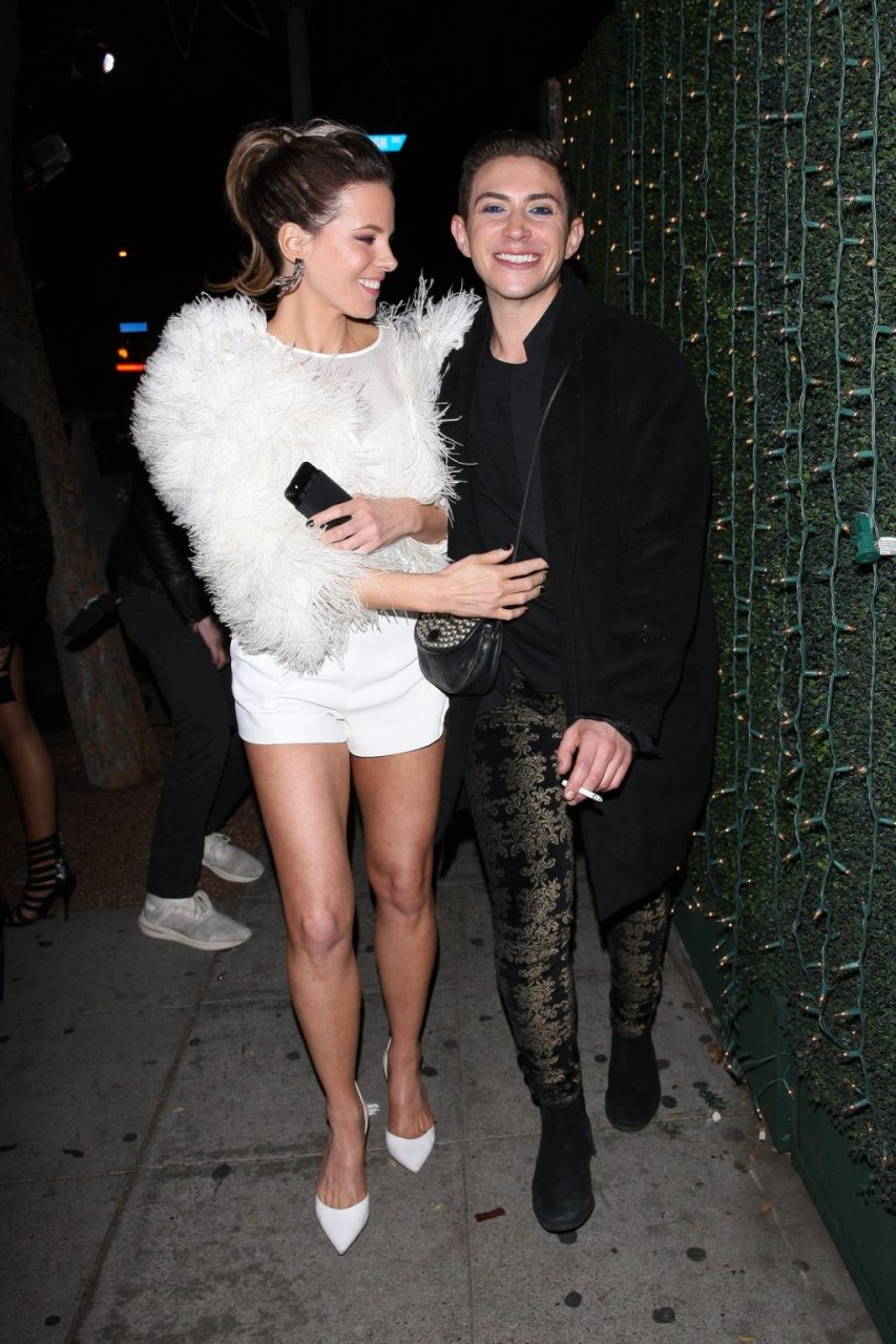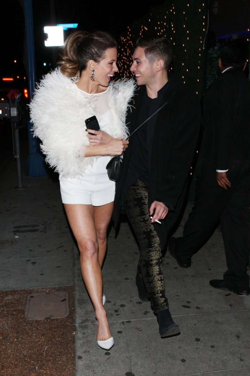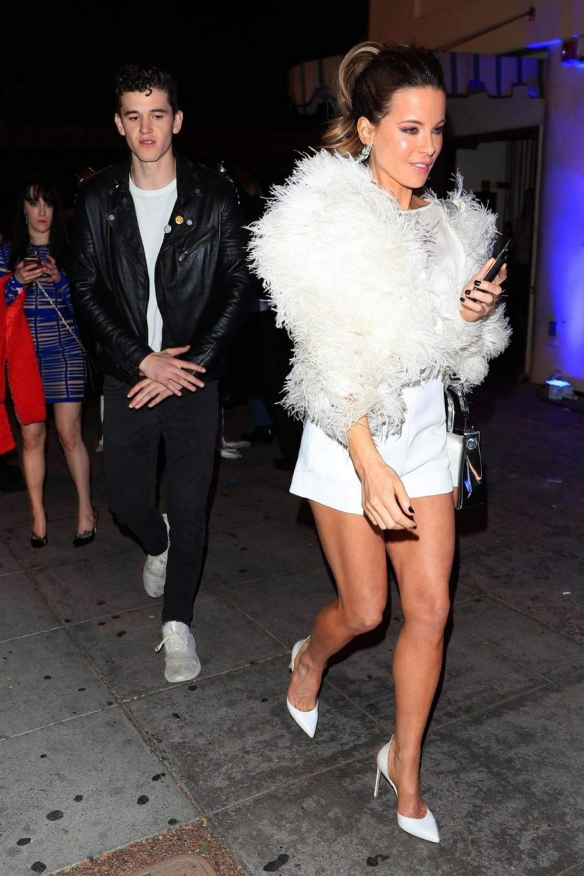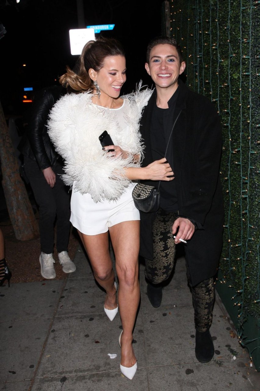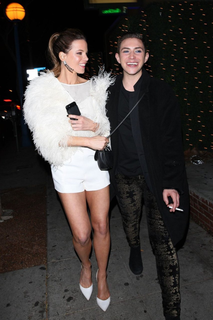 L’attrice dalle gambe lunghe Kate Beckinsale (45) sorride mentre lascia una festa di Capodanno tenutasi al ristorante Delilah con Stephen Simbari a West Hollywood, 01/01/2019.