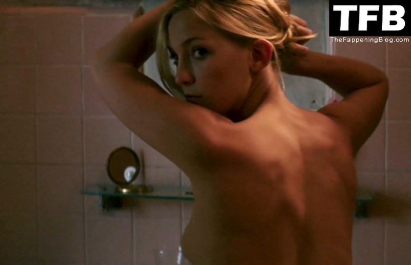 Kate Hudson is giving us a nice clear view of her bare butt in close-up as a guy spanks her in bed, and then showing more of her right butt cheek from the side as the view shows Kate lying naked on her stomach on the bed while continuing to receive a spanking.
