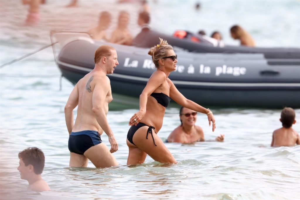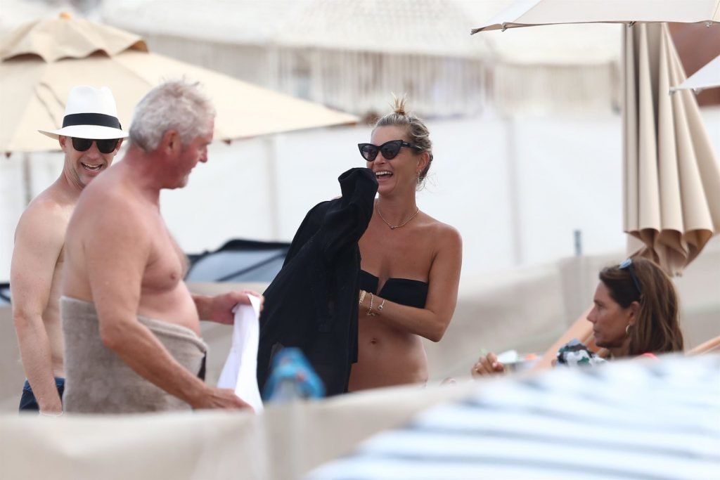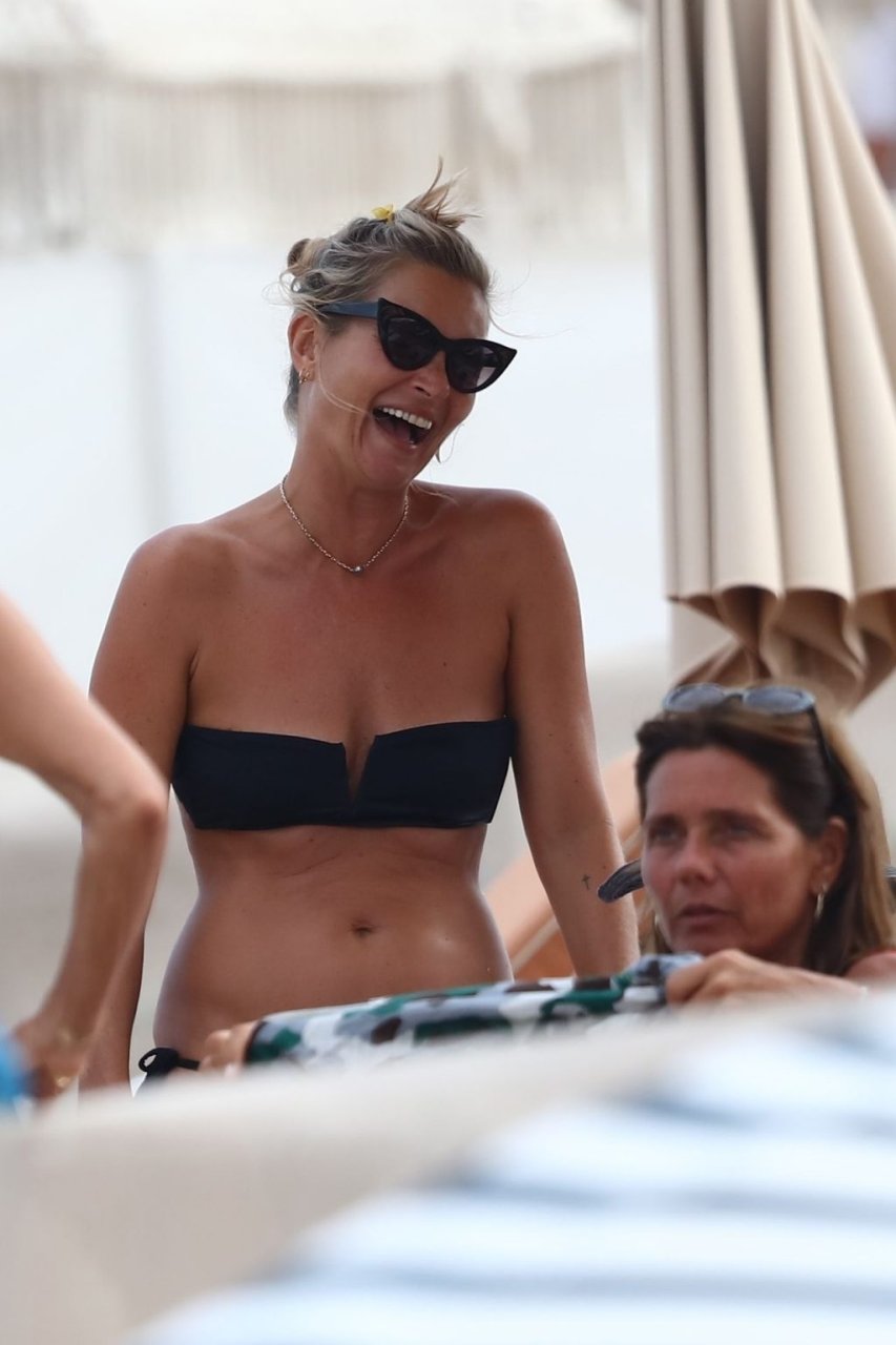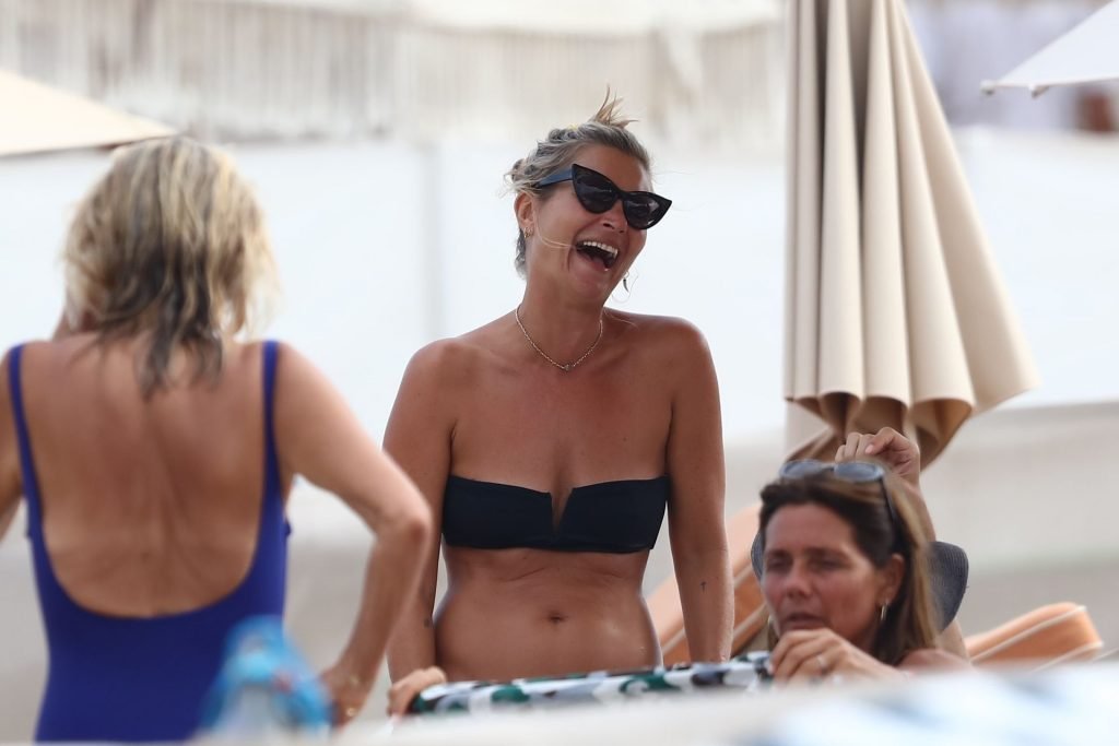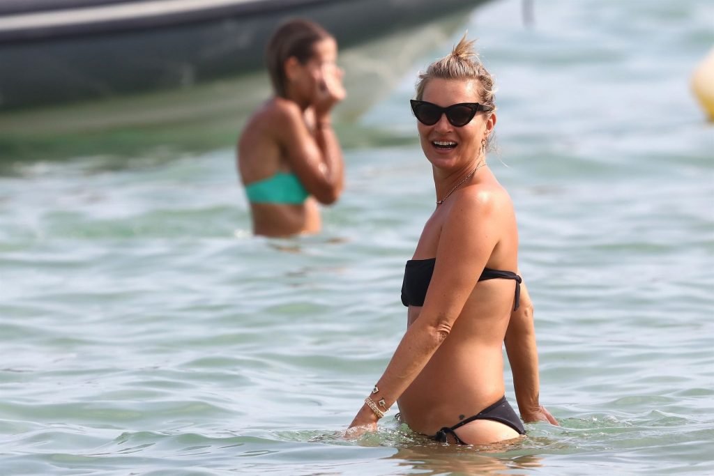 La modella britannica Kate Moss (45) si rinfresca in spiaggia e trascorre un po’ di tempo a Saint-Tropez con gli amici mentre l’estate volge al termine, 22/08/2019. Kate era splendida in un bikini nero a due pezzi.