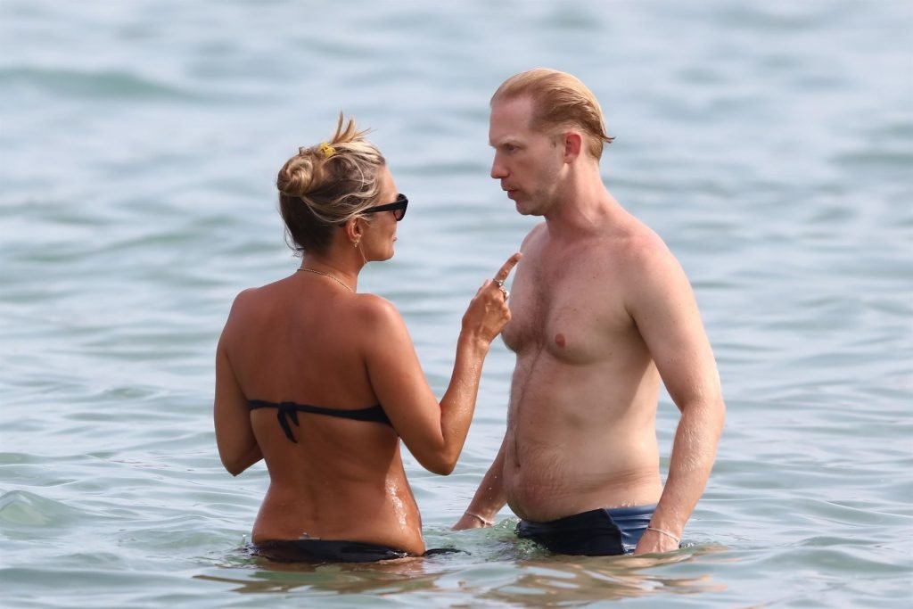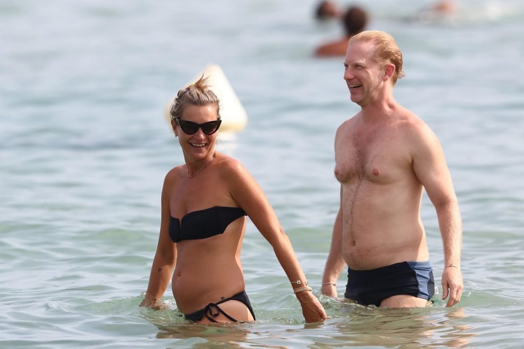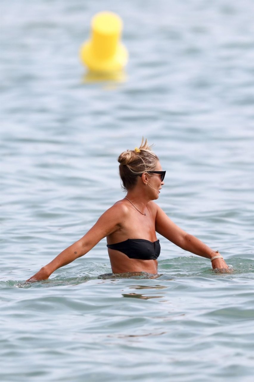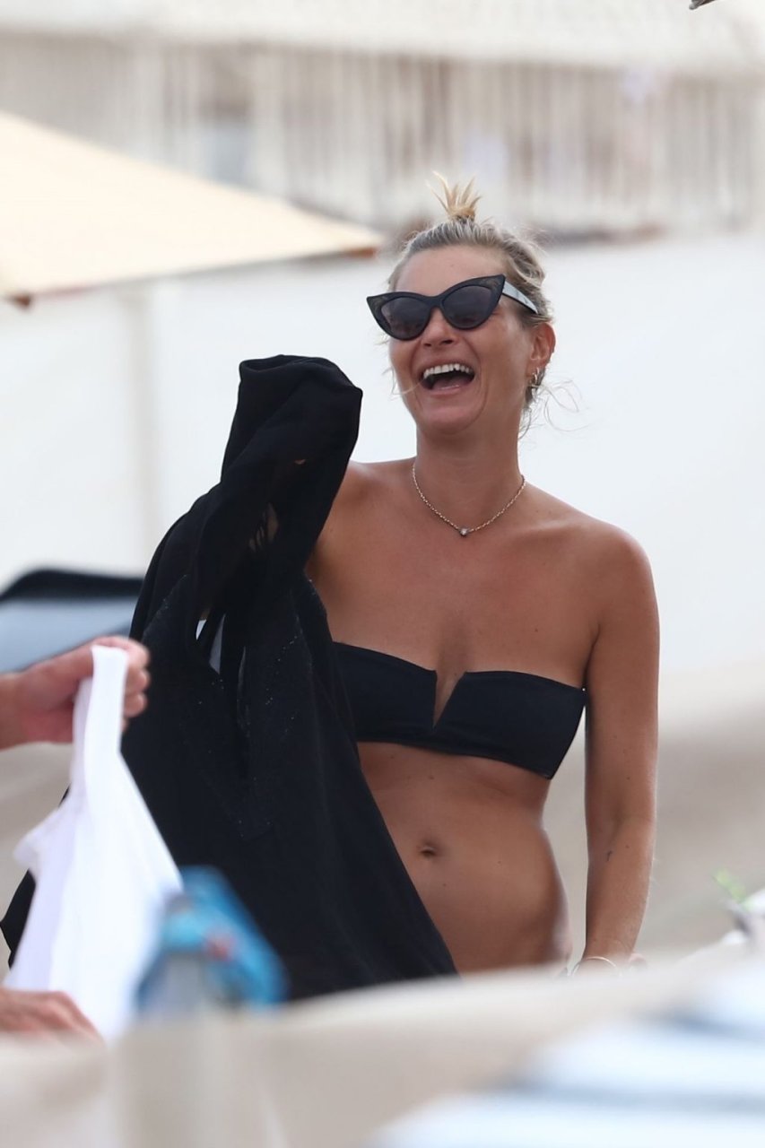La modella britannica Kate Moss (45) si rinfresca in spiaggia e trascorre un po’ di tempo a Saint-Tropez con gli amici mentre l’estate volge al termine, 22/08/2019. Kate era splendida in un bikini nero a due pezzi.