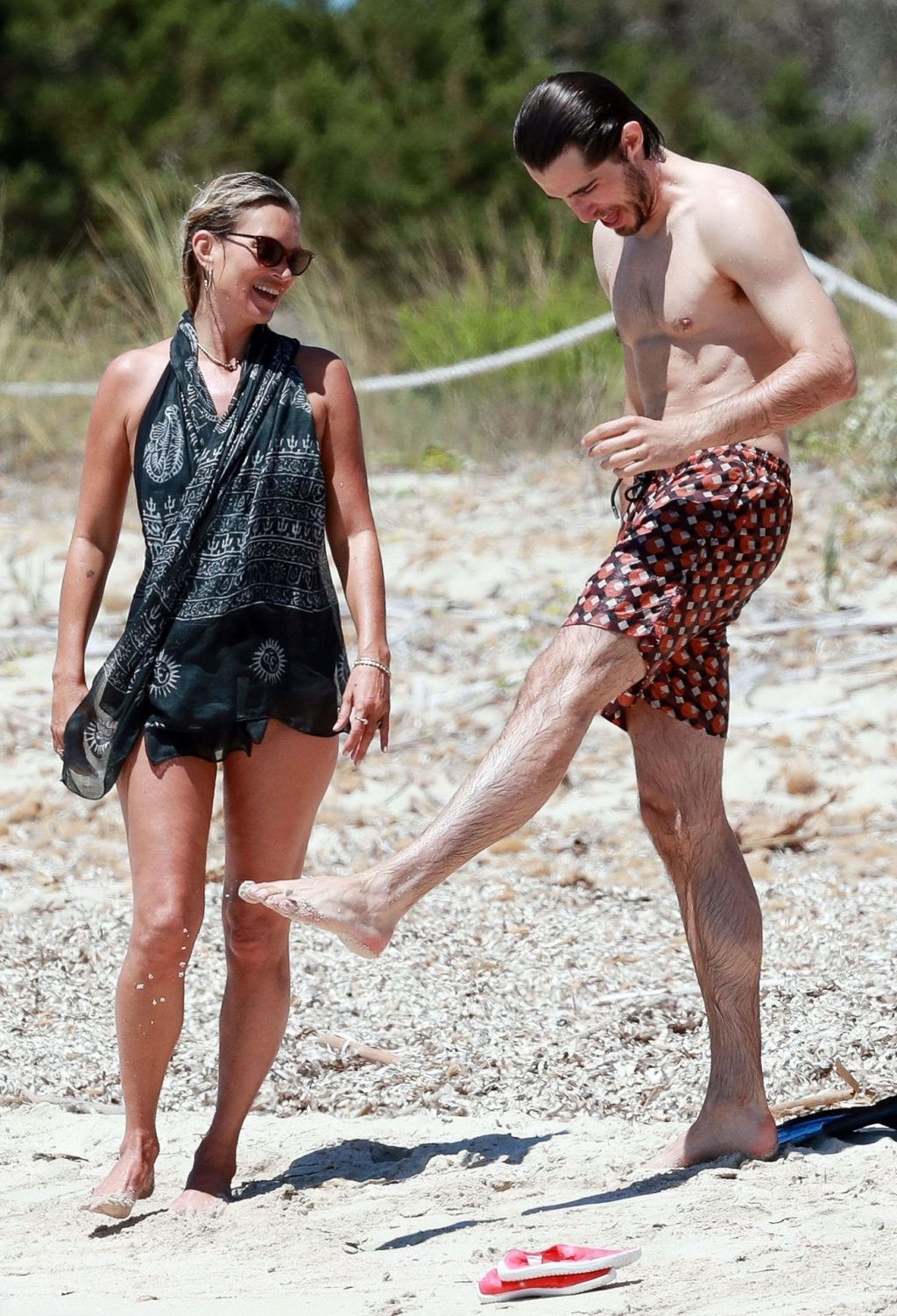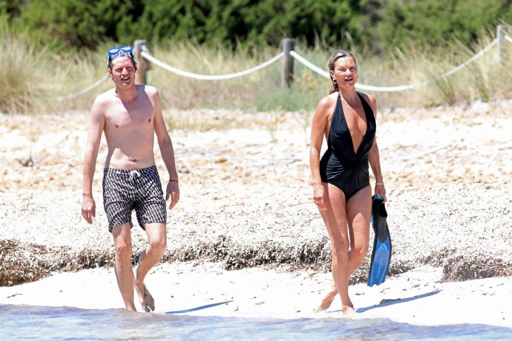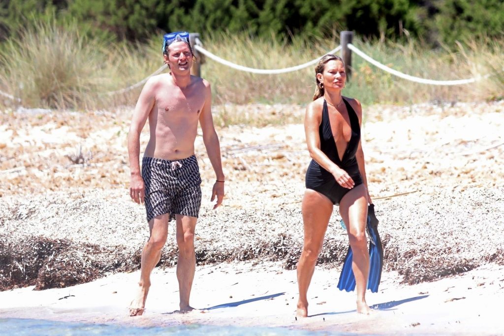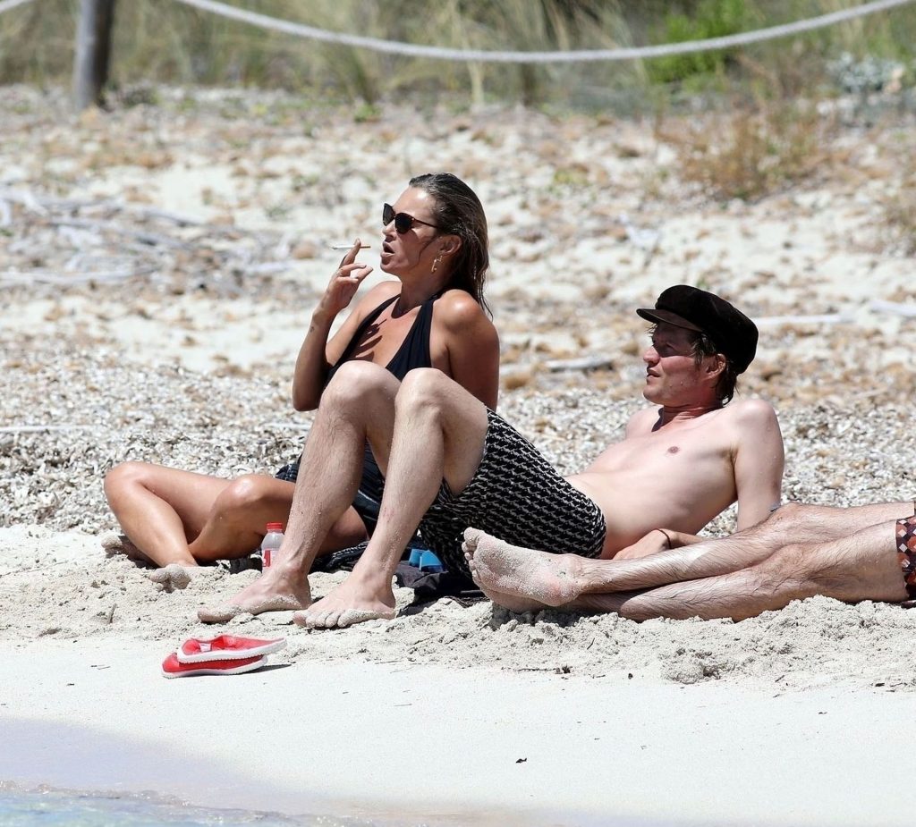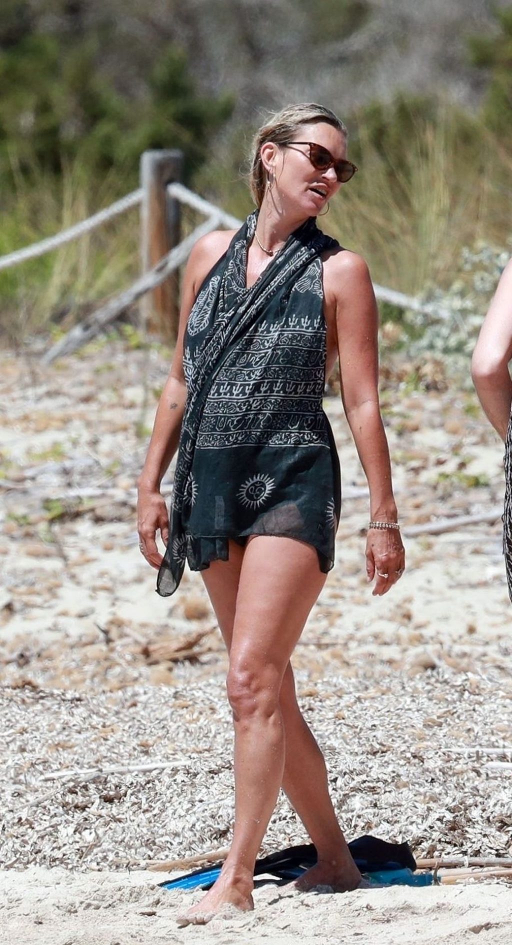 La modella britannica Kate Moss appare assolutamente spettacolare mentre mostra il suo corpo bollente in bikini con un costume nero allacciato al collo durante la sua vacanza spagnola a Formentera con il suo partner Nikolai von Bismarck e la figlia Lila Grace, 08/09/2020.