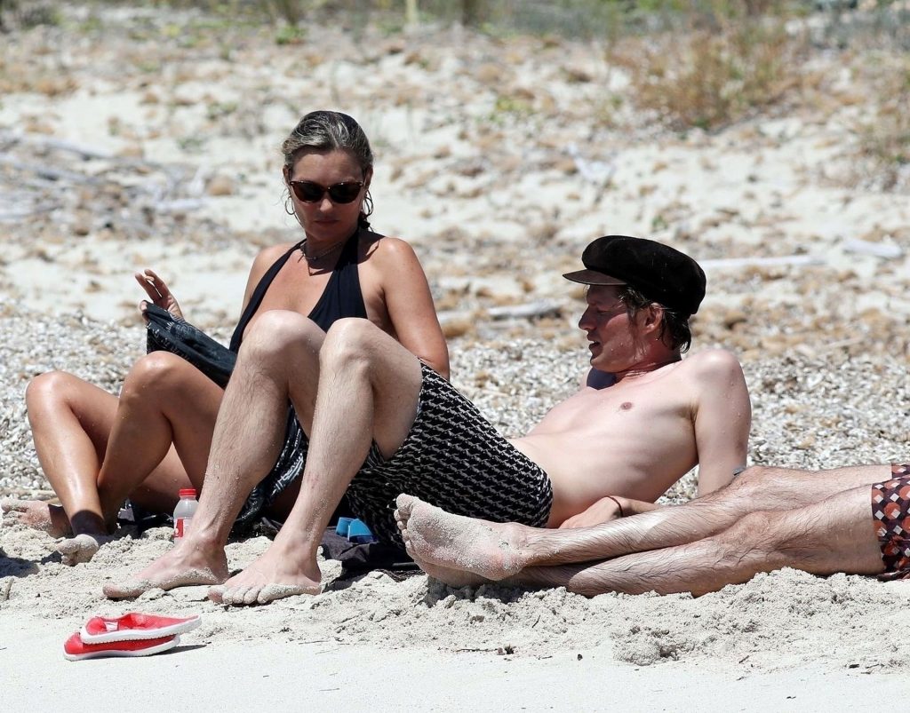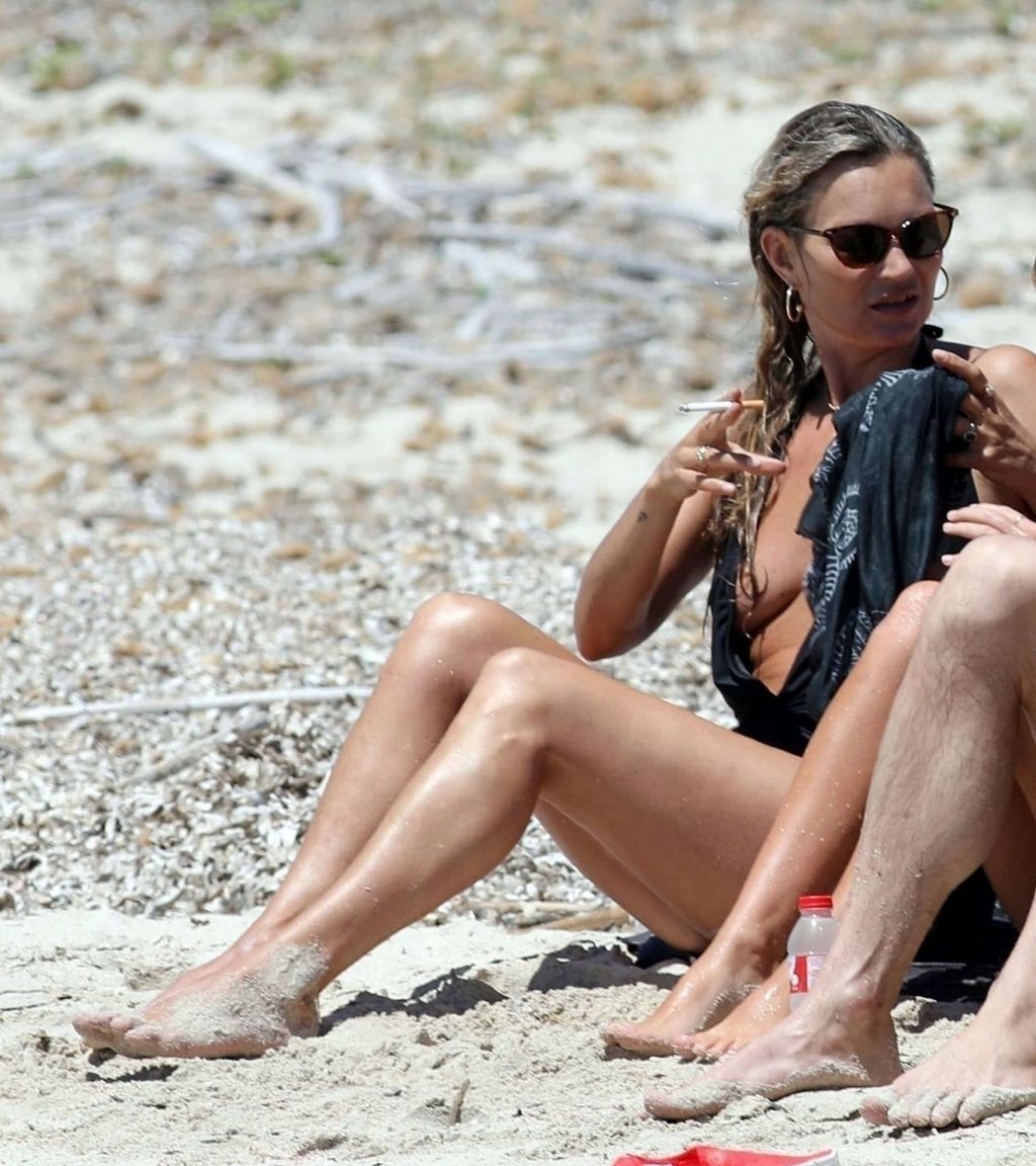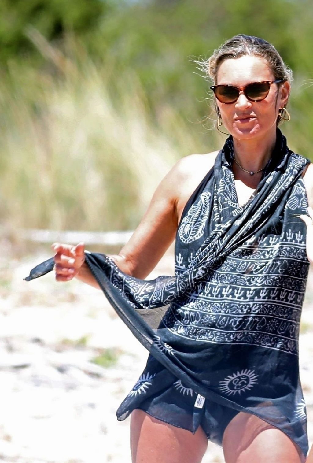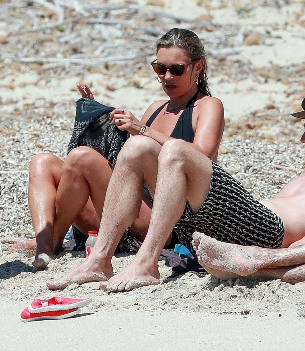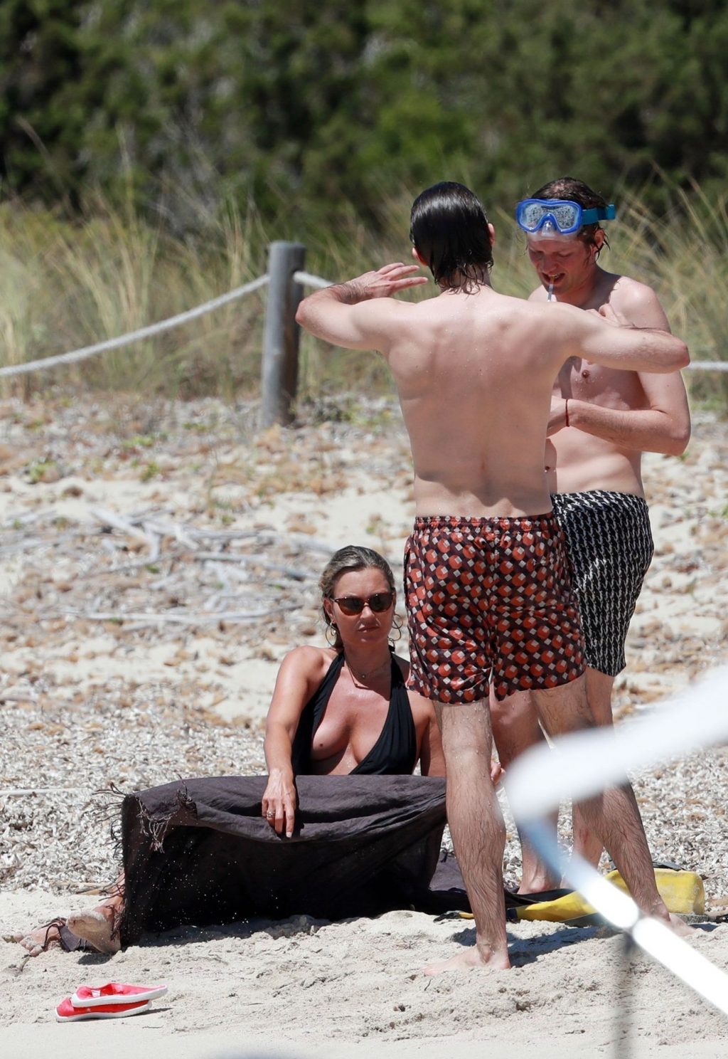 La modella britannica Kate Moss appare assolutamente spettacolare mentre mostra il suo corpo bollente in bikini con un costume nero allacciato al collo durante la sua vacanza spagnola a Formentera con il suo partner Nikolai von Bismarck e la figlia Lila Grace, 08/09/2020.
