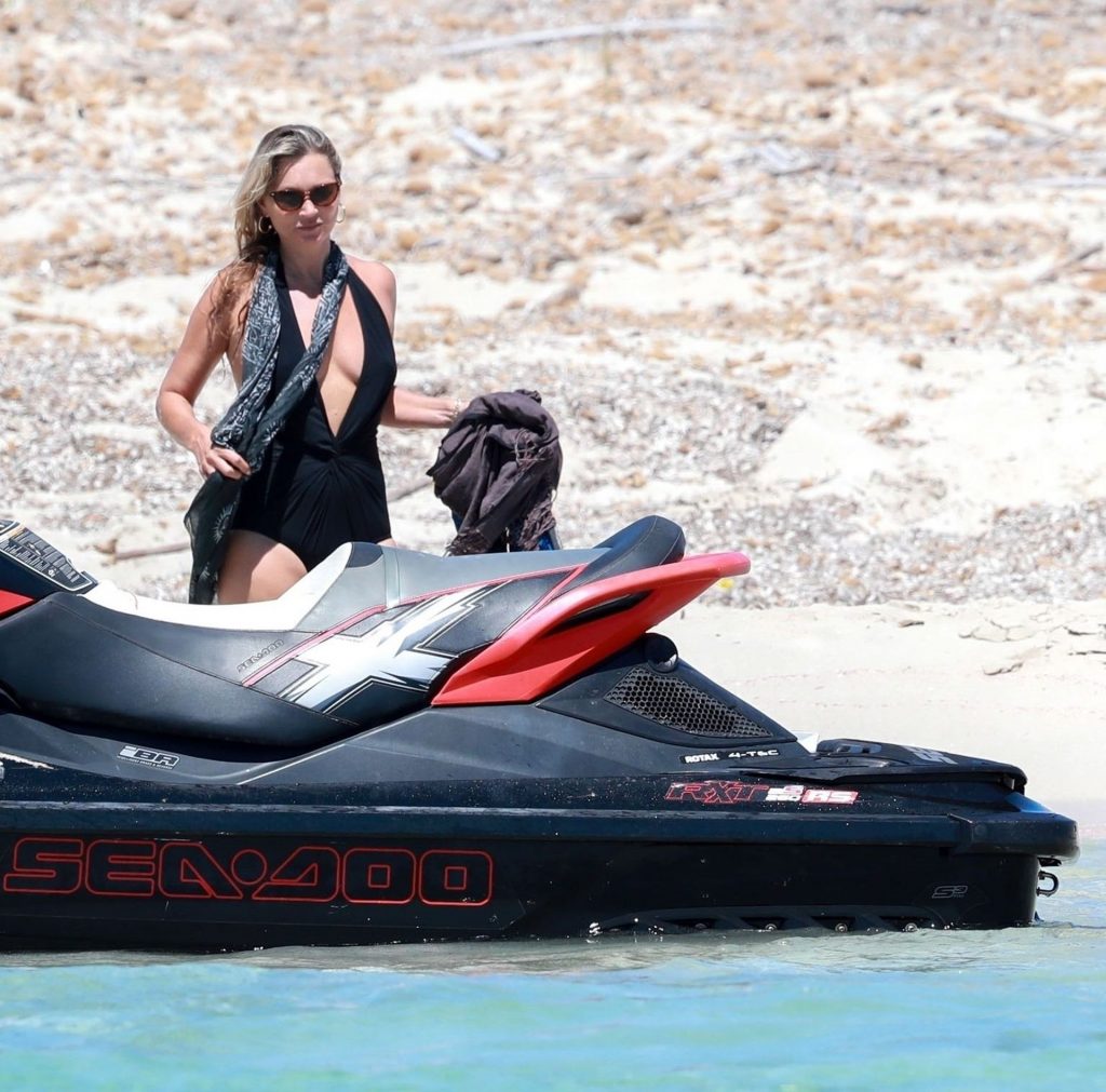 La beniamina del mondo della moda ha trascorso una giornata divertente in spiaggia, sembrava di ottimo umore con quasi 30 gradi di temperatura e si è lanciata in un’emozionante corsa in moto d’acqua, rilassandosi poi sulla spiaggia durante la loro calda vacanza spagnola.