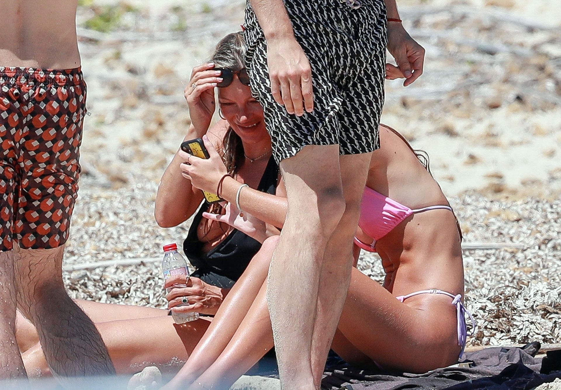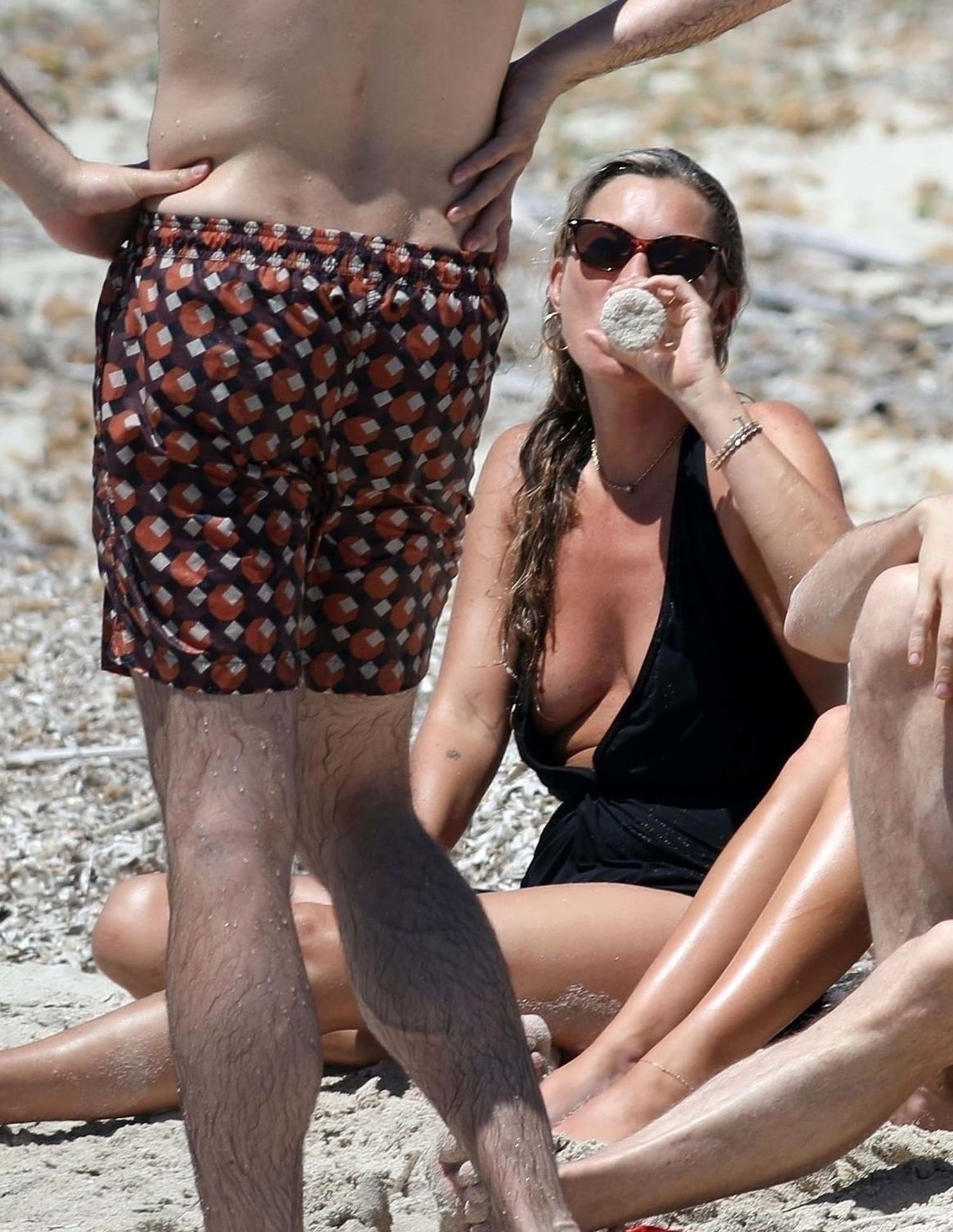 La modella britannica Kate Moss appare assolutamente spettacolare mentre mostra il suo corpo bollente in bikini con un costume nero allacciato al collo durante la sua vacanza spagnola a Formentera con il suo partner Nikolai von Bismarck e la figlia Lila Grace, 08/09/2020.