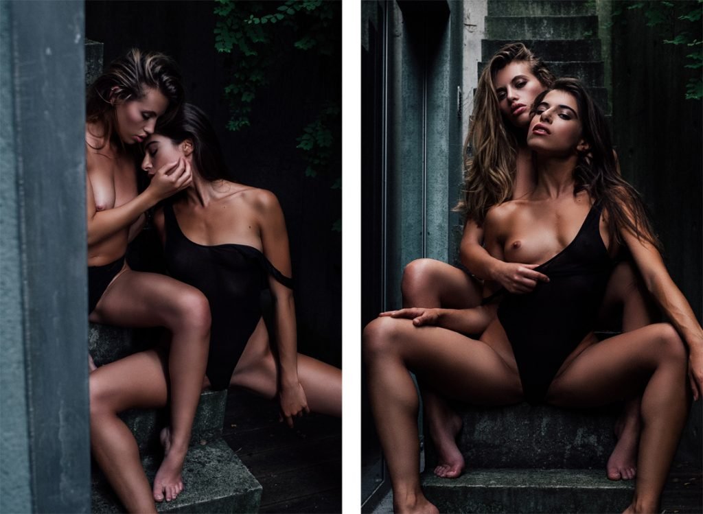 Due modelle internazionali Katia Martin (24) e Chiara Bianchino (24) hanno posato insieme per un servizio fotografico di Julien LRVR a Bruxelles, Belgio (giugno 2018). Queste giovani bellezze hanno mostrato il loro amore lesbico in una giornata calda in un luogo segreto.