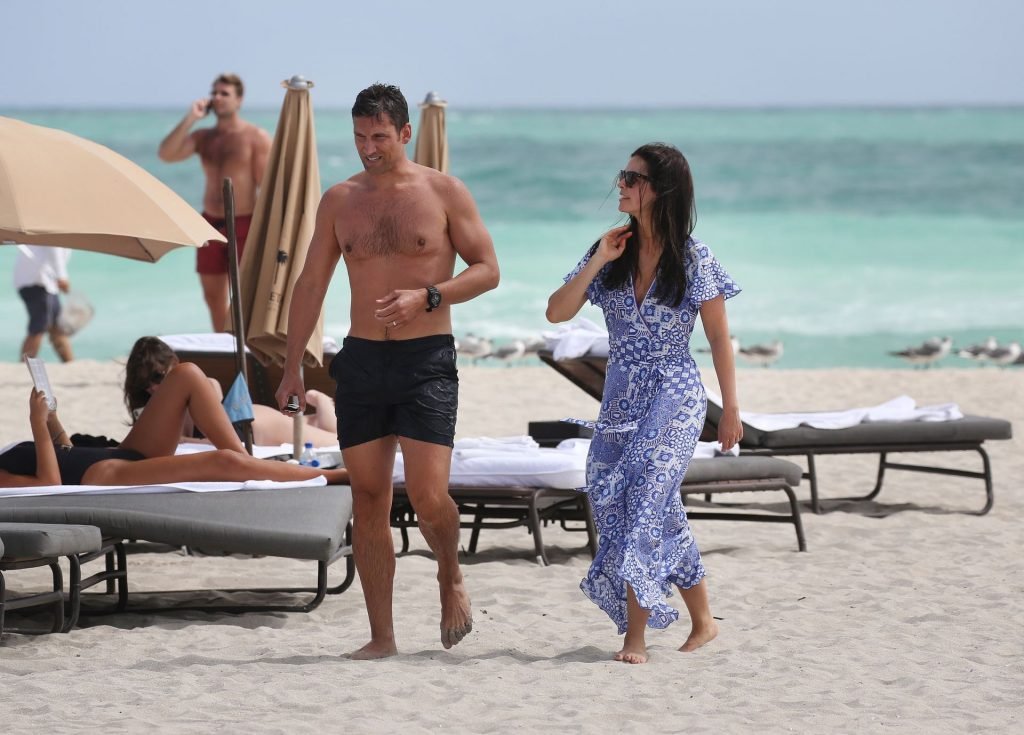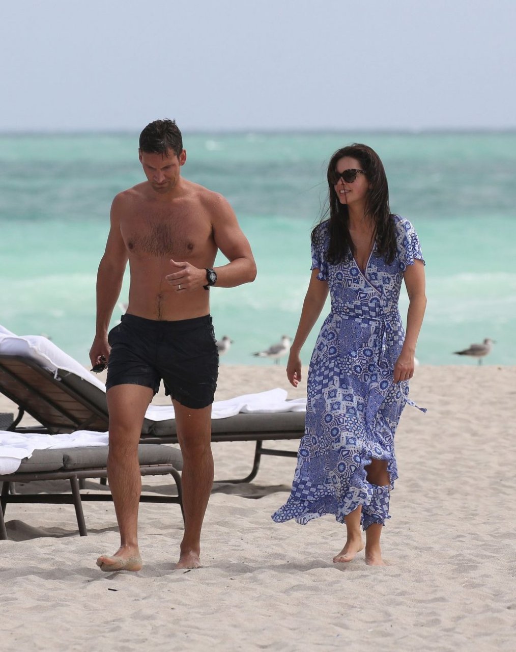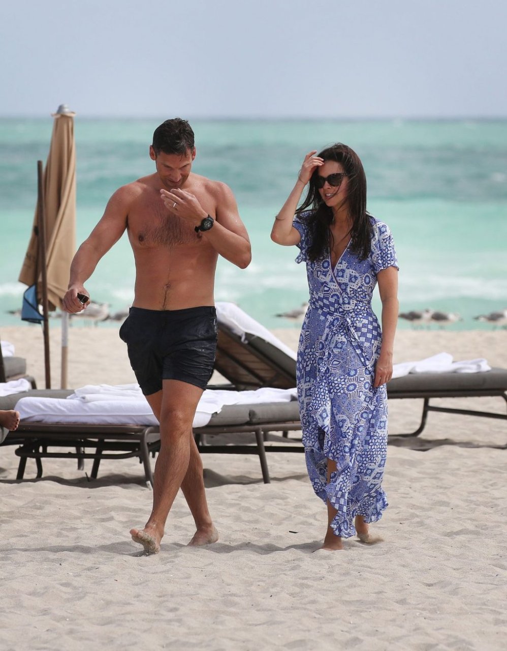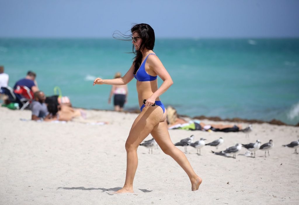 La famosa chef Katie Lee indossa un bikini blu sulla spiaggia con il fidanzato Ryan Biegel a Miami durante il South Beach Wine & Food Festival, 23/02/2019.