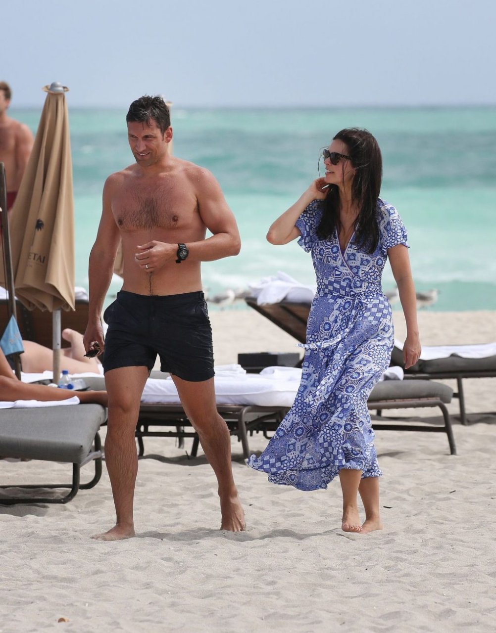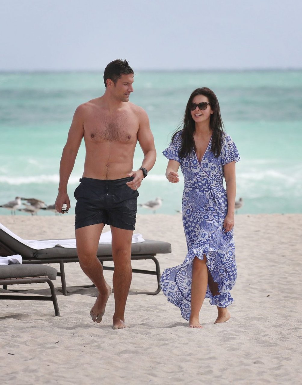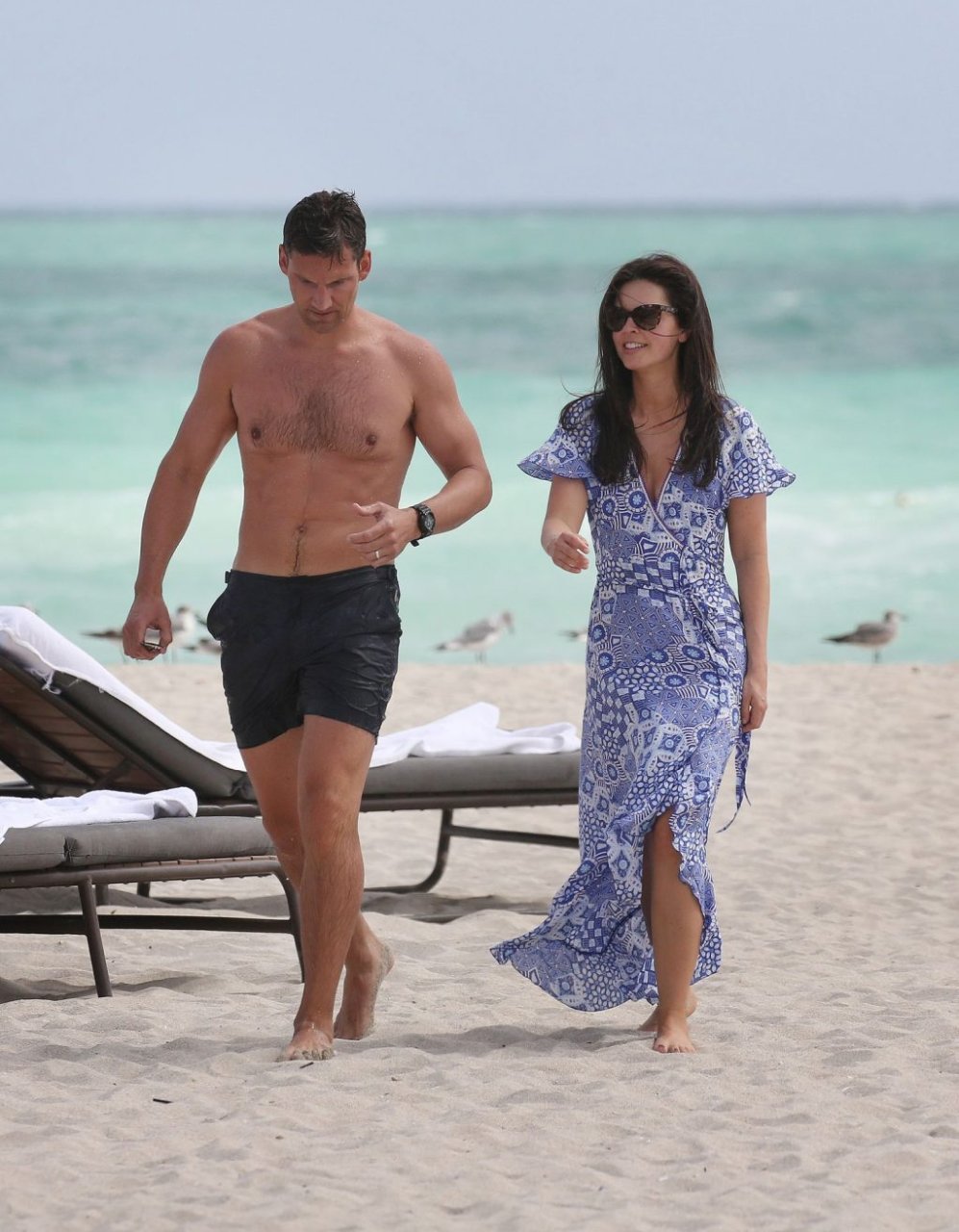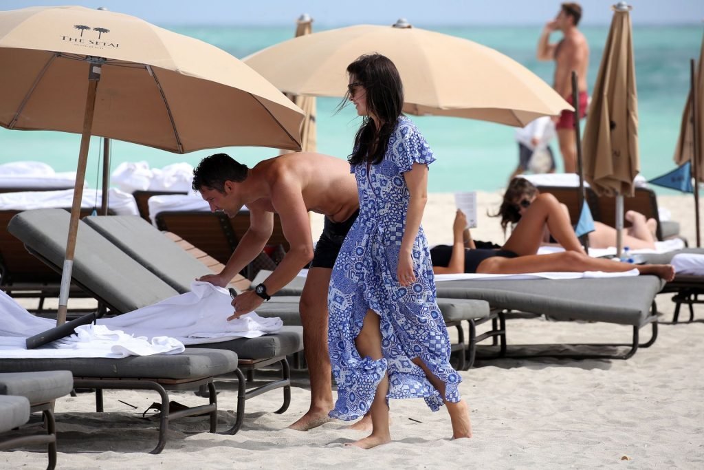 La famosa chef Katie Lee indossa un bikini blu sulla spiaggia con il fidanzato Ryan Biegel a Miami durante il South Beach Wine & Food Festival, 23/02/2019.
