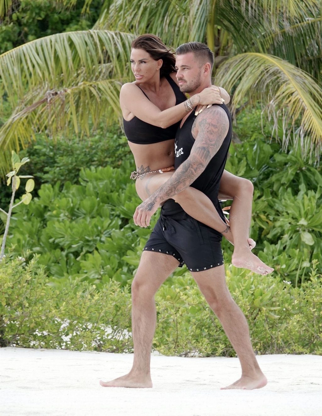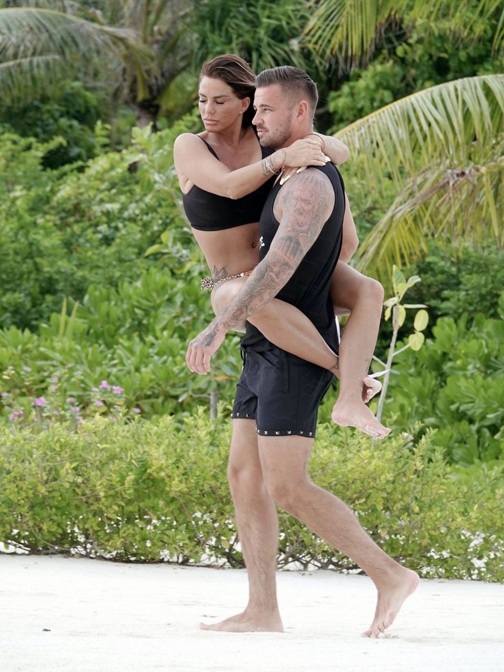 Condividendo alcuni teneri momenti d’amore durante la loro idilliaca pausa al sole in climi più caldi, la sexy modella britannica Katie Price, alias Jordan, e il fidanzato Carl Woods appaiono innamorati durante la loro romantica fuga alle Maldive, 24/10/2020.
