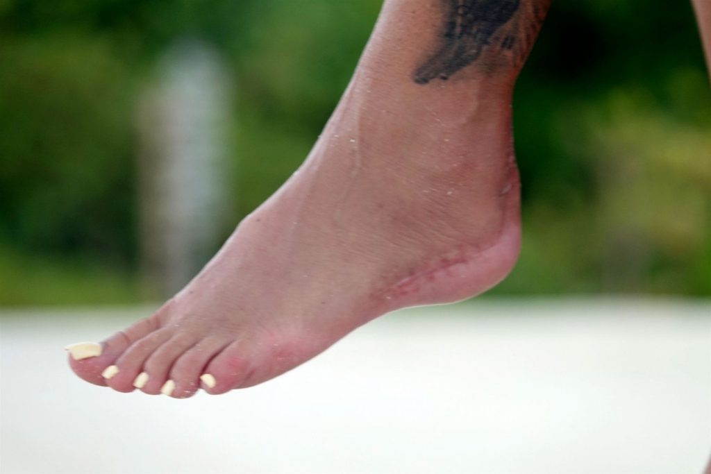 Katie mostra ancora gli effetti delle sue ferite con alcune cicatrici sul piede dopo un terribile incidente all’inizio dell’anno, in cui si è rotta entrambi i piedi, e sembra felice con il suo compagno, godendosi un po’ di riposo.