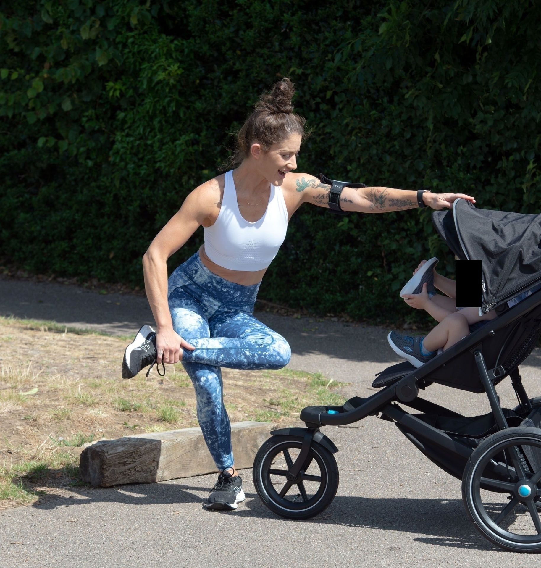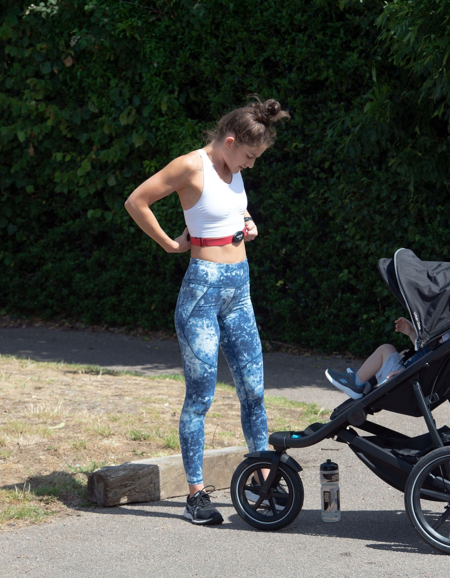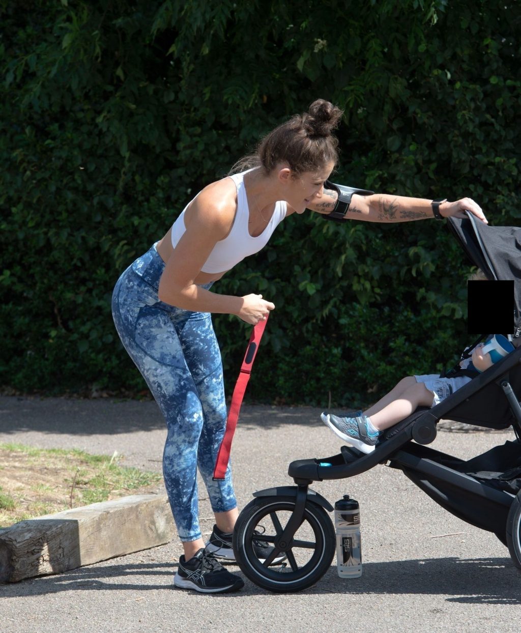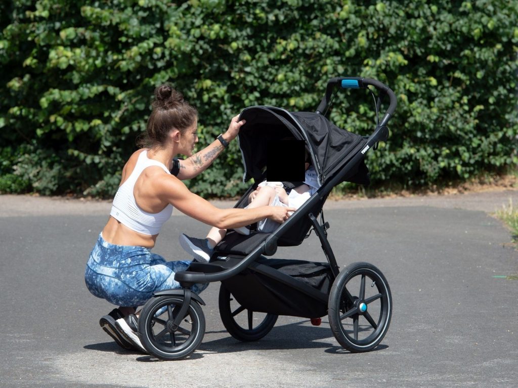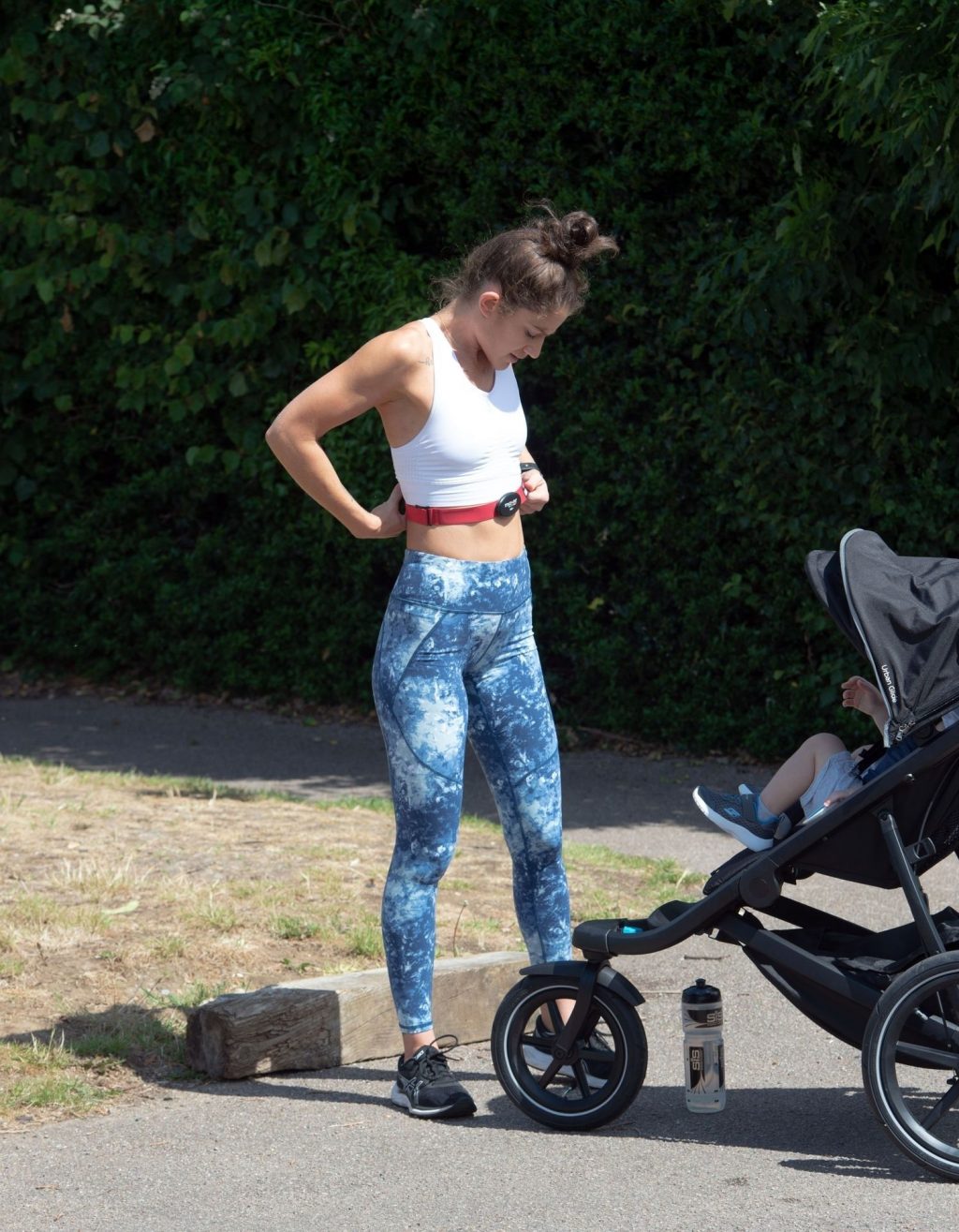 “X-Factor” star Katie Waissel mostra il suo fisico muscoloso mentre porta a spasso il figlio Hudson nel Nord di Londra, 16/06/2020. La mamma single mostra i suoi addominali scolpiti con un paio di pantaloni da jogging blu e una maglietta bianca mentre viene vista vicino a casa sua.