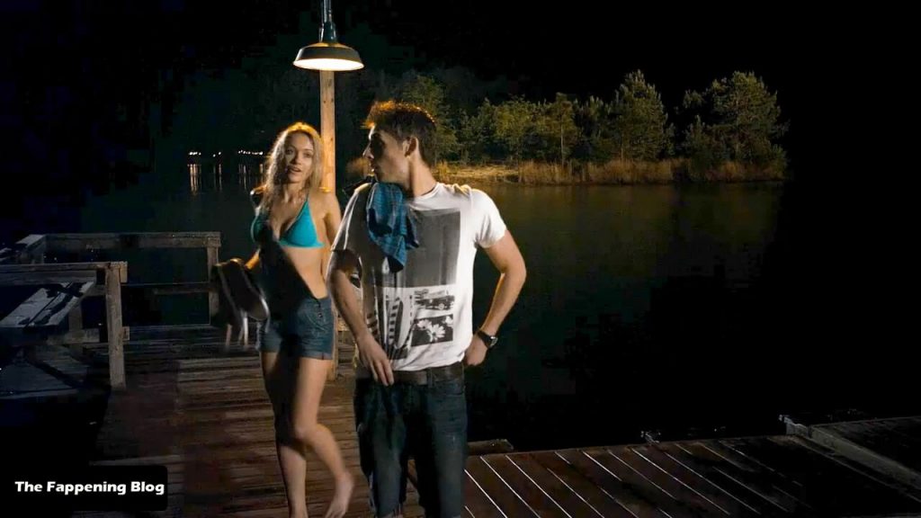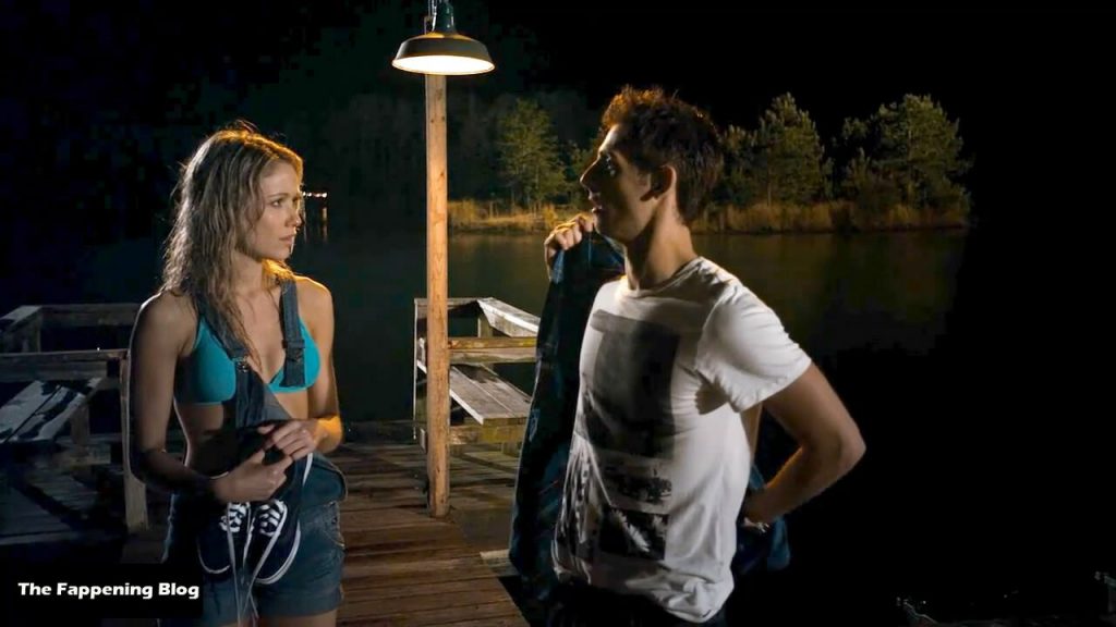 Katrina Bowden indossa un bikini blu mentre è seduta su un molo con un ragazzo di notte. Lui poi si gira mentre lei si spoglia e vediamo la sua schiena nuda mentre si tuffa nell’acqua per fare il bagno nuda. Successivamente vediamo di nuovo Katrina con il suo top bikini blu mentre risale il molo con il ragazzo.