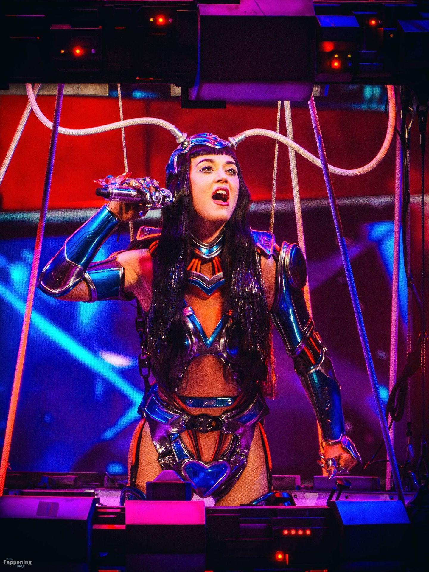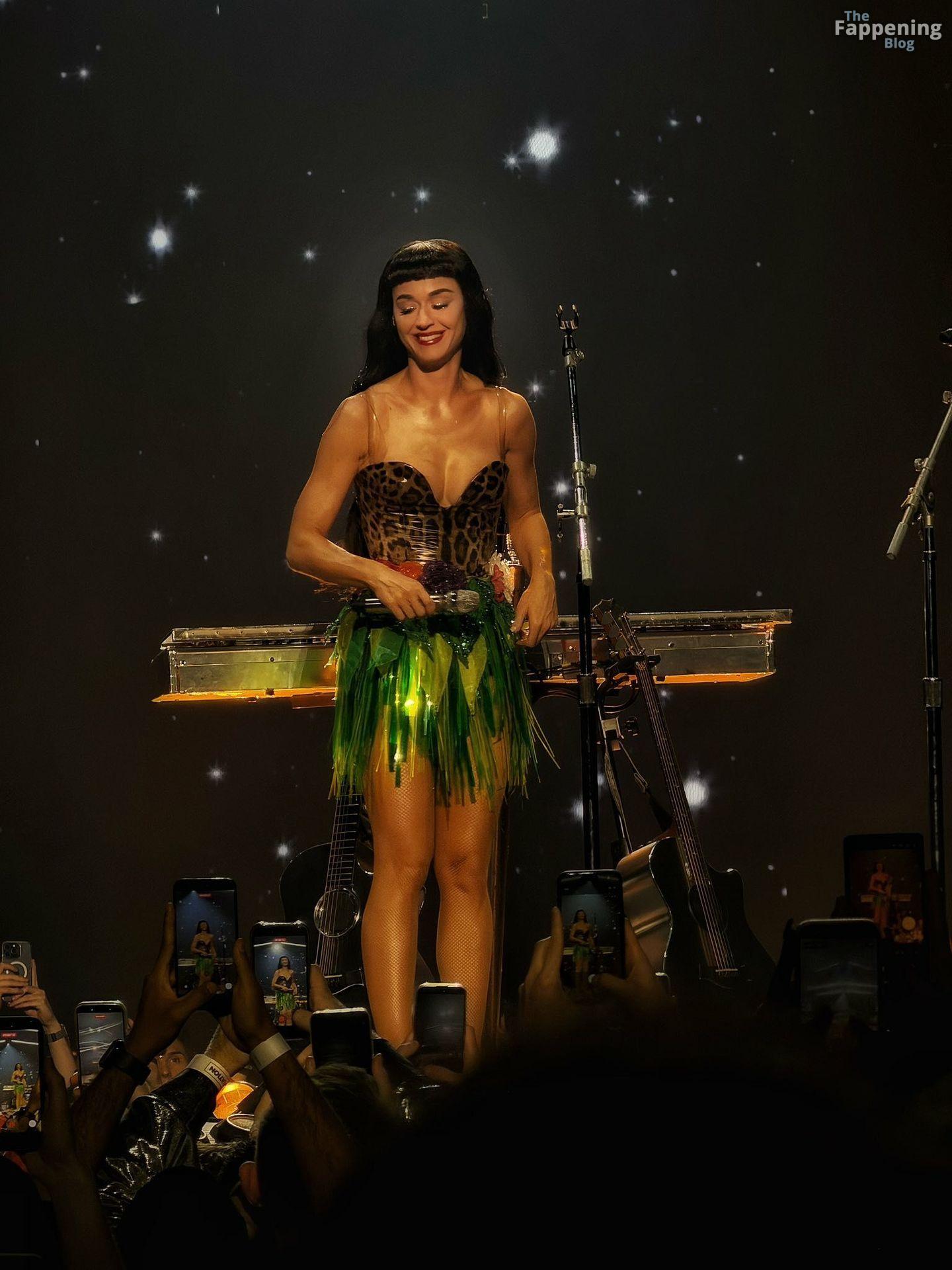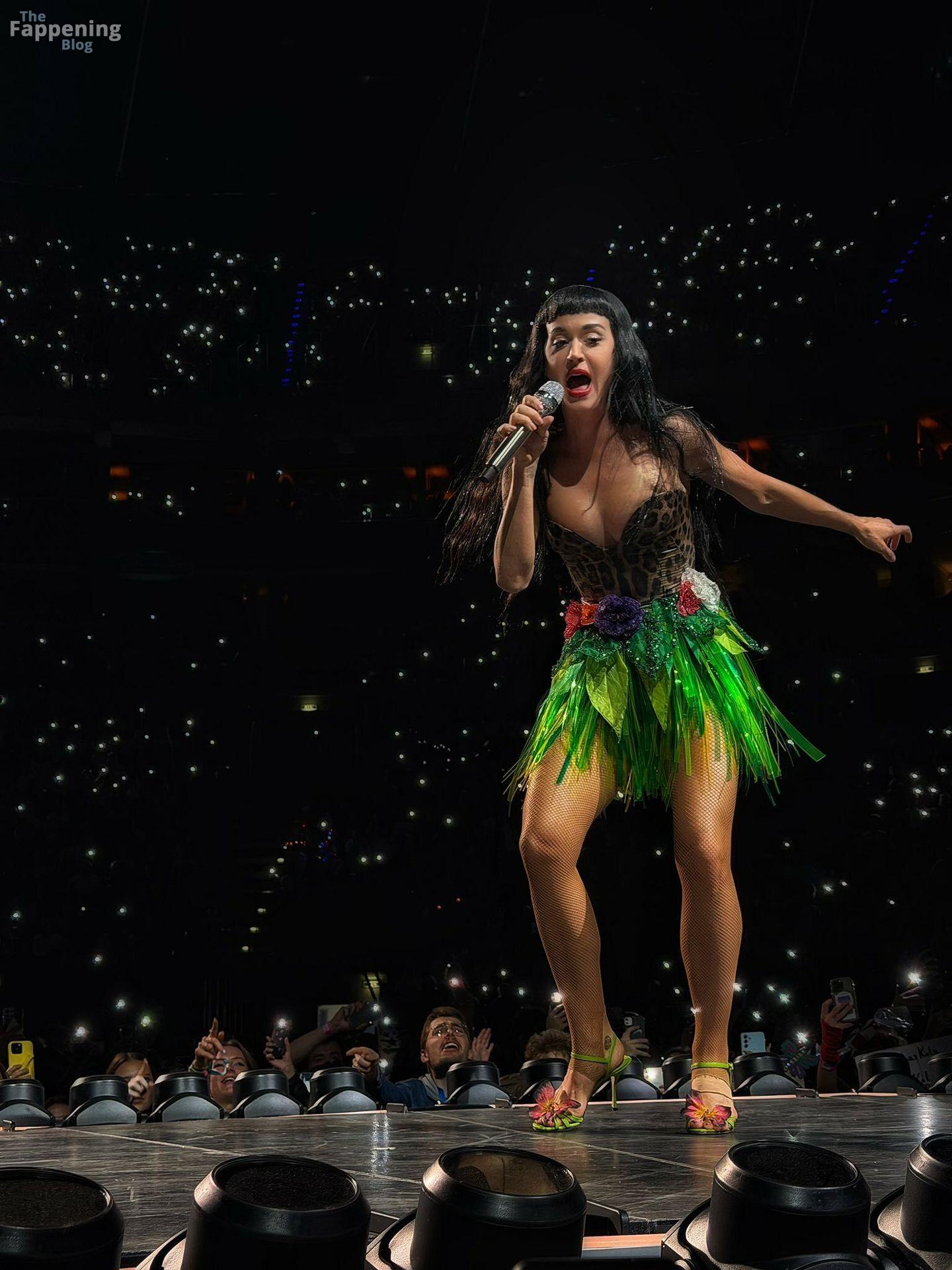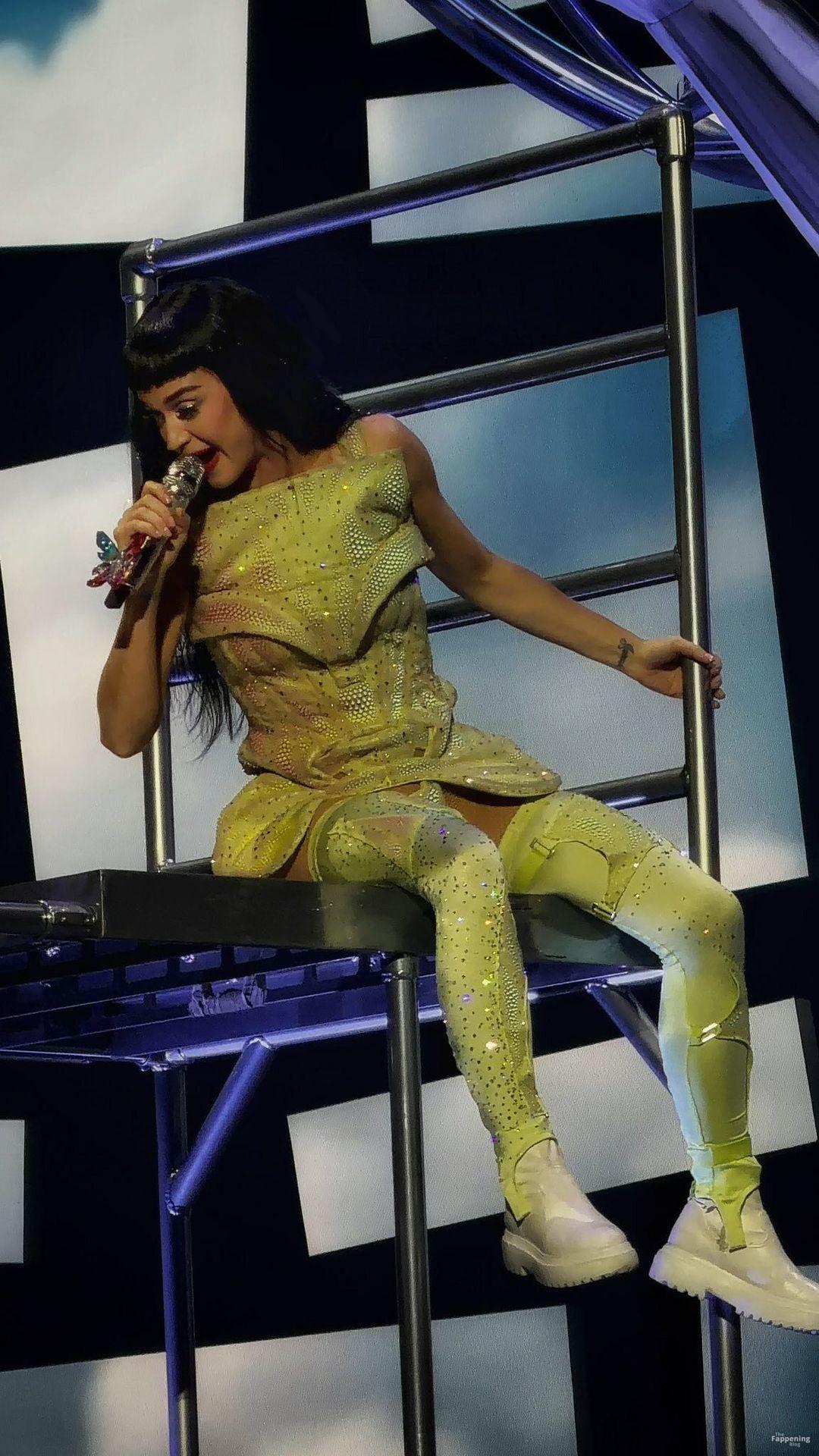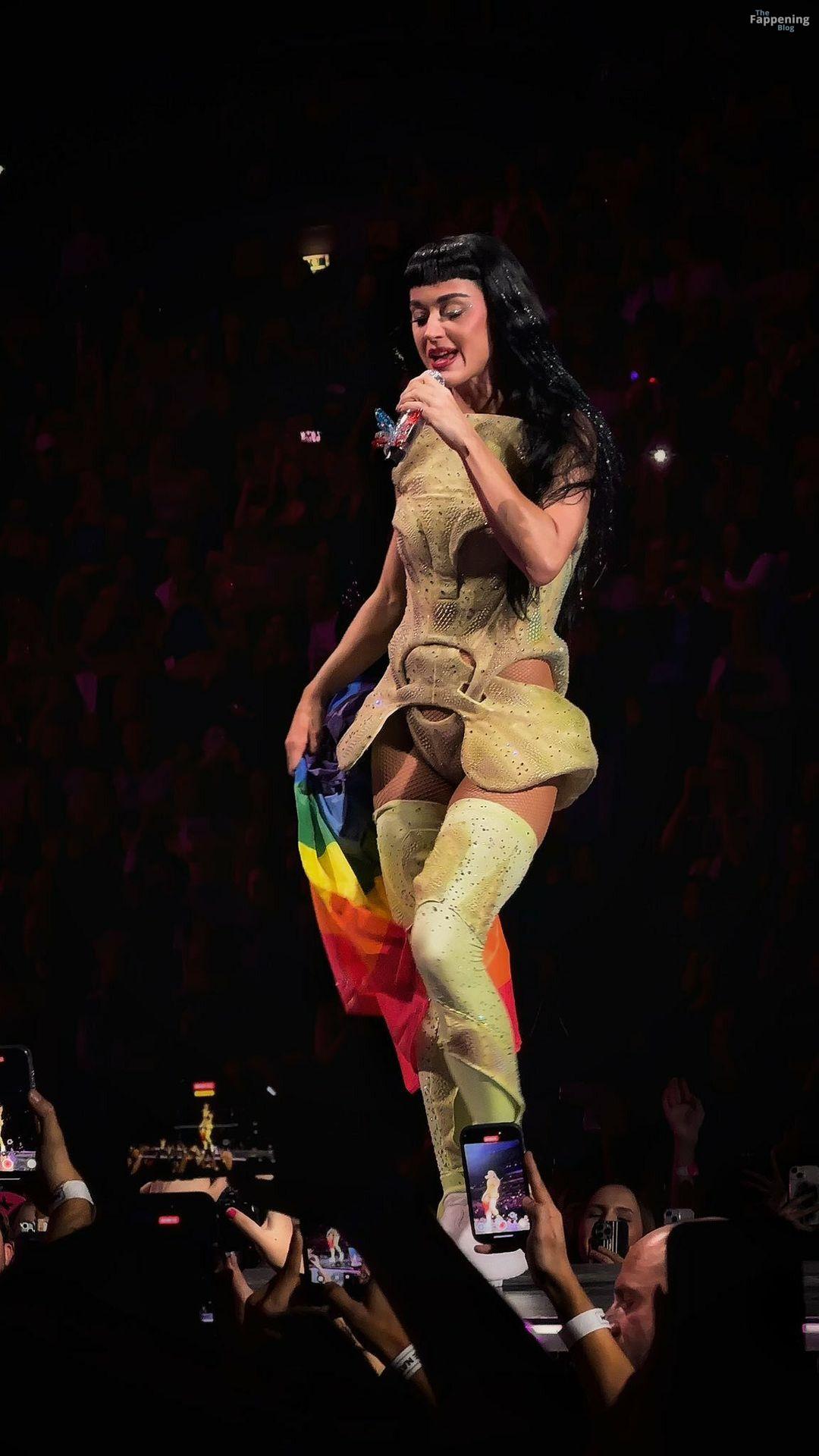 Katy Perry si è esibita sul palco a Praga, sfoggiando outfit rock che mettevano in mostra un enorme décolleté. Ha calcato il palco della O2 Arena durante il suo tour 2025, posando nuda e seminuda in un body di pizzo rosso, per poi passare a un mini abito scintillante con stivali sopra il ginocchio.