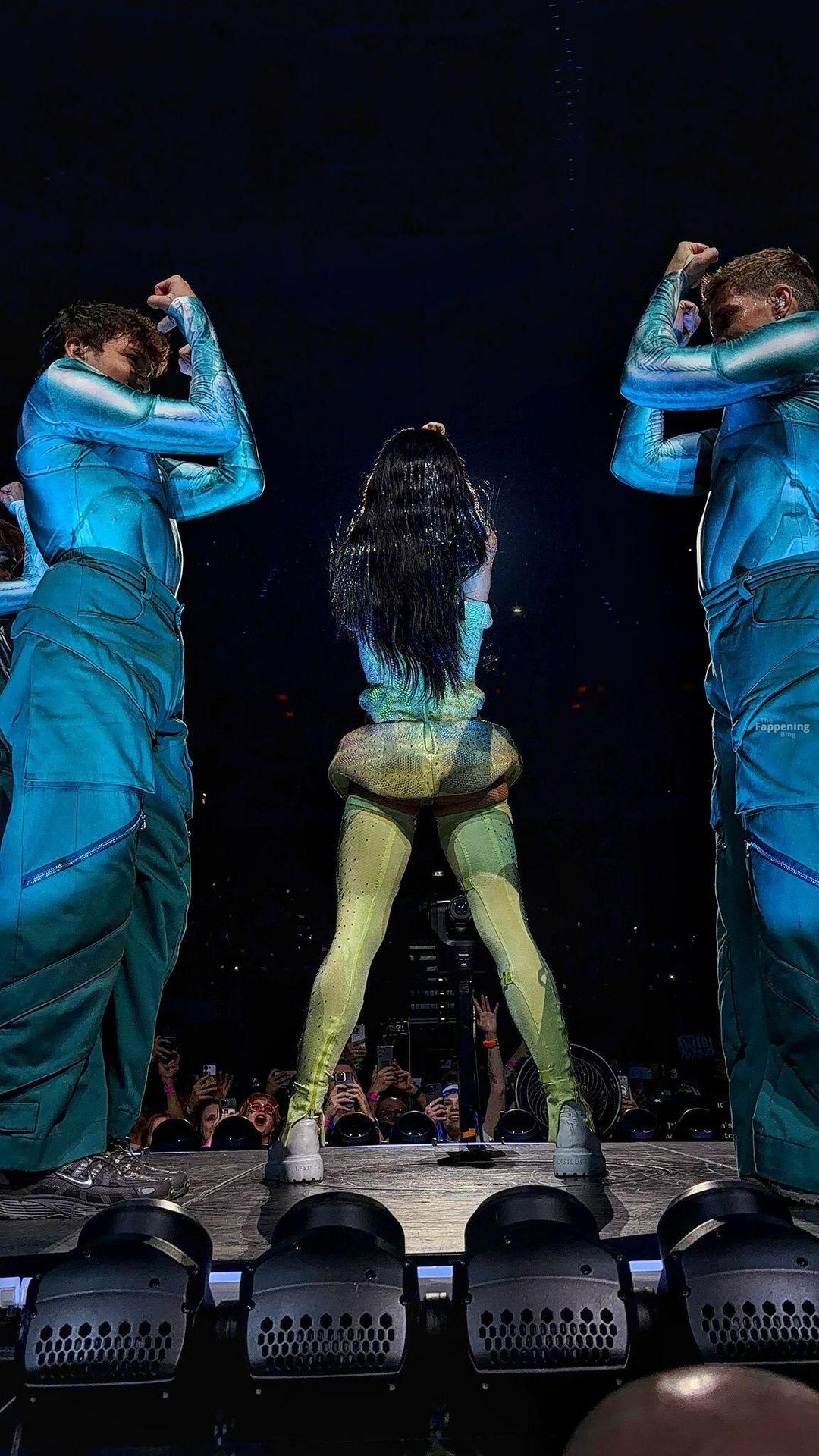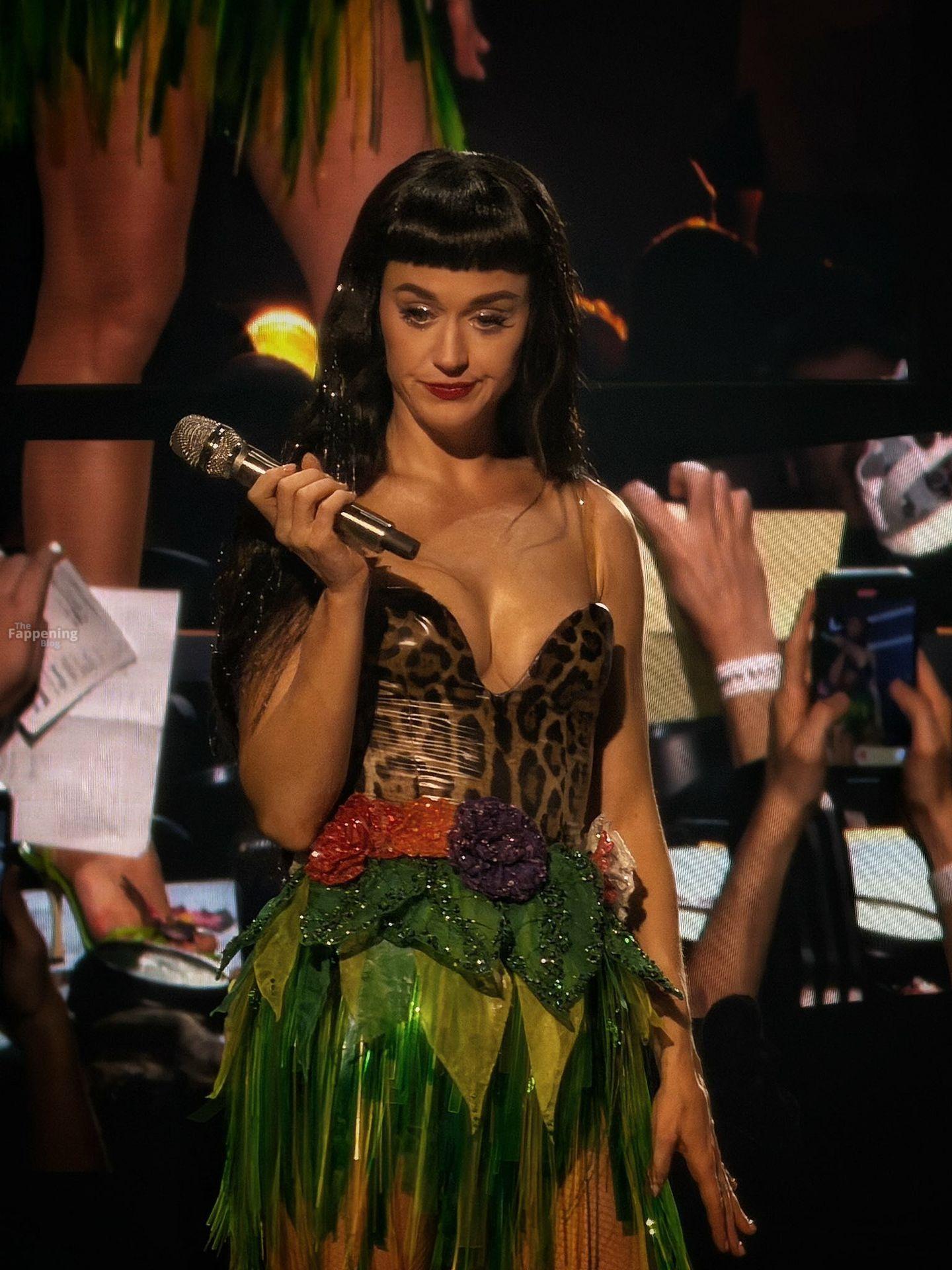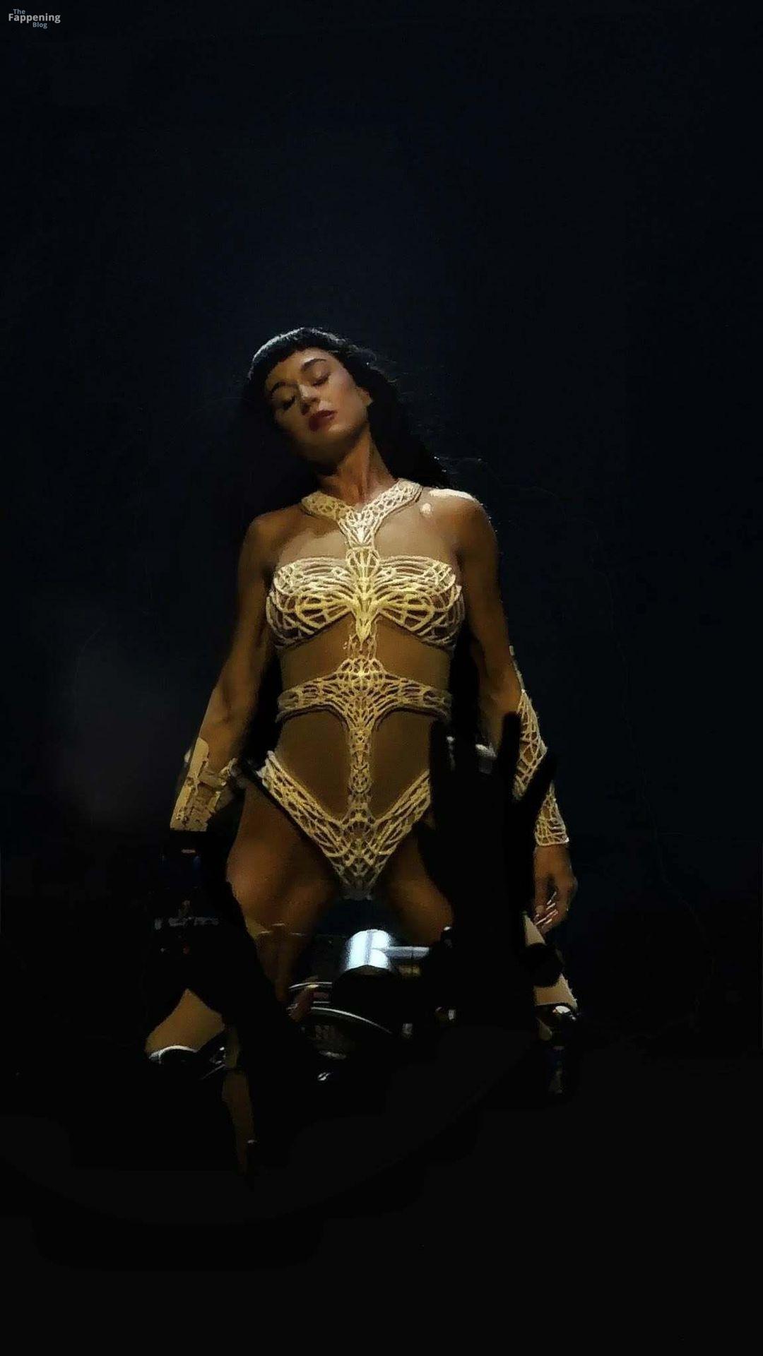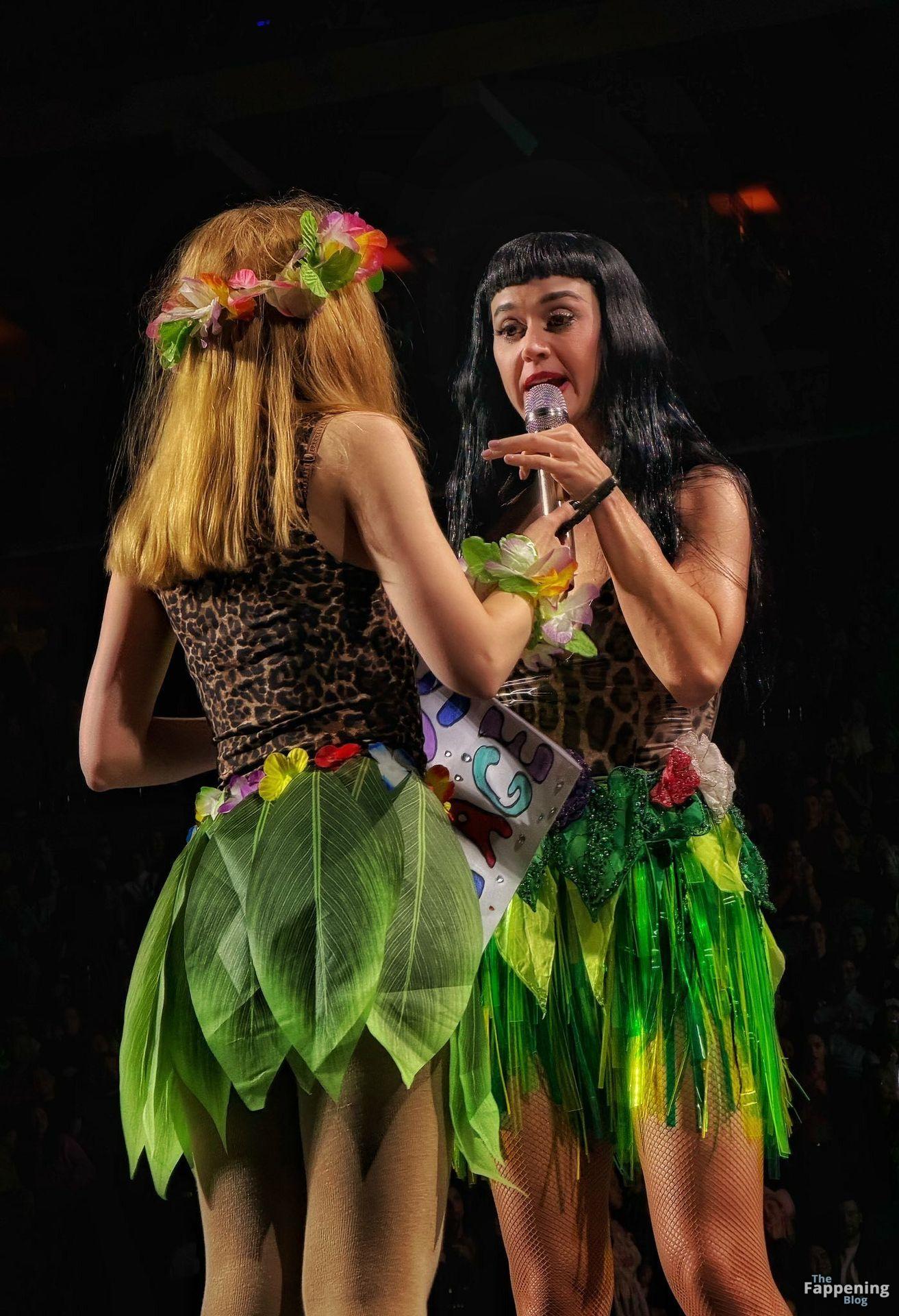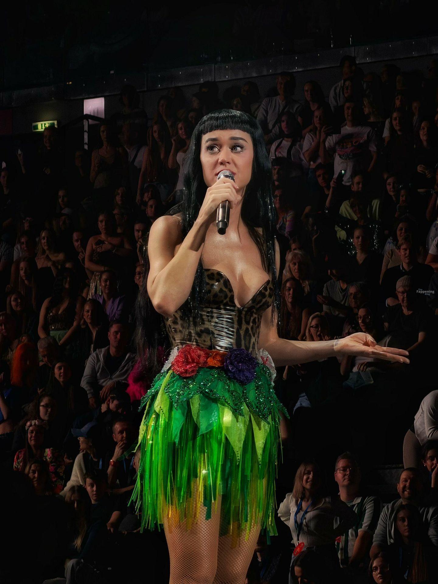 Katy Perry si è esibita sul palco a Praga, sfoggiando outfit rock che mettevano in mostra un enorme décolleté. Ha calcato il palco della O2 Arena durante il suo tour 2025, posando nuda e seminuda in un body di pizzo rosso, per poi passare a un mini abito scintillante con stivali sopra il ginocchio.