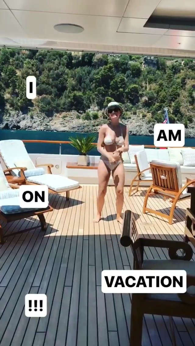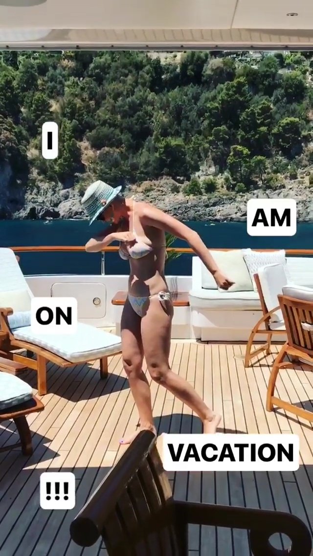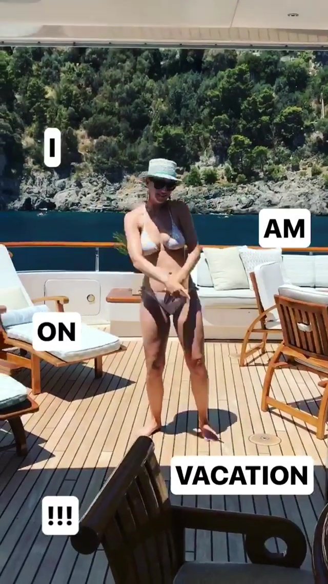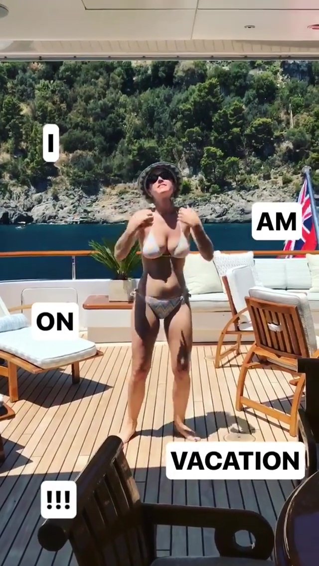 La cantante americana di 32 anni Katy Perry mostra le sue abilità di danza in bikini durante una vacanza in Italia – Instagram, 07/11/2017.