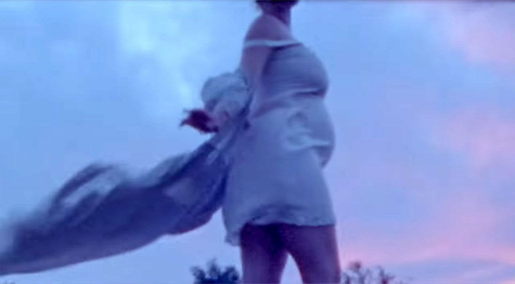 Nel video di quasi tre minuti, la cantante incinta indossa un romantico abito bianco di lino prima di spogliarsi completamente, offrendo ai fan una chiara vista del suo pancione nudo e in crescita.