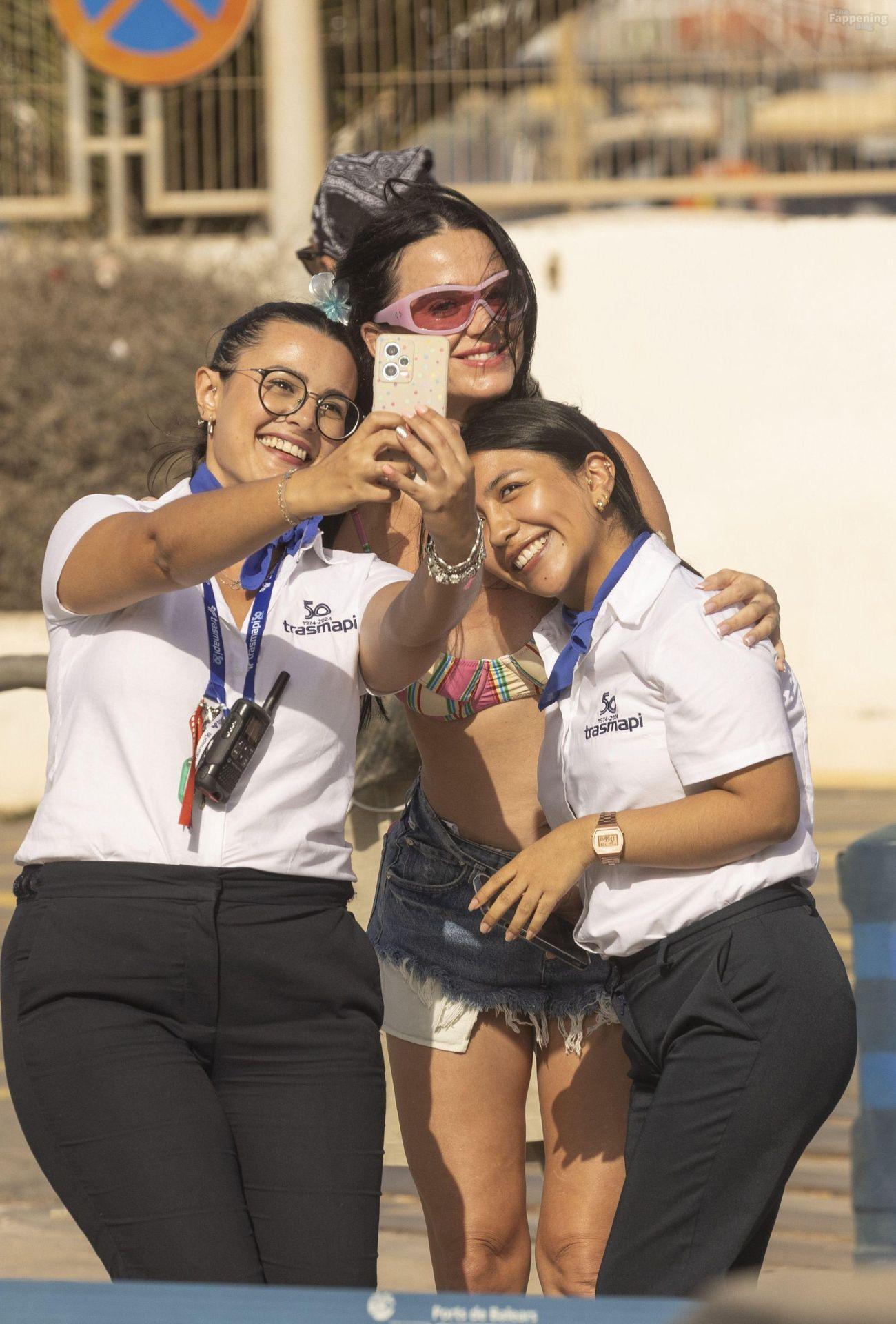 Katy Perry viene vista con shorts di jeans succinti e un top bikini mentre gira a Ibiza per il suo nuovo video, “Lifetimes”.