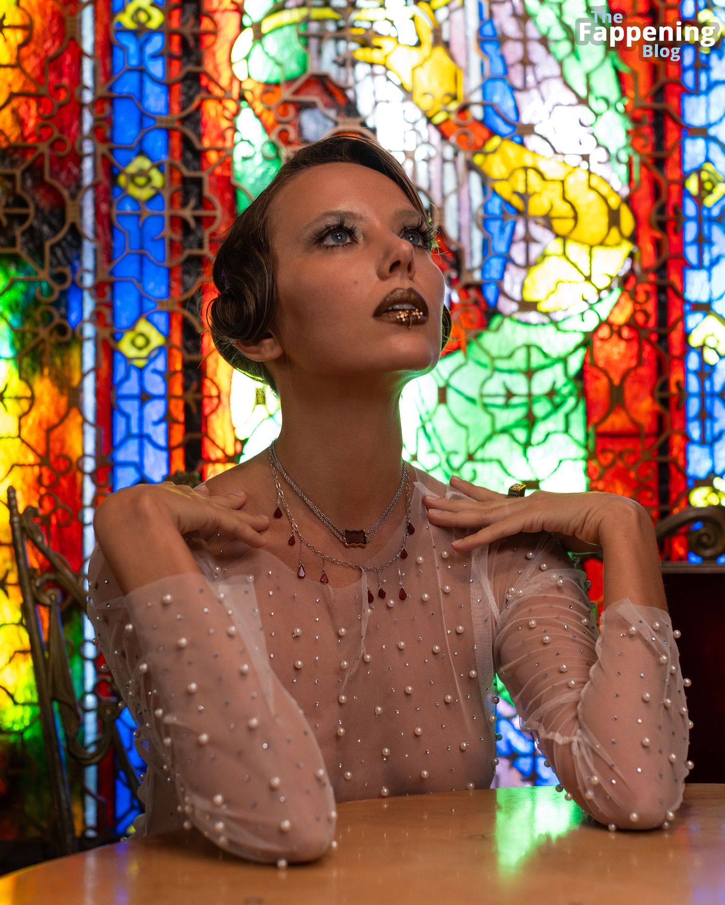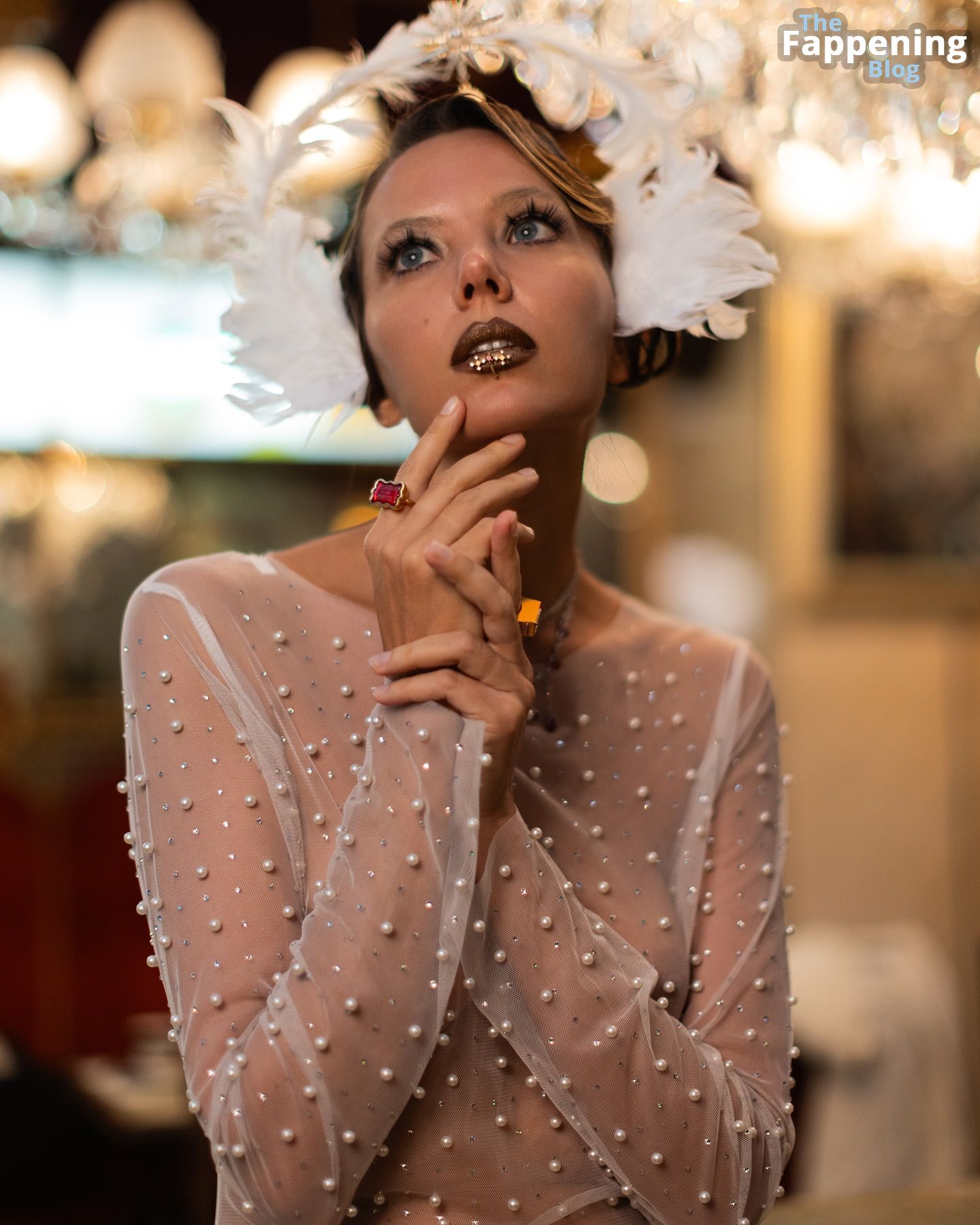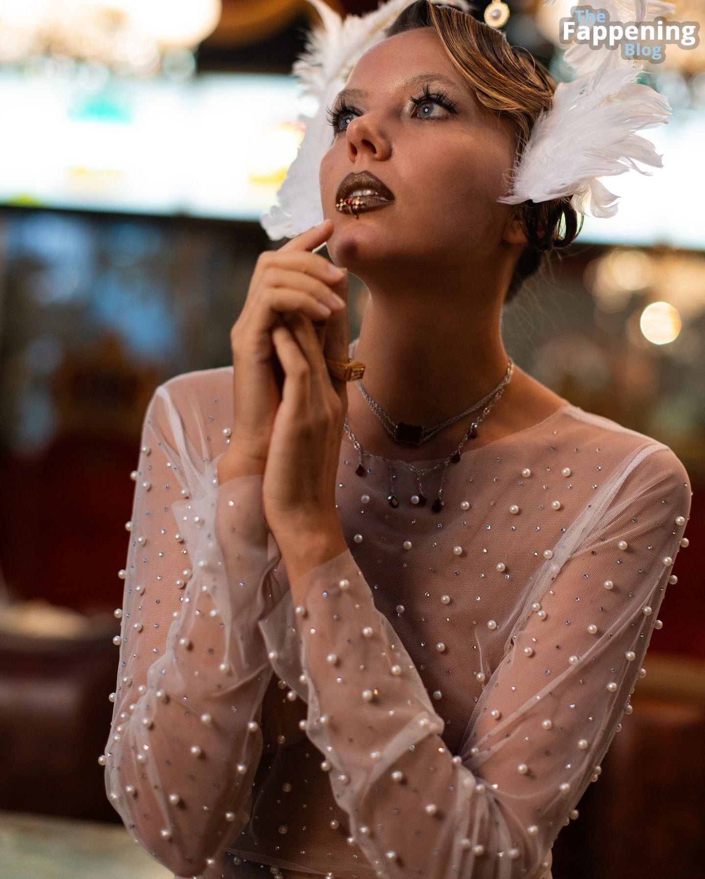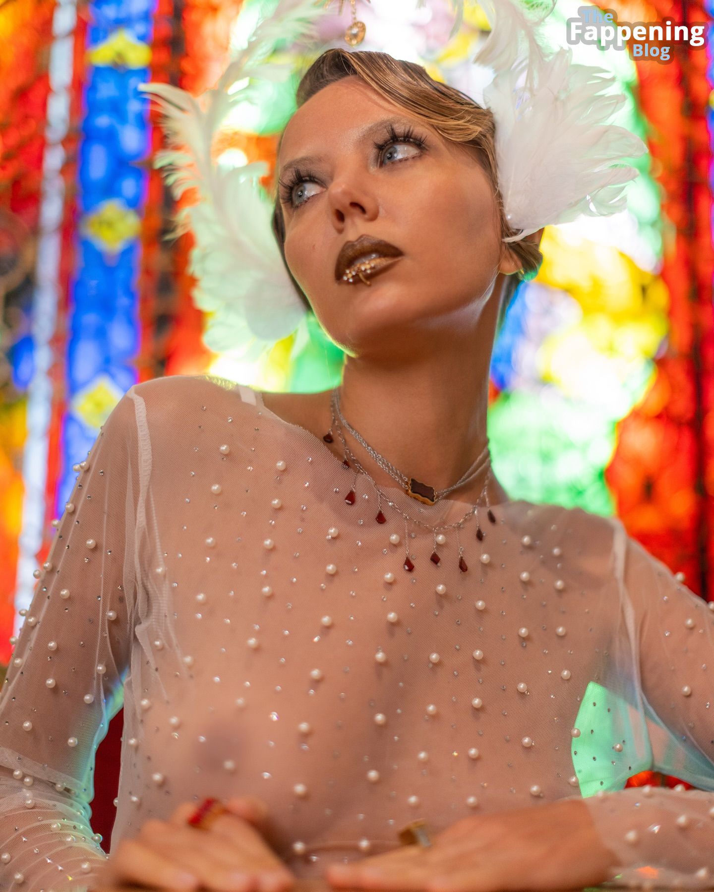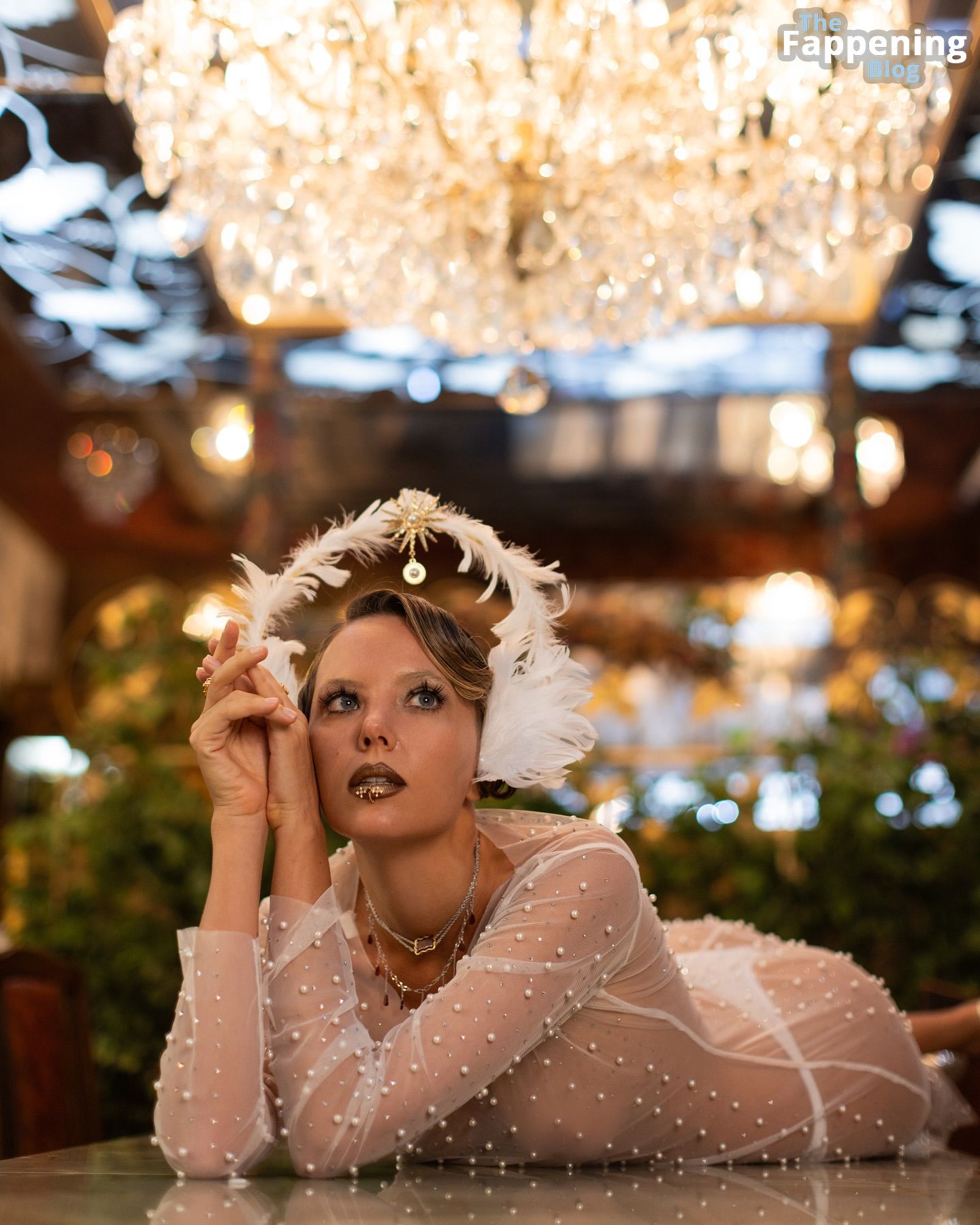 Katya Clover posa con un vestito trasparente senza reggiseno in un nuovo servizio fotografico a Tokyo, Giappone.