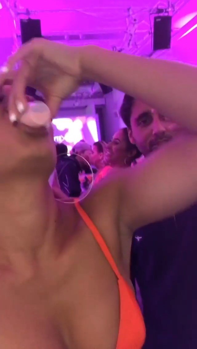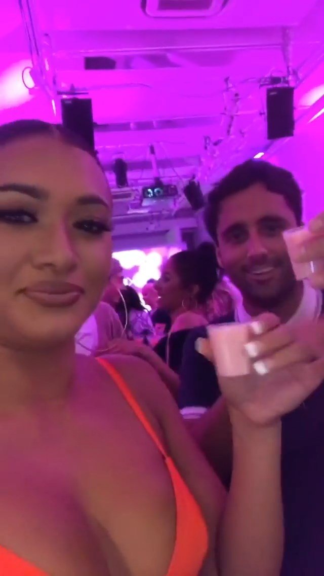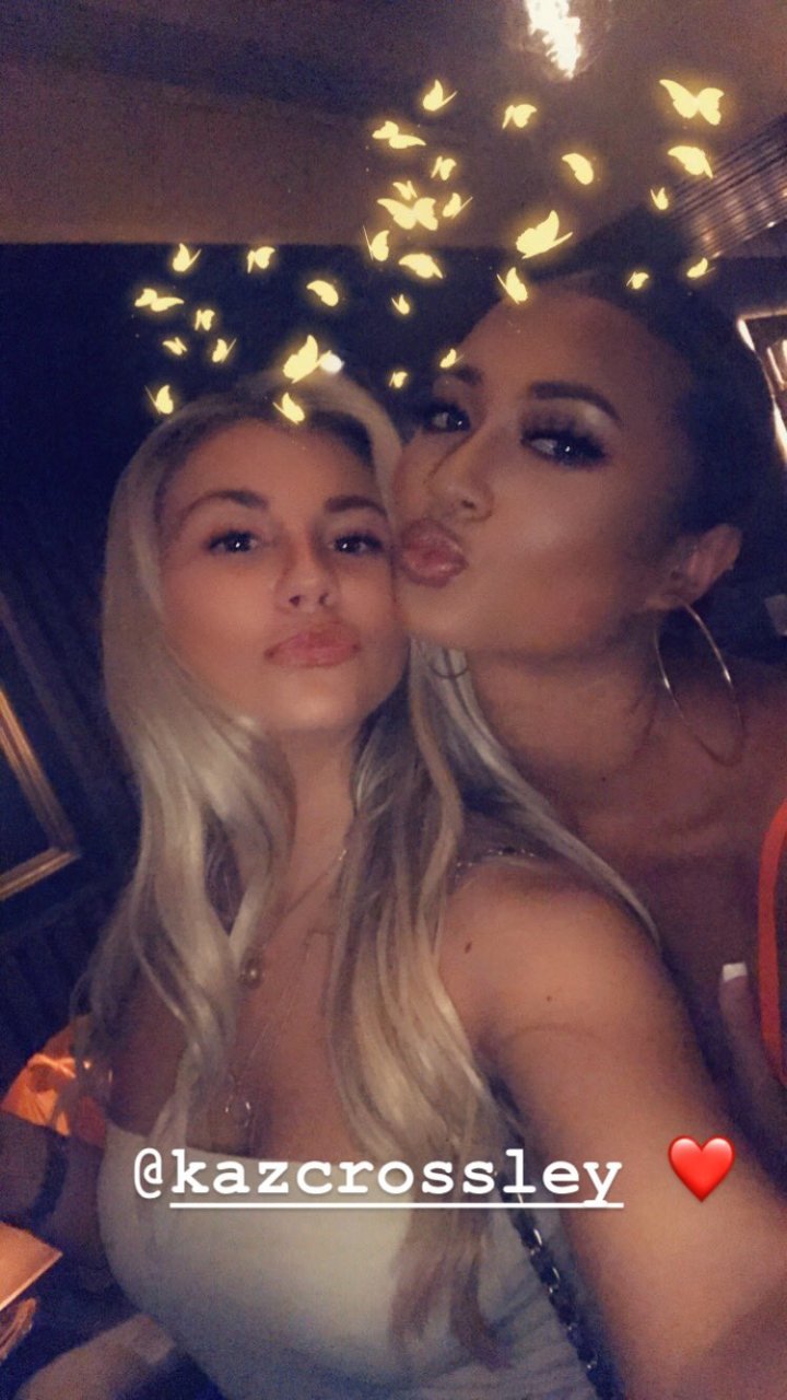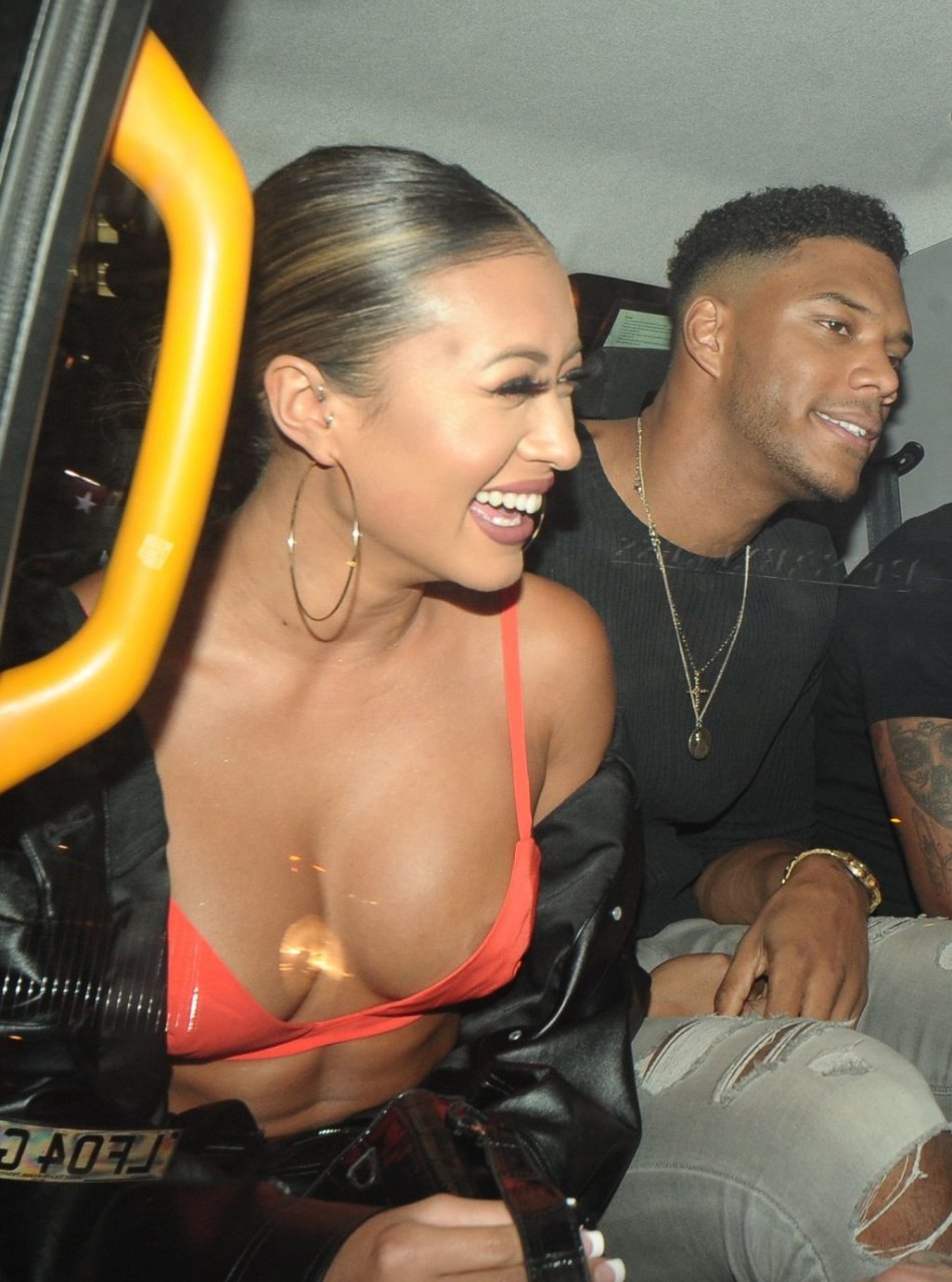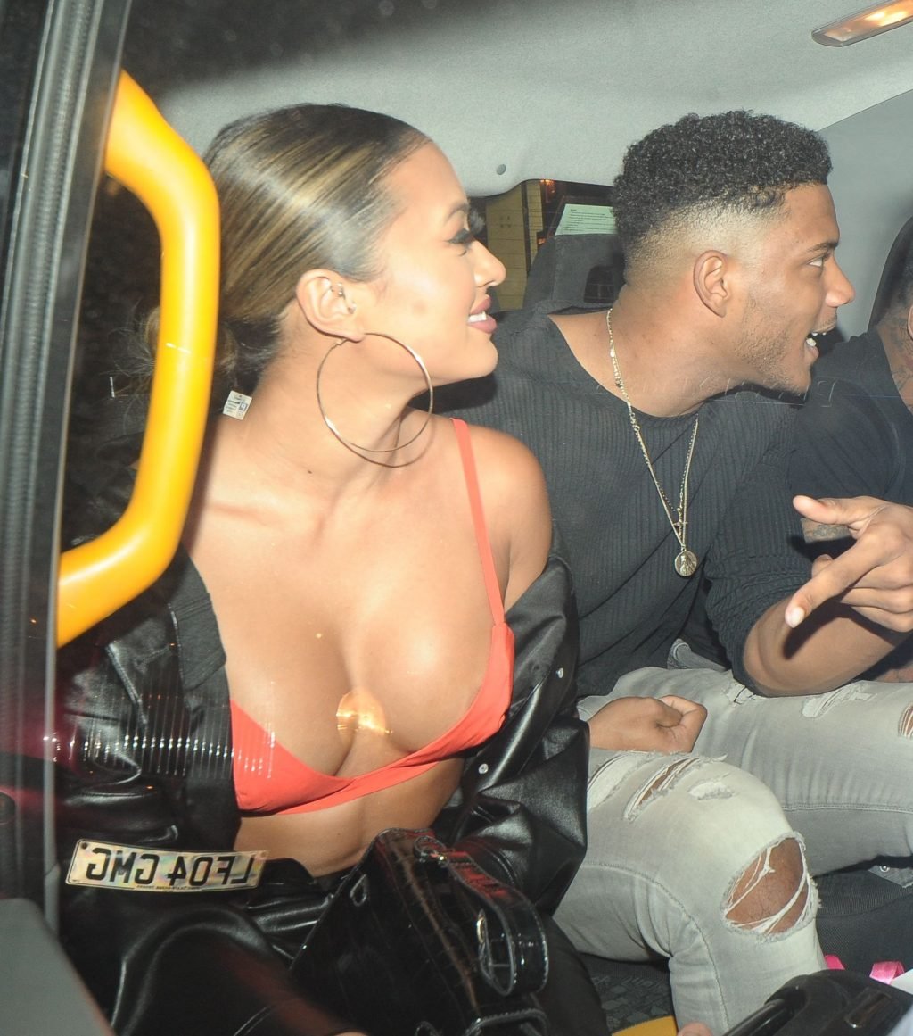 Dopo aver lasciato la festa di lancio di GHX Style di Georgia Harrison, Kaz Crossley e Theo Campbell vanno insieme all’Alchemist Bar. Kaz è stata vista mentre cercava di non mostrare il capezzolo ma ha lasciato intravedere l’areola.