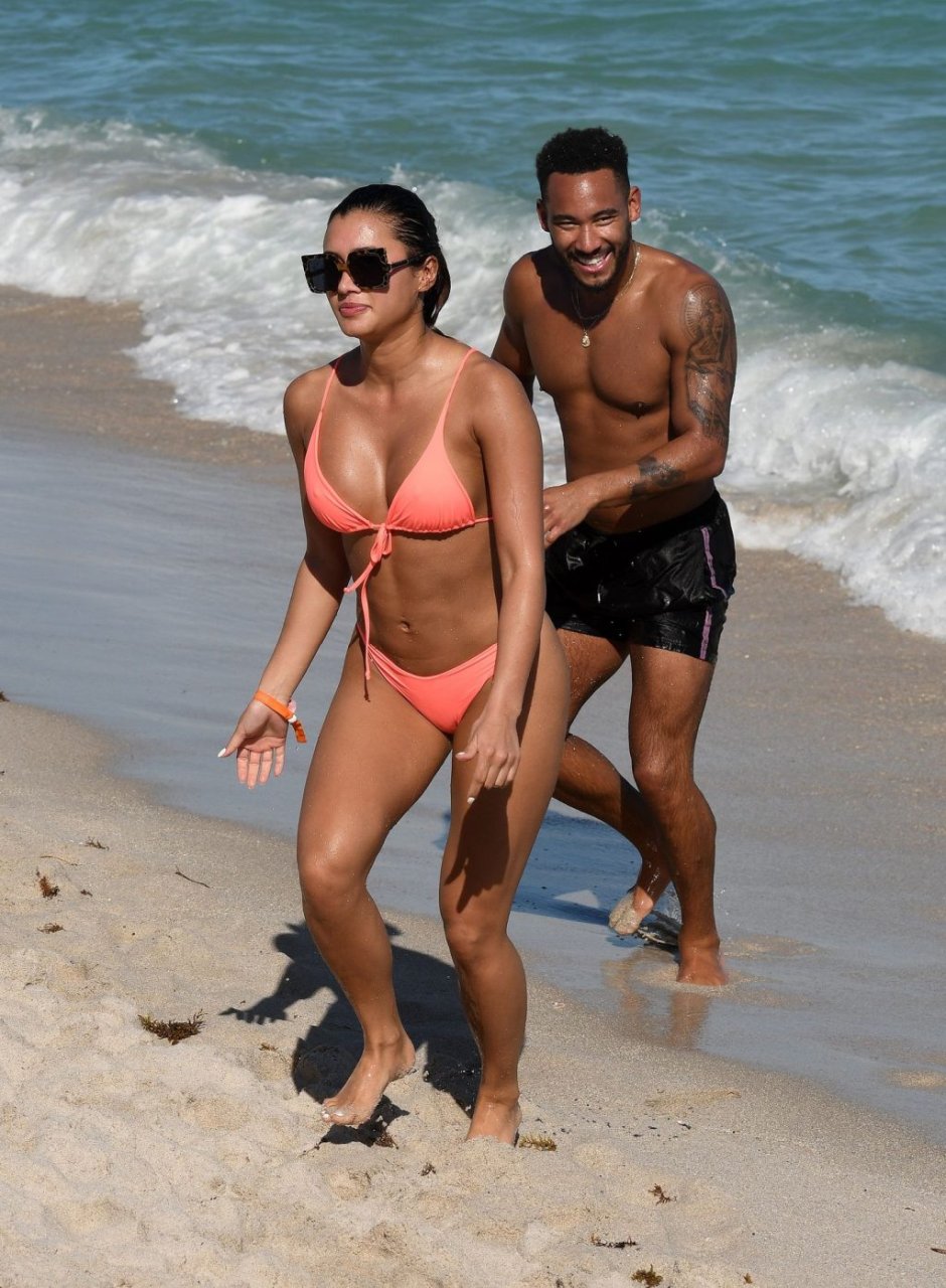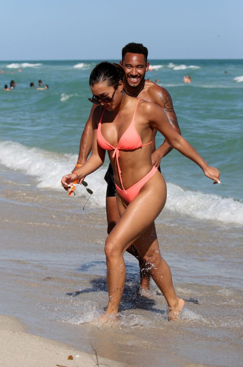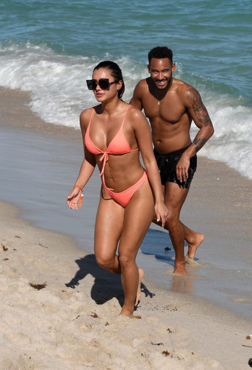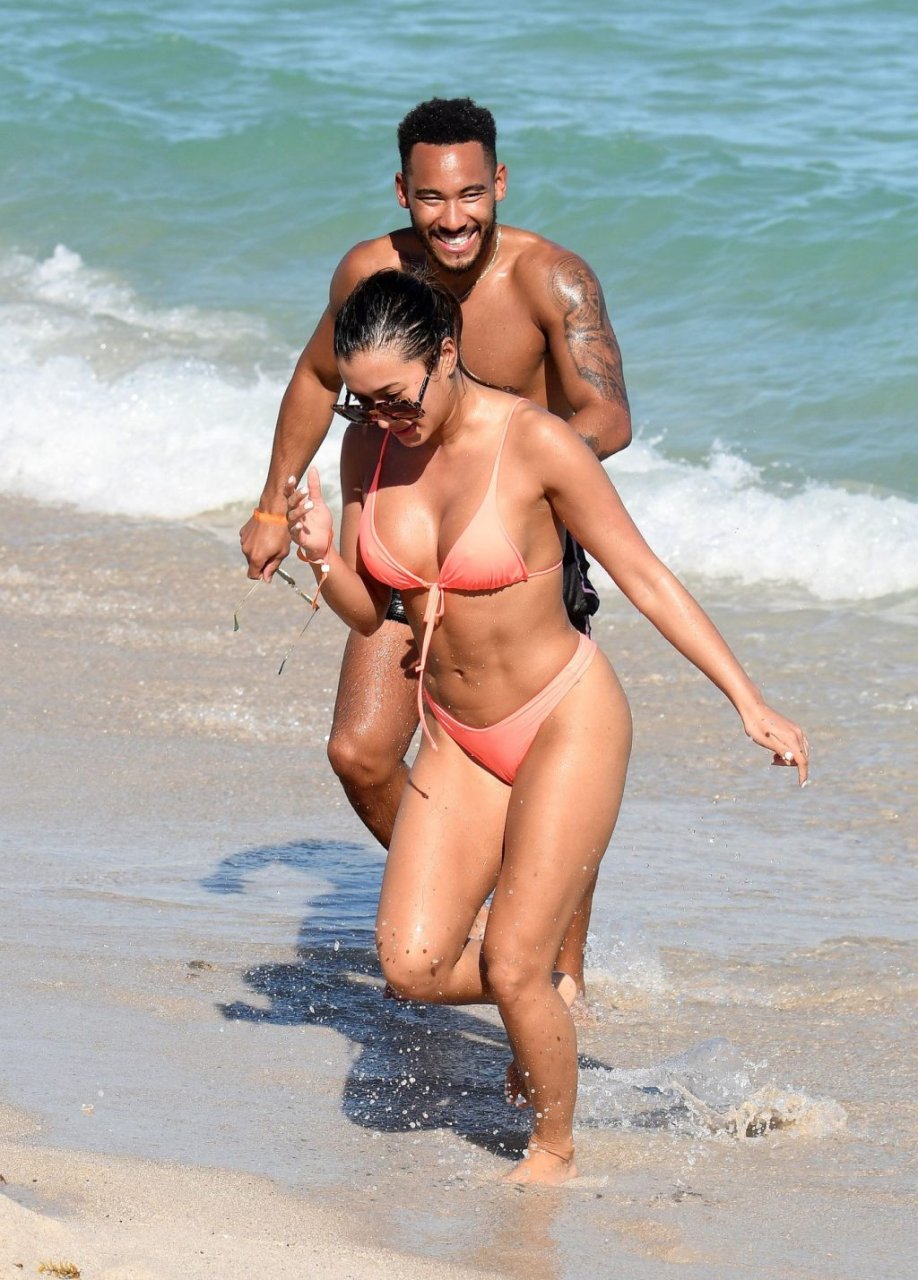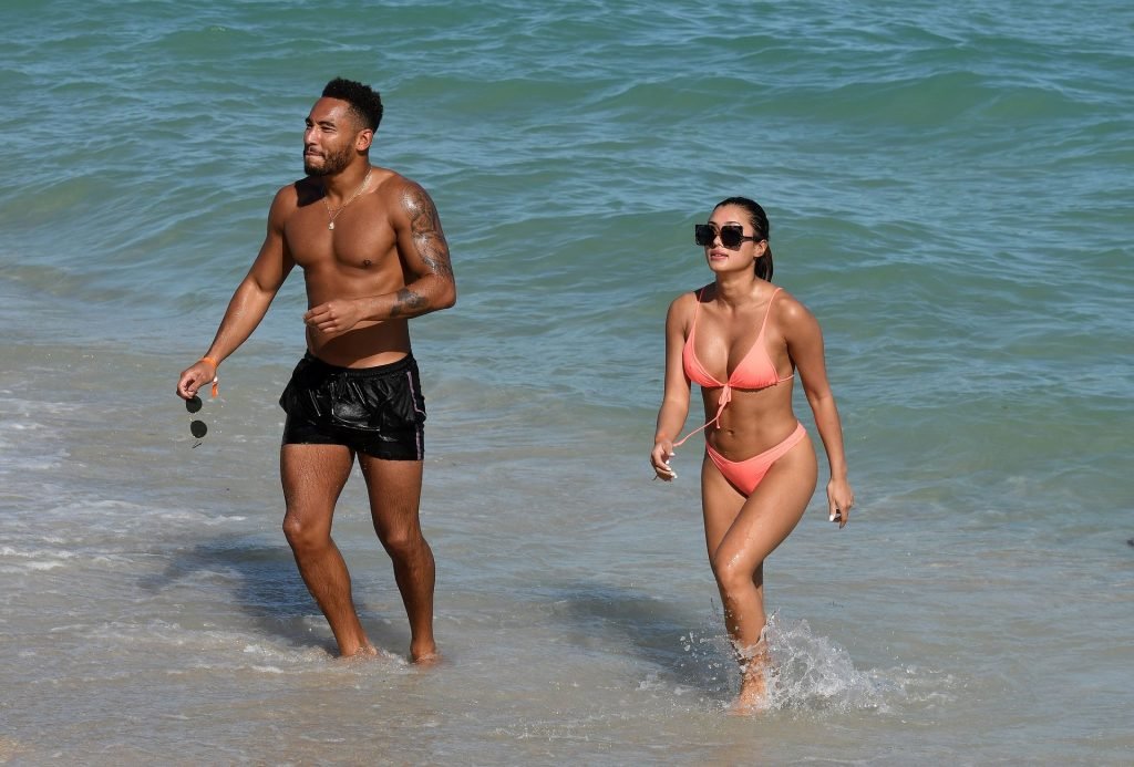 Kazimir “Kaz” Crossley di Love Island indossa un bikini pesca mentre si gode la spiaggia con il fidanzato Josh Denzel a Miami, 01/02/2019.