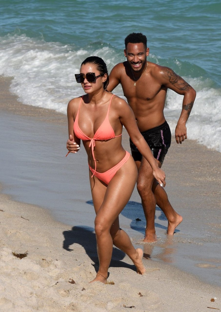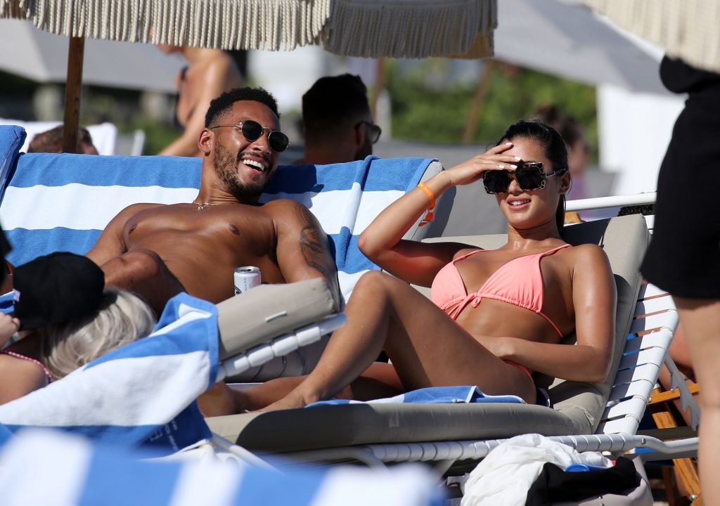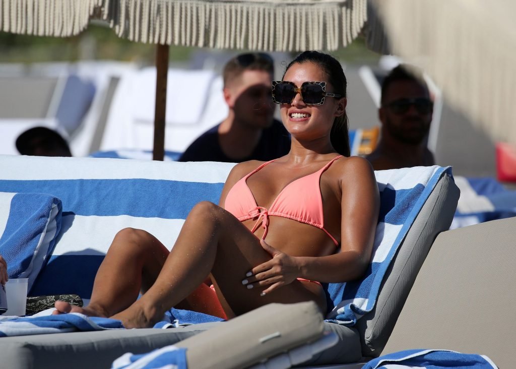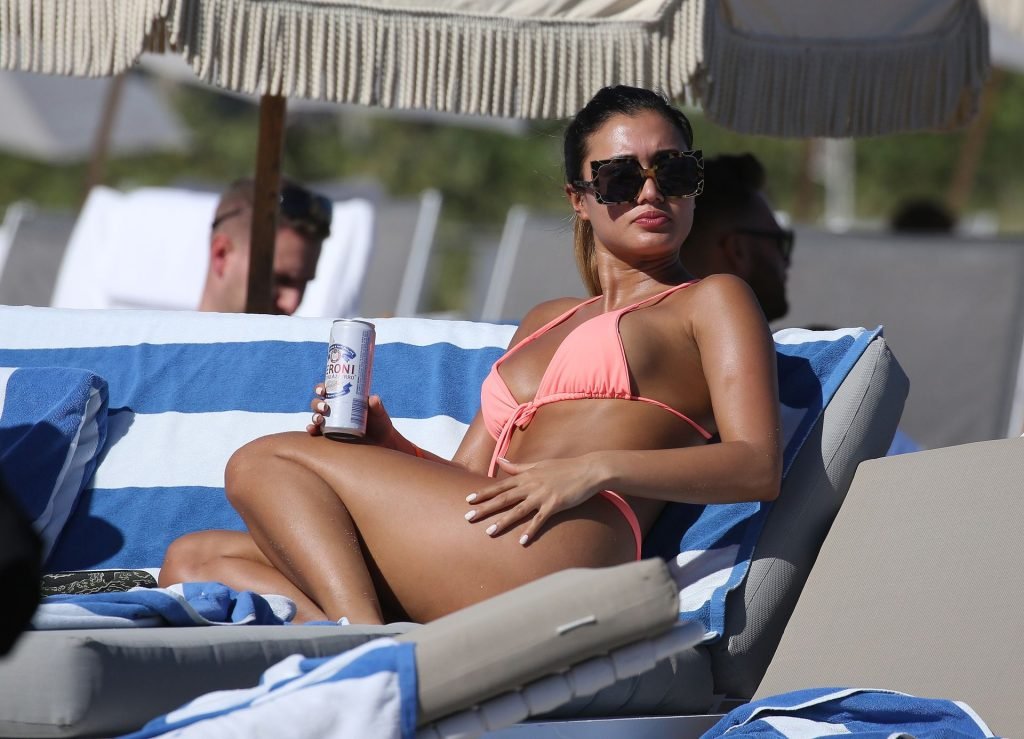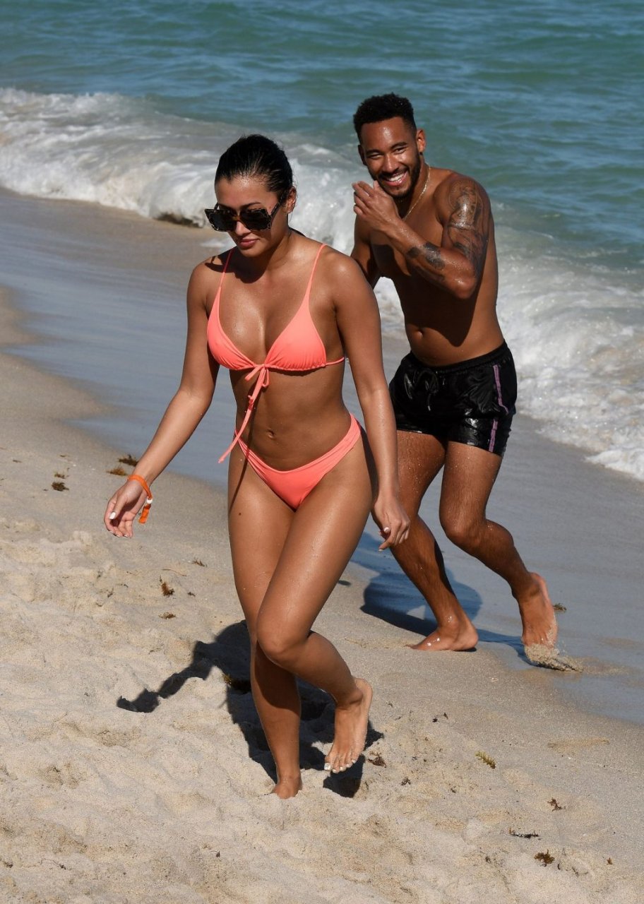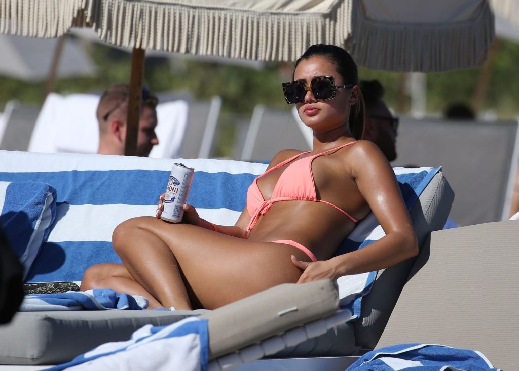 Kazimir “Kaz” Crossley di Love Island indossa un bikini pesca mentre si gode la spiaggia con il fidanzato Josh Denzel a Miami, 01/02/2019.