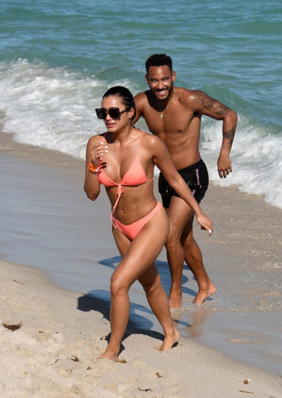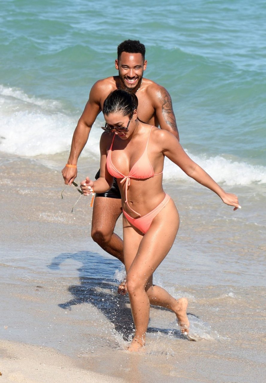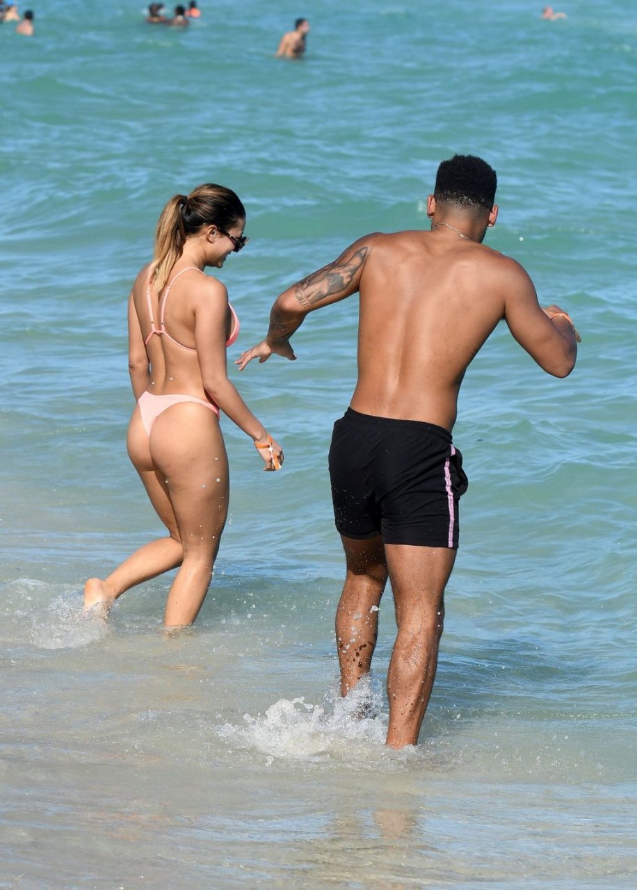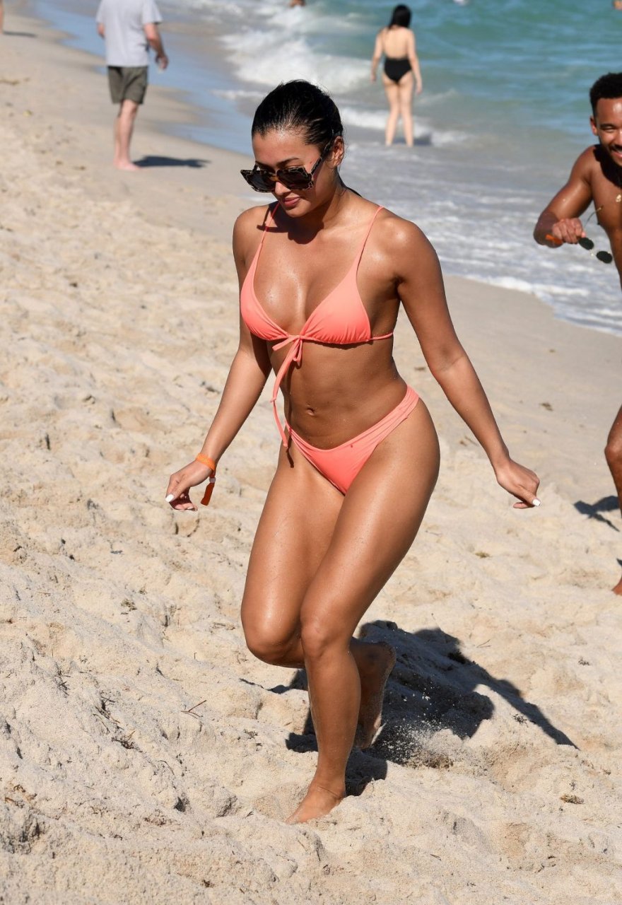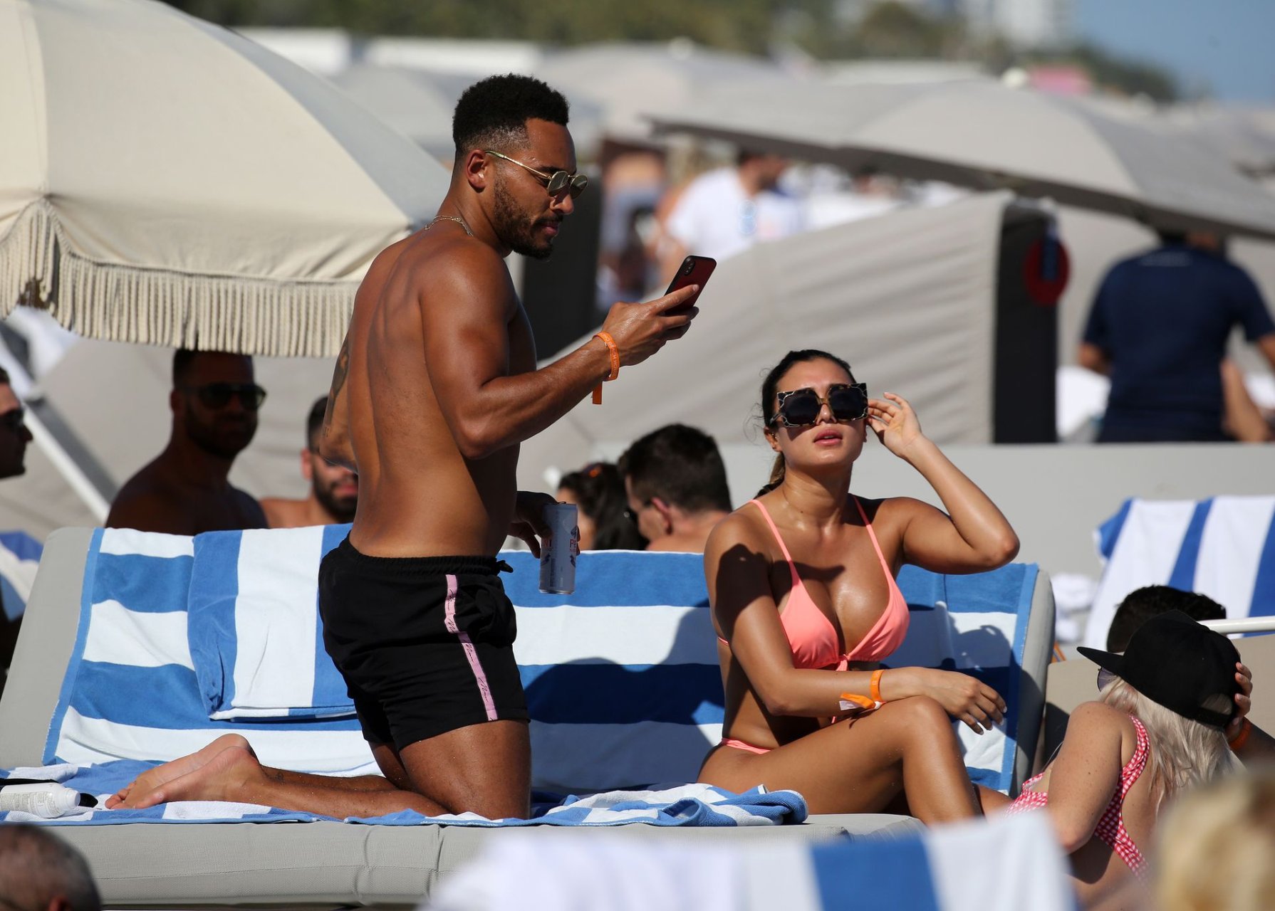 Kazimir “Kaz” Crossley di Love Island indossa un bikini pesca mentre si gode la spiaggia con il fidanzato Josh Denzel a Miami, 01/02/2019.