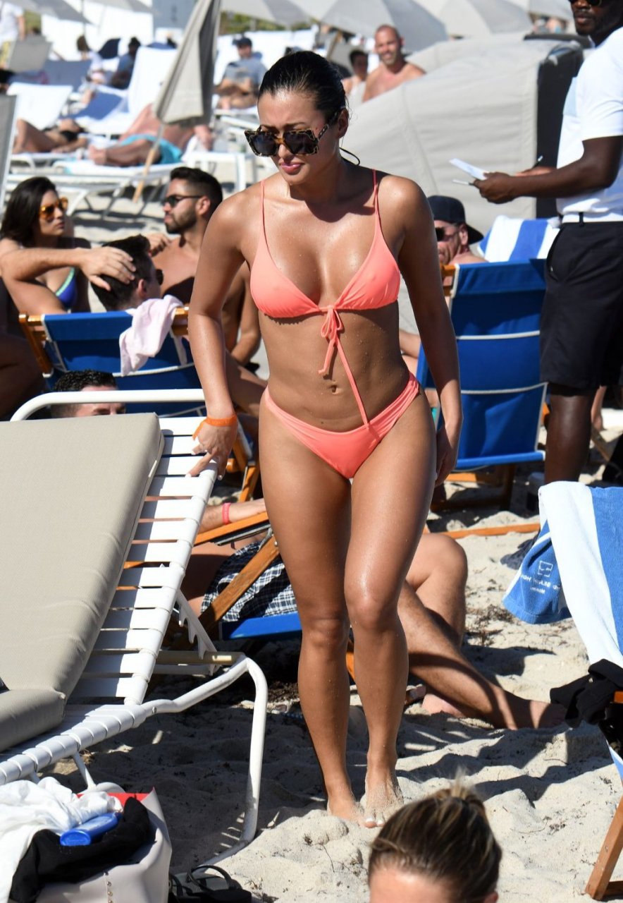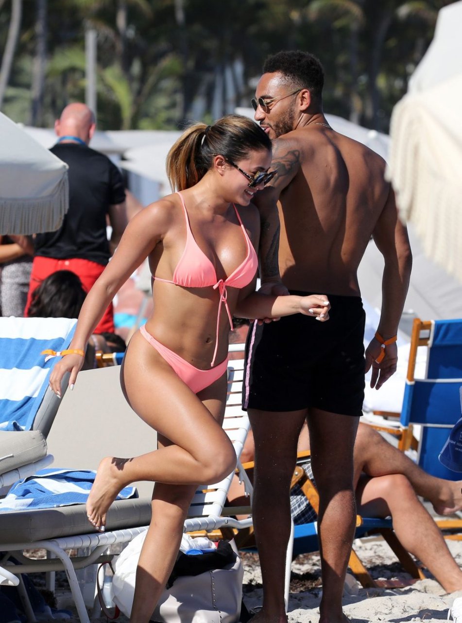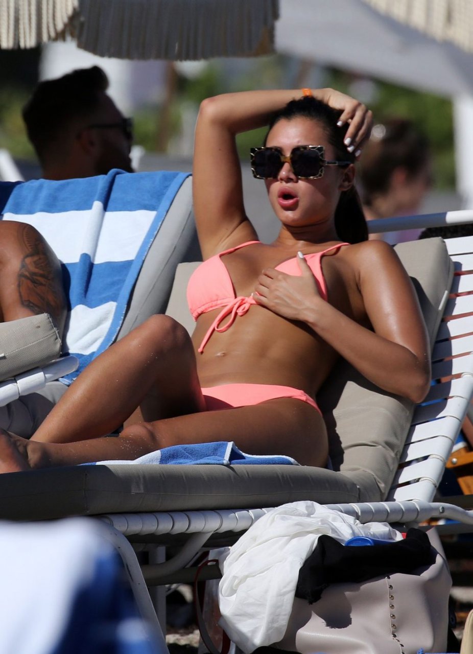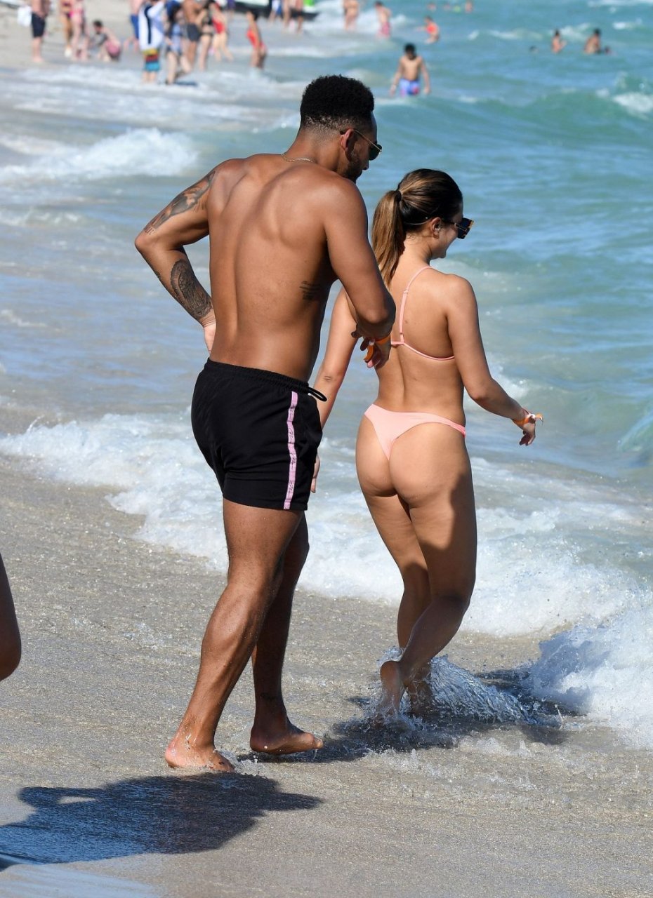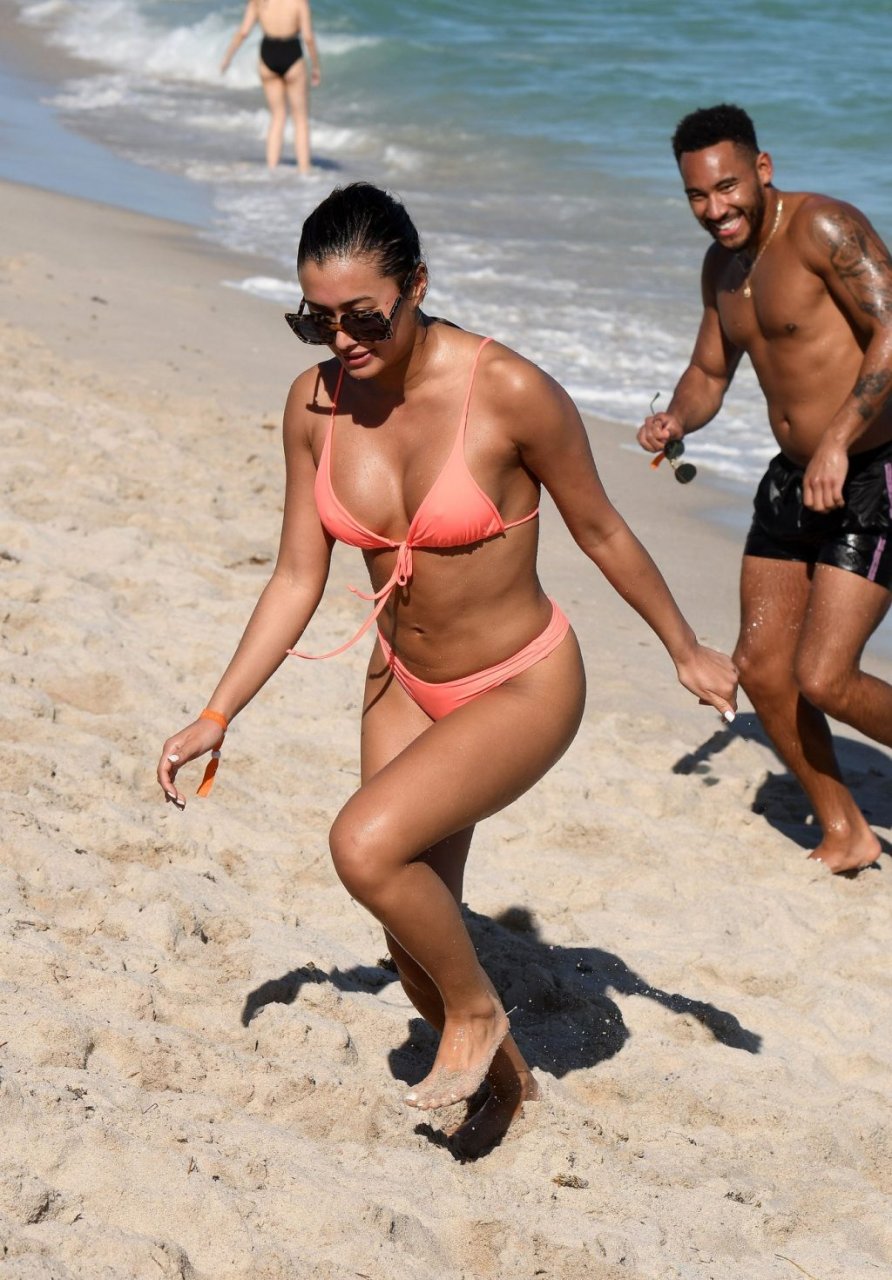 Kazimir “Kaz” Crossley di Love Island indossa un bikini pesca mentre si gode la spiaggia con il fidanzato Josh Denzel a Miami, 01/02/2019.