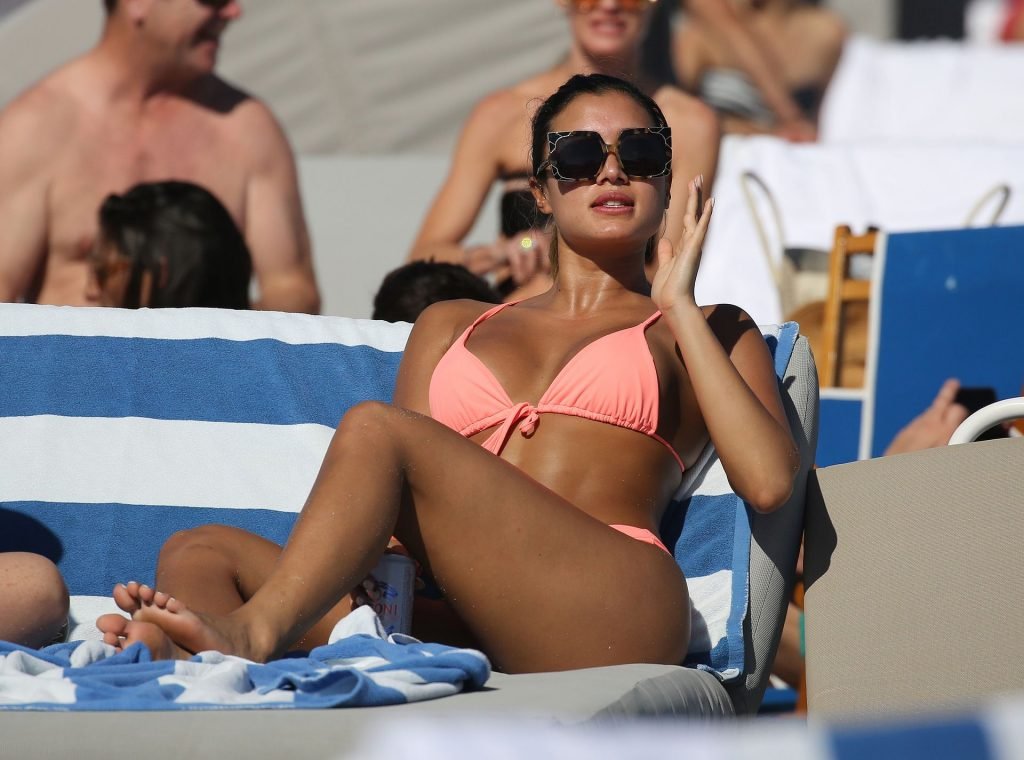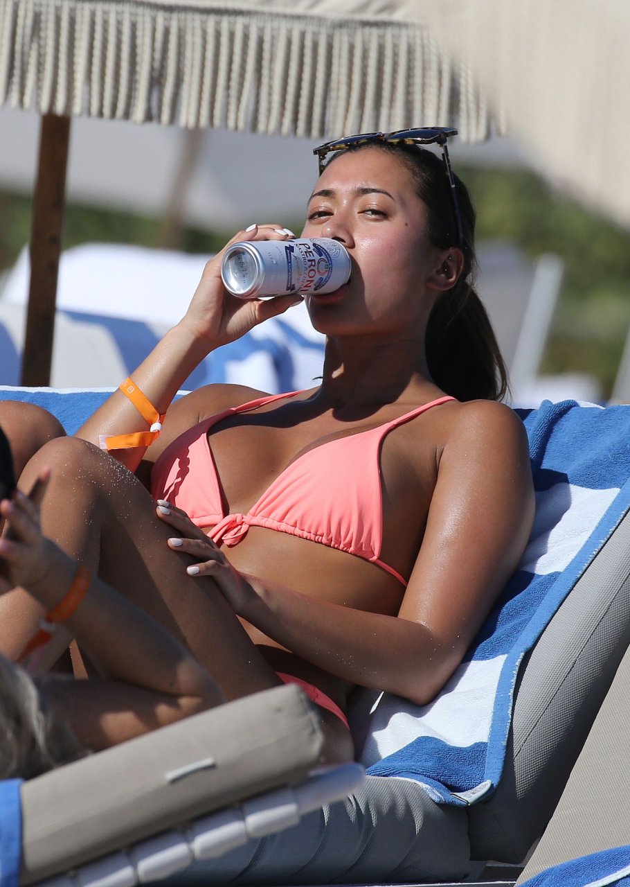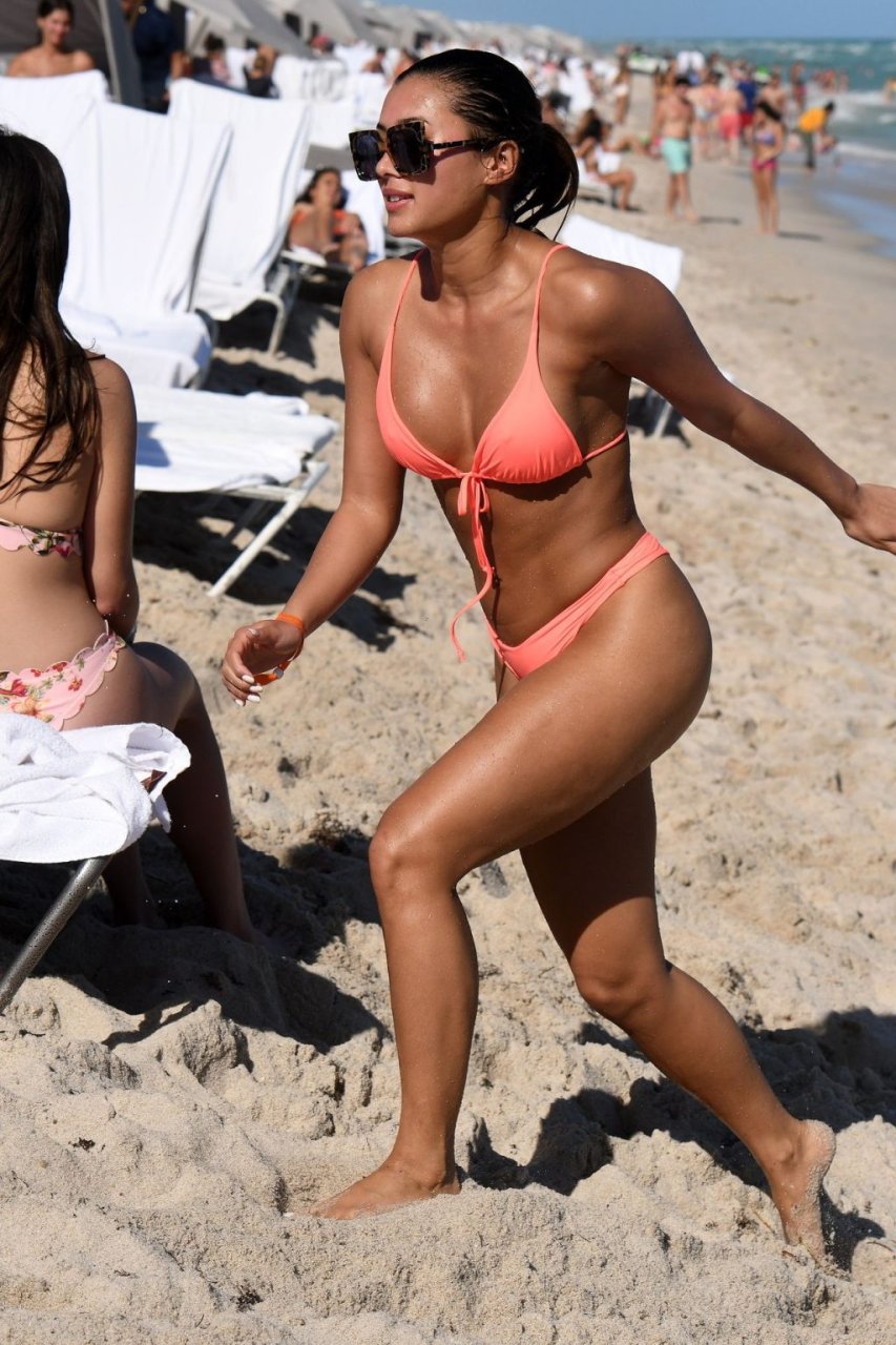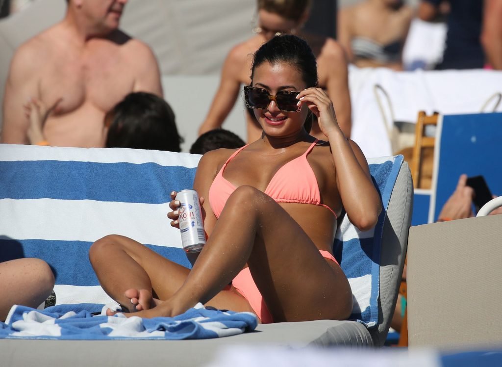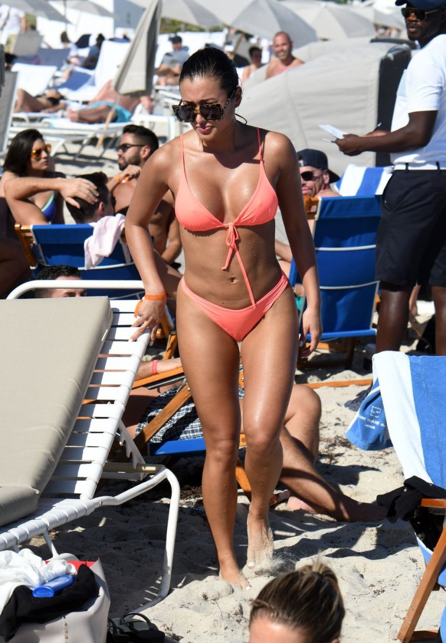 Kazimir “Kaz” Crossley di Love Island indossa un bikini pesca mentre si gode la spiaggia con il fidanzato Josh Denzel a Miami, 01/02/2019.