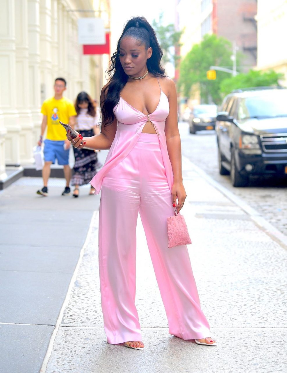 L’attrice/cantante Keke Palmer (25) è stata vista fare shopping a Soho mercoledì, apparendo stupenda in un completo rosa scollato (2019).