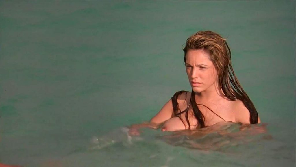 Then one more sex scene from the movie ‘Survival Island’, where Kelly Brook topless sex is going to make you hard as fuck! The busty actress showed her big tits once again, and this time she is having sex in the water with her guy while her husband is watching them through the woods! Wet big tits and a pretty face brunette are the recipes for cumming!
