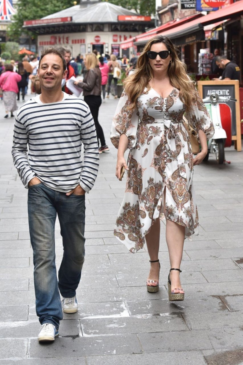 Presentatrice televisiva, attrice, star di The Fappening Kelly Brook è stata vista uscire dallo studio di Heart Radio indossando un vestito estivo stile paisley a Londra, 15/07/2019.